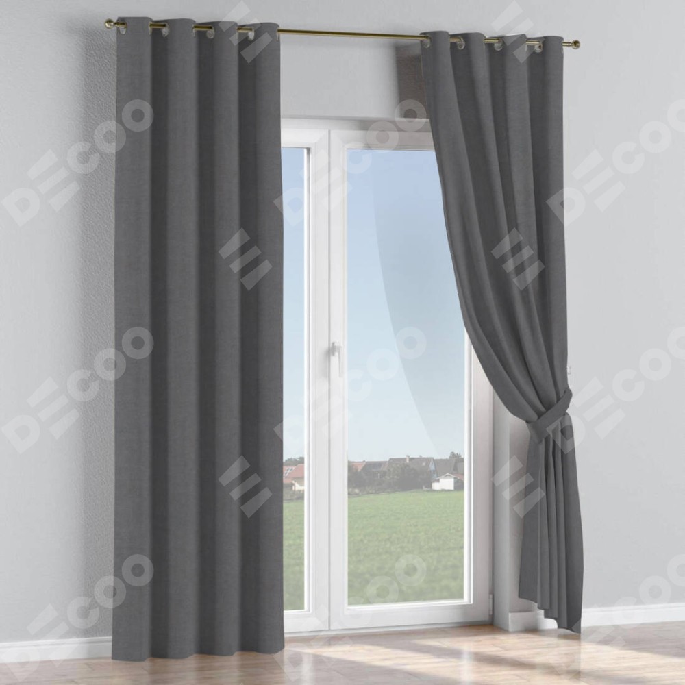 Комплект прямых штор, от производителя «Cortin», пошиты из ткани канвас мокрый асфальт, артикул ткани v-1083. Данная модель пошита на люверсах, комплектуется на выбор круглым карнизом и подходит для монтажа на стену или потолок. Прямые шторы на люверсах шьются по стандарту с коэффициентом 1/2 (на 100 см. ширины проёма 200 см. ширины ткани), отличительным преимуществом данной модели является простой способ монтажа. Достаточно повесить ее на трубу и штора готова!
