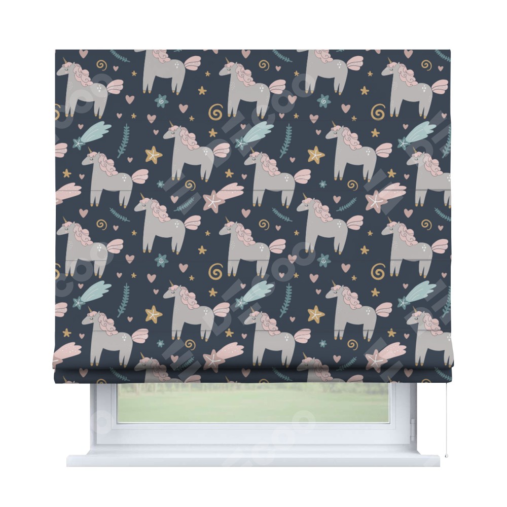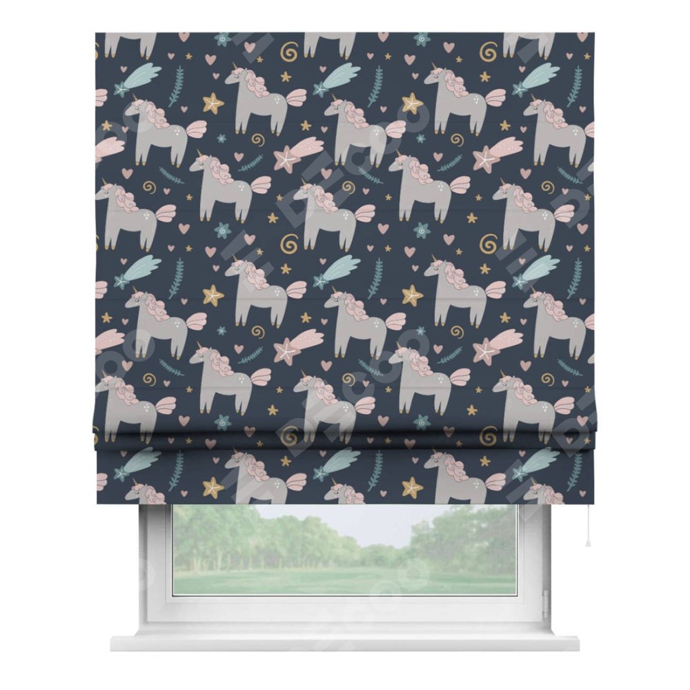 Римская штора «Кортин» для проема «Милые единороги» отлично подойдёт для интерьера: в детскую.