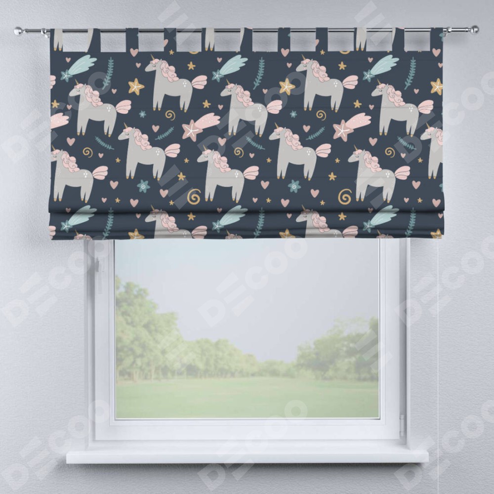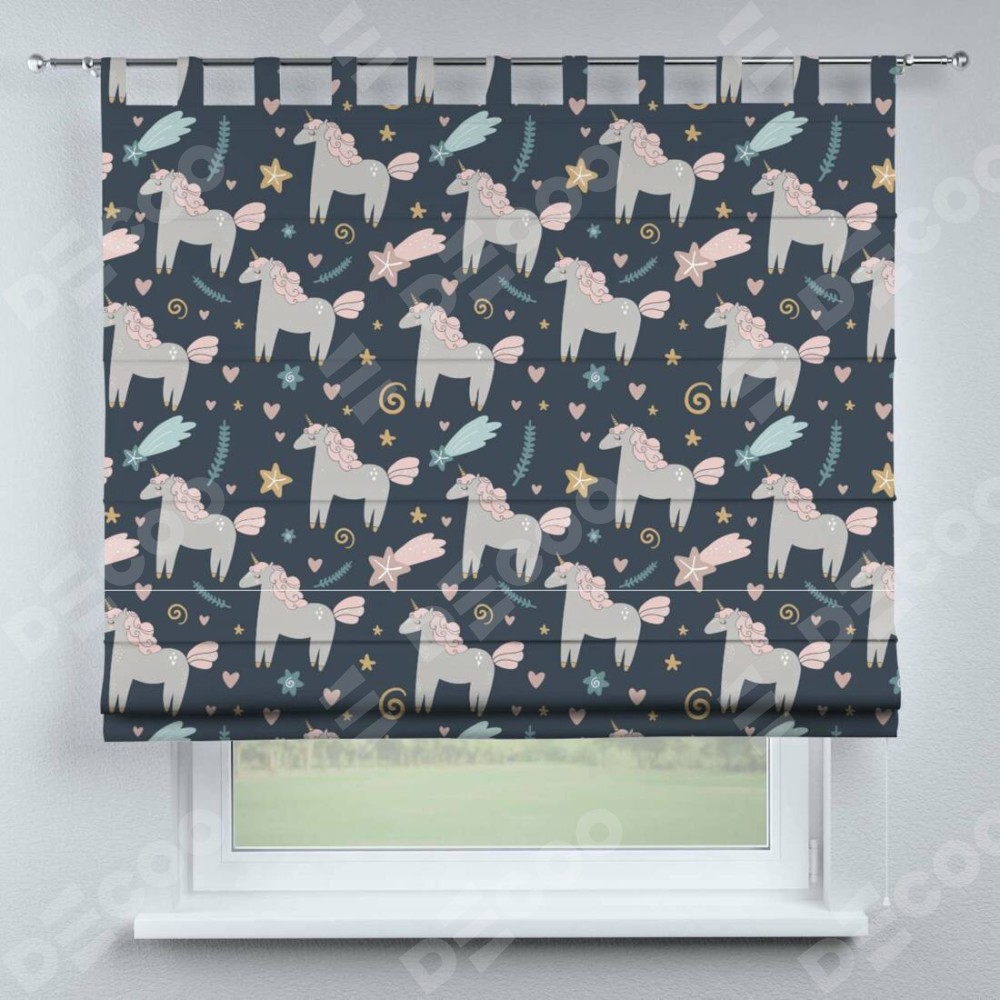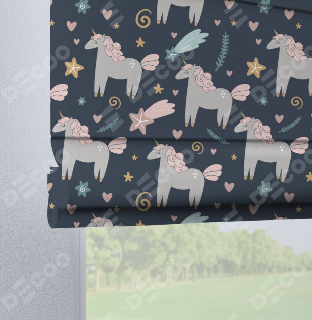 Римская штора «Кортин» на петлях «Милые единороги» отлично подойдёт для интерьера: в детскую.