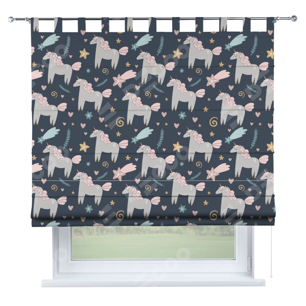 Римская штора «Кортин» на петлях «Милые единороги» предоставлена в следующих характеристиках: