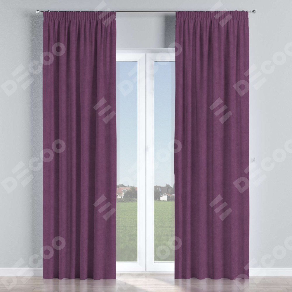 Комплект прямых штор, от производителя «Cortin», пошиты из ткани канвас сиреневый, артикул ткани v-98. С изнаночной стороны в верхней части штор пристрачивается шторная лента с декоративными складками «Карандаш». Для создания элегантных складок прямые шторы шьются по стандарту с коэффициентом 1:2 (на 100 см. ширины проёма 200 см. ширины ткани).