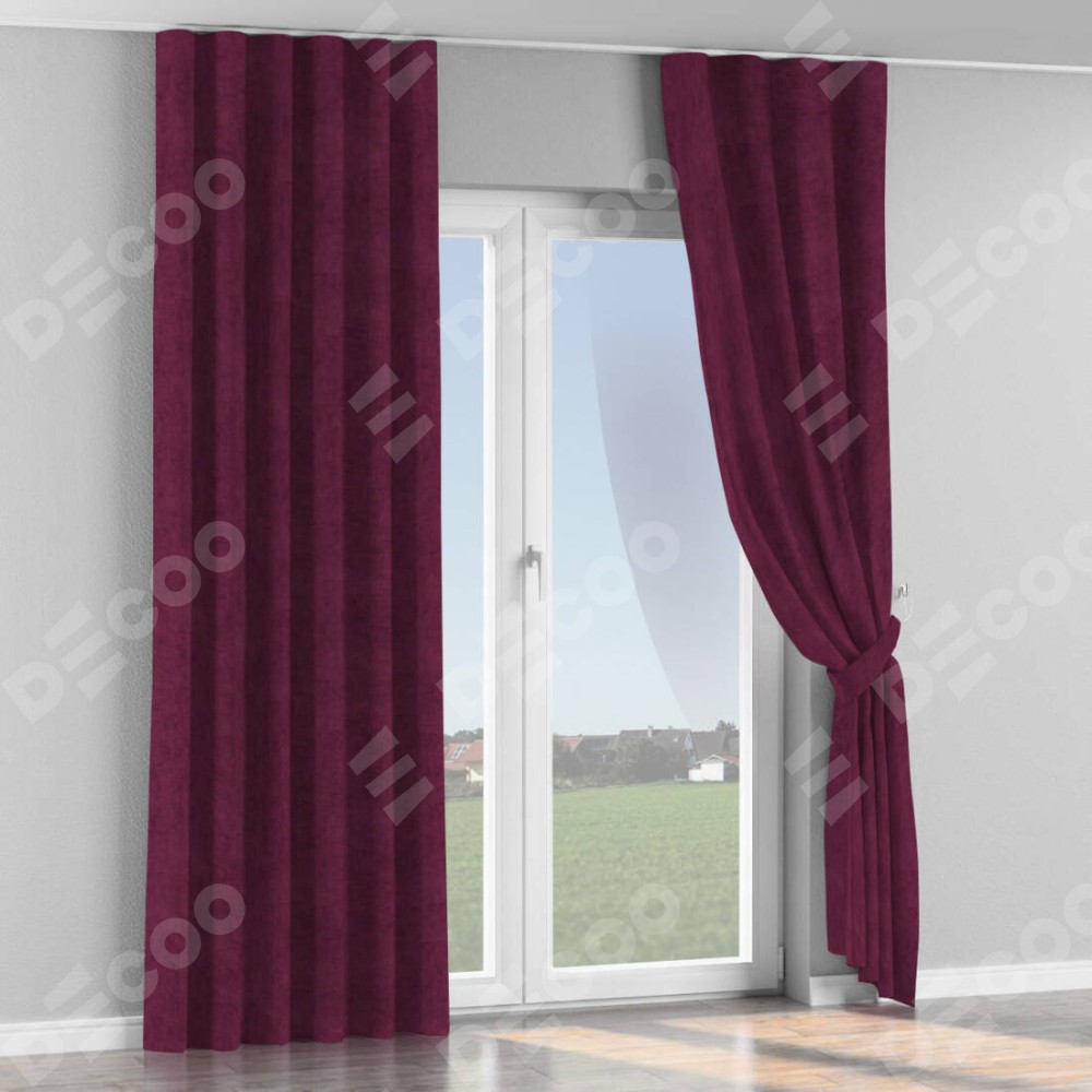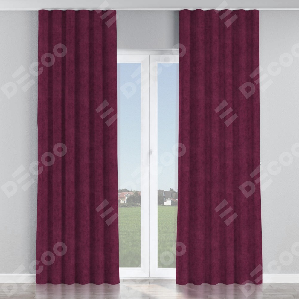 Комплект прямых штор, от производителя «Cortin», пошиты из ткани канвас фиолетовый, артикул ткани v-99. С изнаночной стороны в верхней части штор пристрачивается шторная лента с декоративными складками «Волна». Для создания элегантных складок прямые шторы шьются по стандарту с коэффициентом 1:2 (на 100 см. ширины проёма 200 см. ширины ткани).