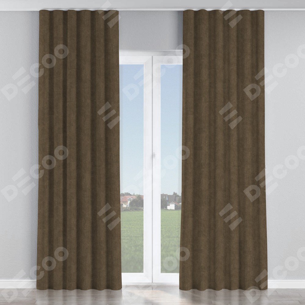 Комплект прямых штор, от производителя «Cortin», пошиты из ткани канвас шоколадный, артикул ткани v-193. С изнаночной стороны в верхней части штор пристрачивается шторная лента с декоративными складками «Волна». Для создания элегантных складок прямые шторы шьются по стандарту с коэффициентом 1:2 (на 100 см. ширины проёма 200 см. ширины ткани).