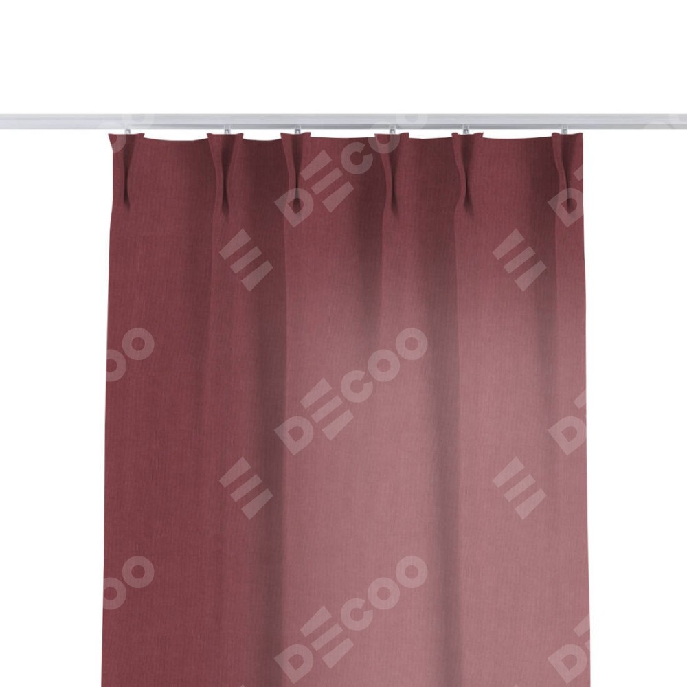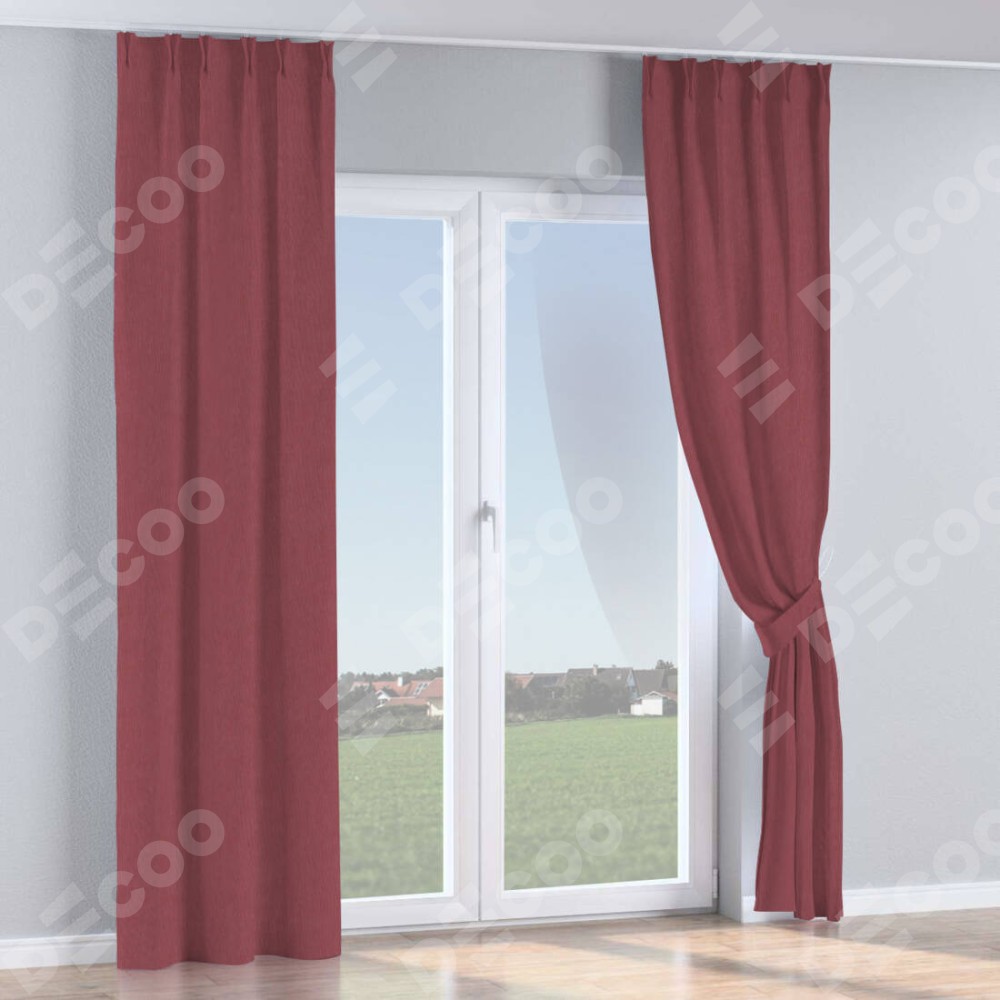 Комплект прямых штор, от производителя «Cortin», пошиты из ткани канвас ягодный, артикул ткани v-28. С изнаночной стороны в верхней части штор пристрачивается шторная лента с декоративными складками «Кустик». Для создания элегантных складок прямые шторы шьются по стандарту с коэффициентом 1:2 (на 100 см. ширины проёма 200 см. ширины ткани).