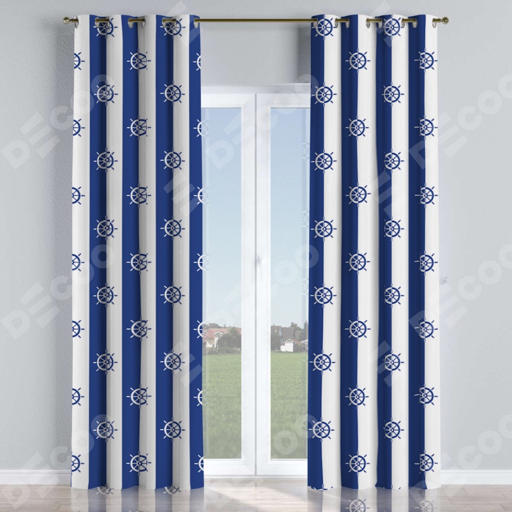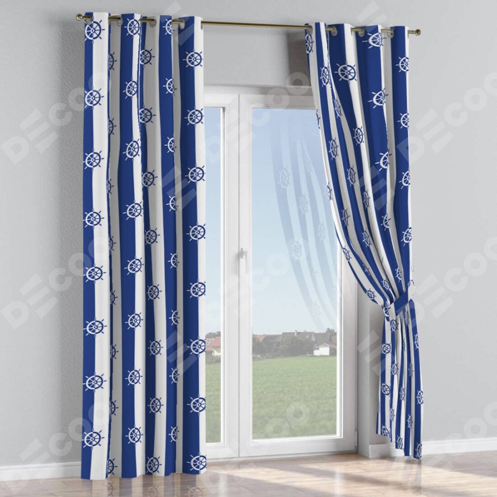 Комплект штор на люверсах «Полоски и штурвалы» отлично подойдёт для интерьера шторы для комнаты, в зал и шторы для холла.