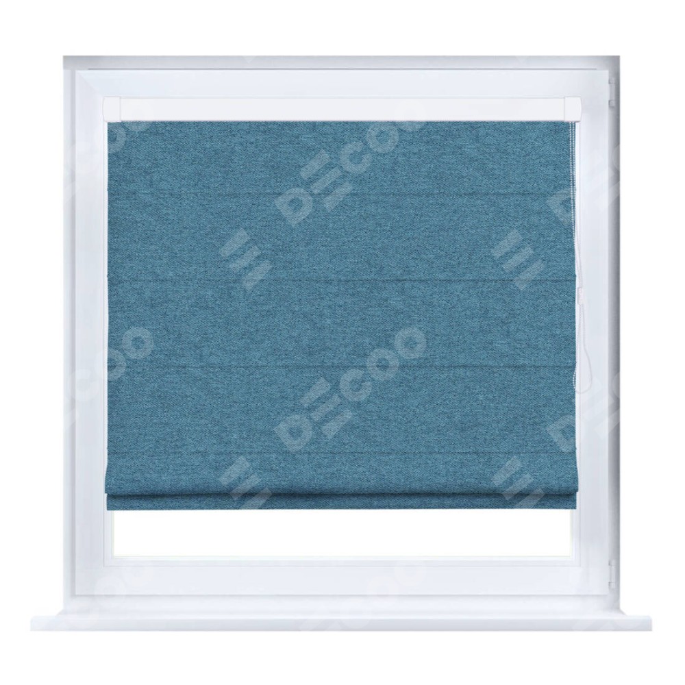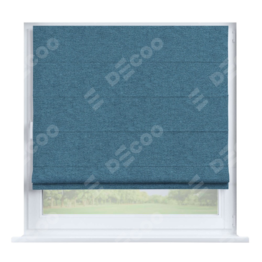 Римская штора производителя «Cortin», устанавливается на створку окна, пошита из ткани твид блэкаут светло-синий, артикул 90935. Штора шьётся по индивидуальным размерам, для данного типа римской шторы возможная ширина от 35 до 150 см., высота до 250 см.
