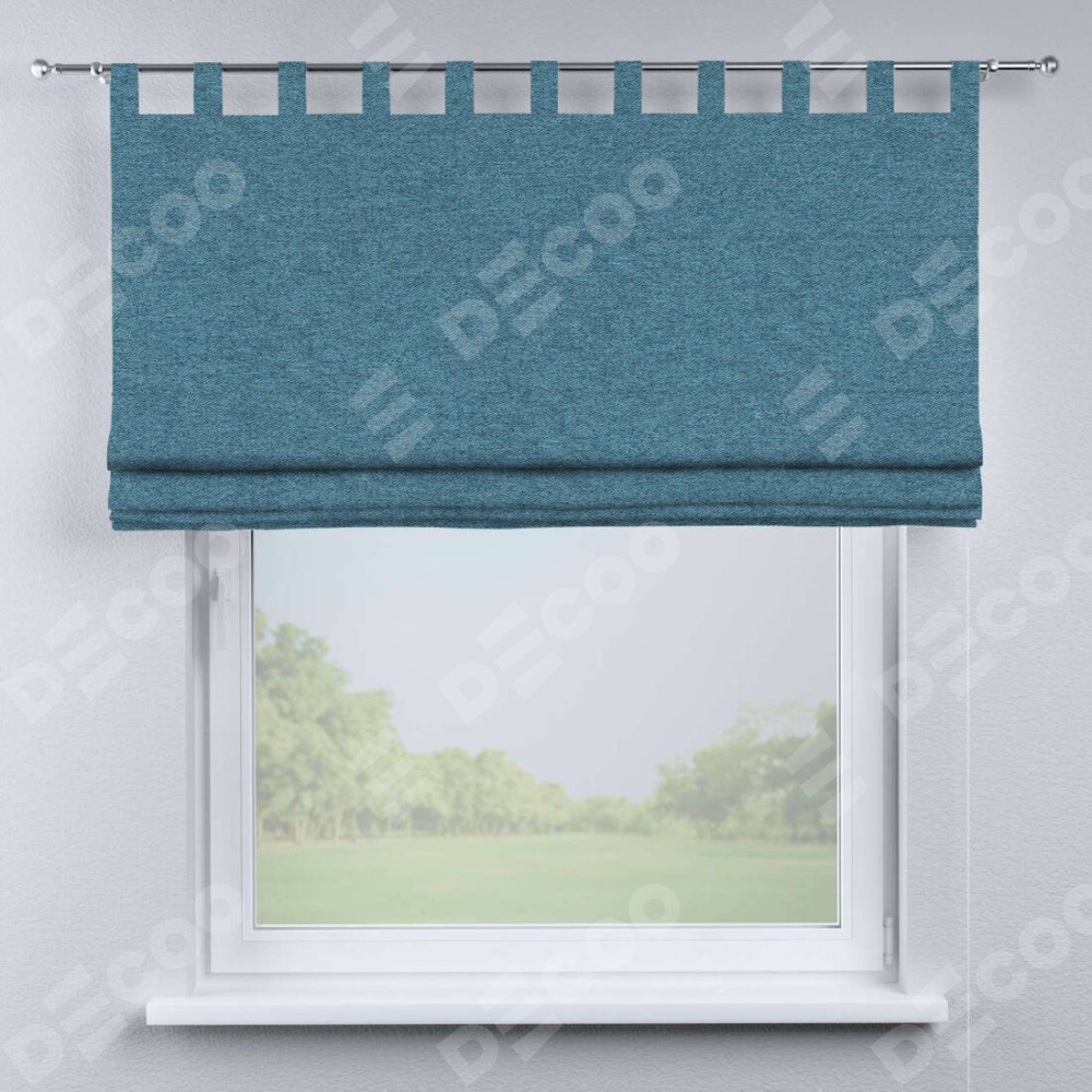 Римская штора на петлях «Кортин», ткань твид блэкаут, светло-синий