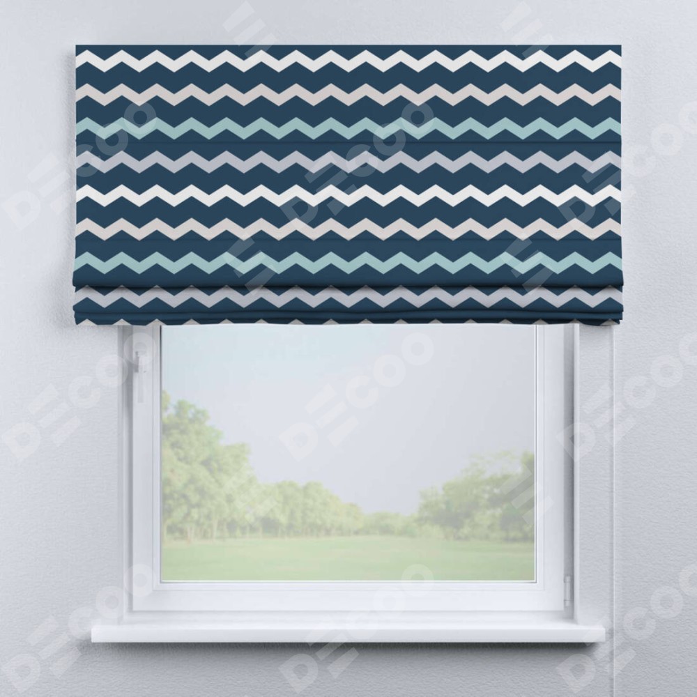 Римская штора «Кортин» для проема «Морской шеврон» отлично подойдёт для интерьера: подростку в комнату, в офис и в спальню.