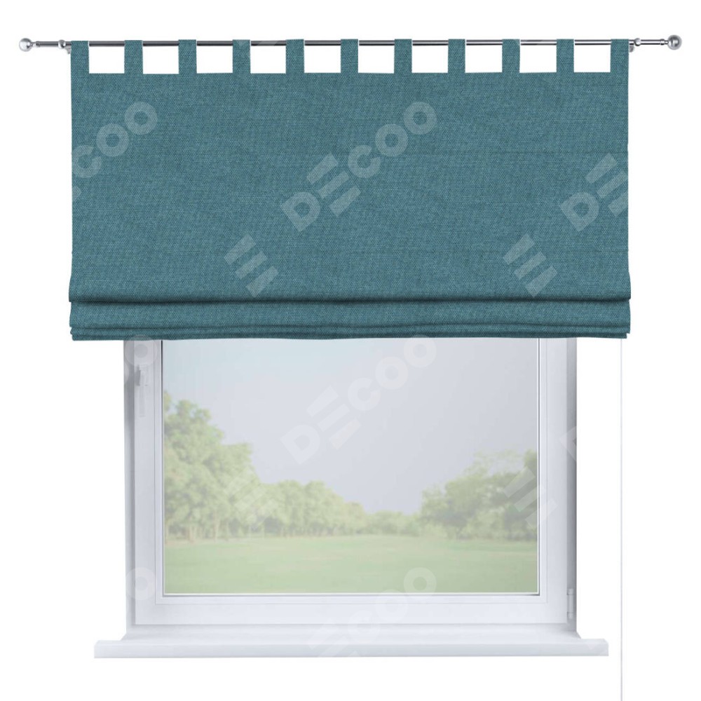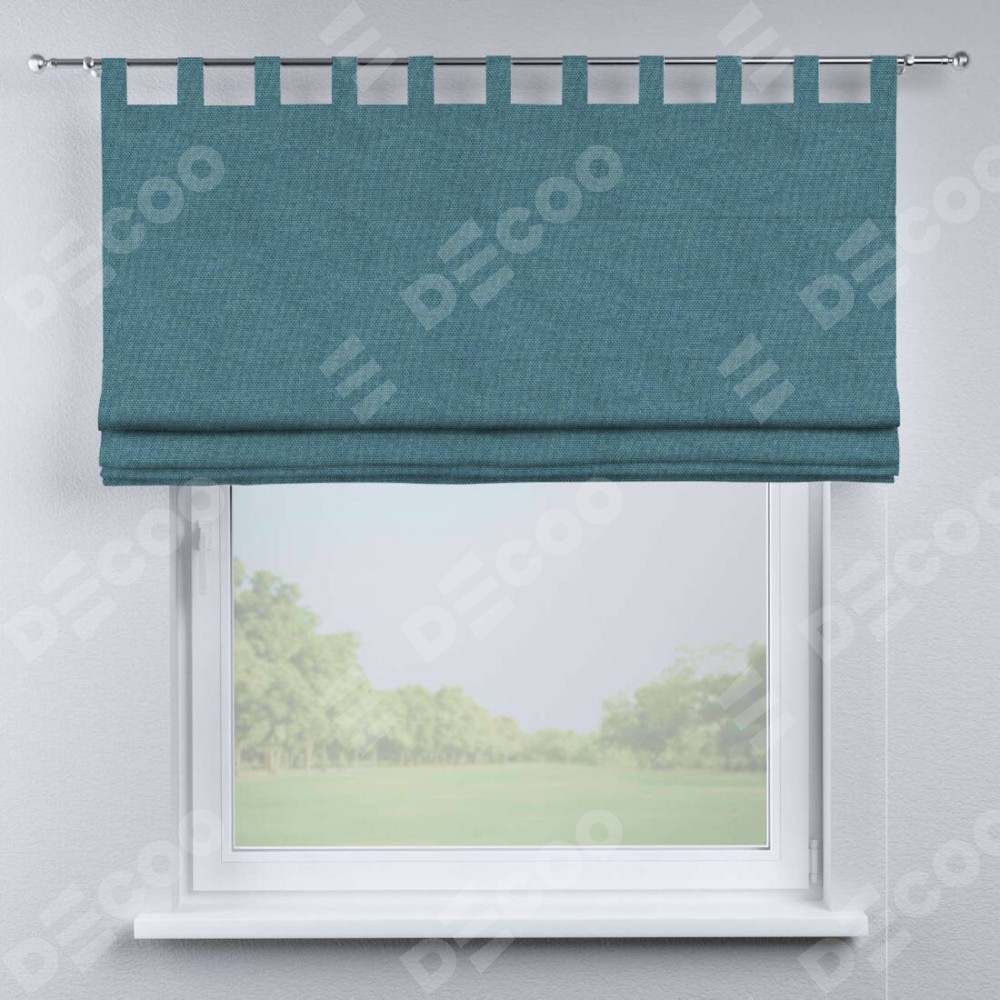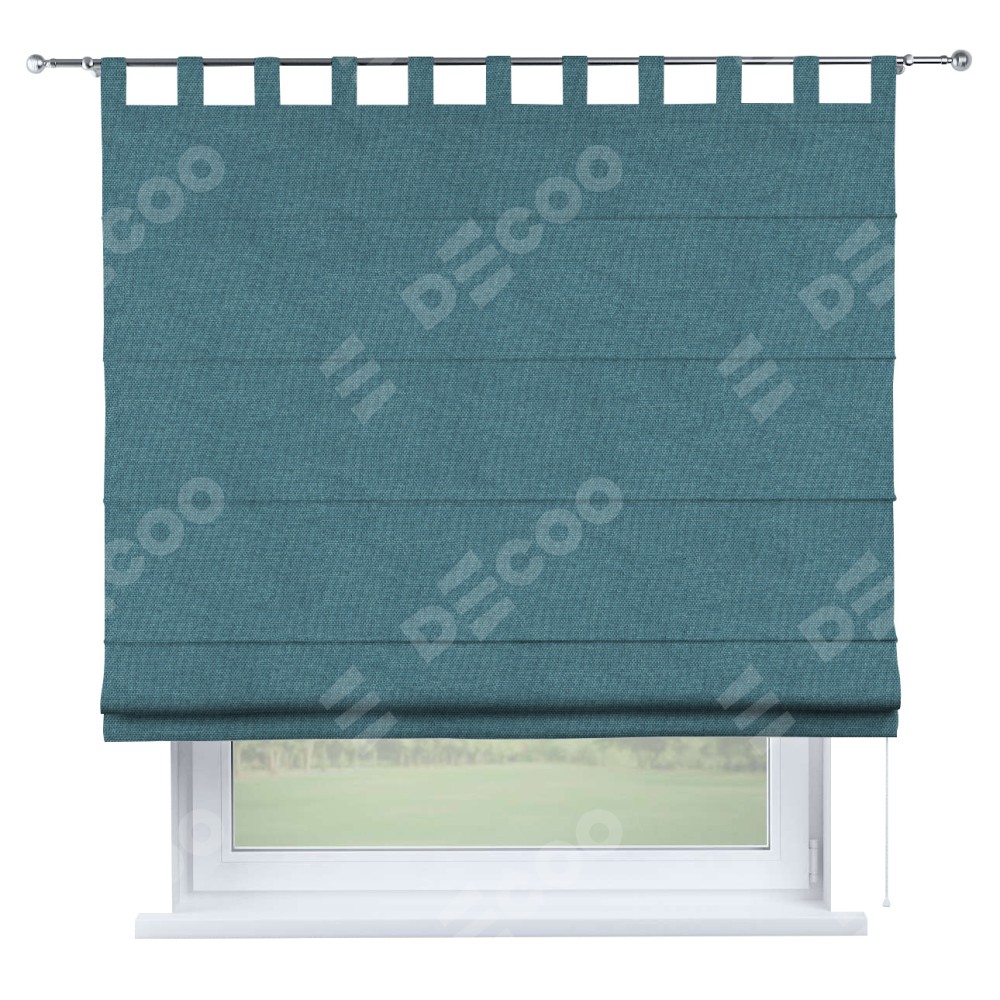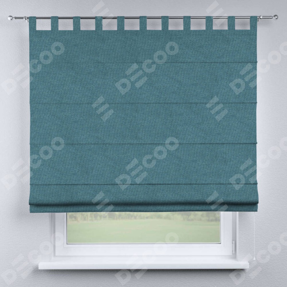 Римская штора производителя «Cortin», используется для проёма, пошита из ткани лён димаут светло-синий, артикул ткани 91007. Данная модель пошита на петлях, комплектуется на выбор круглым карнизом и подходит для монтажа на стену. Римская штора на петлях имеет простую систему регулировки высоты, отличительным преимуществом данной модели является простой способ монтажа. Достаточно повесить ее на трубу и штора готова!