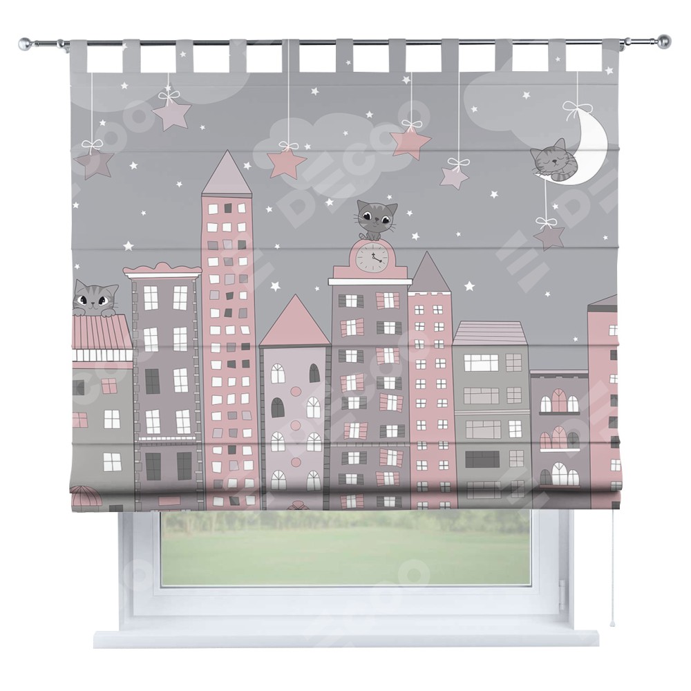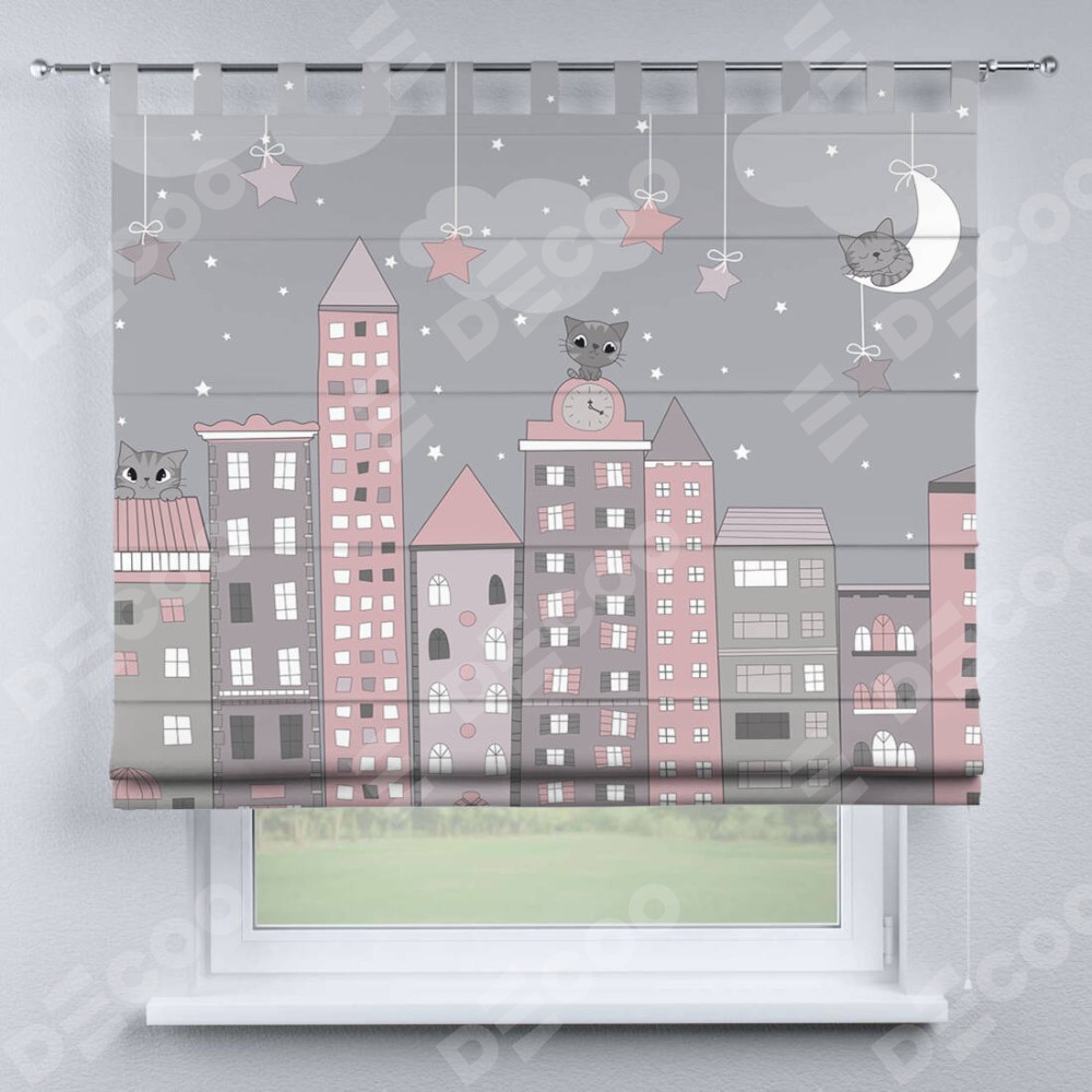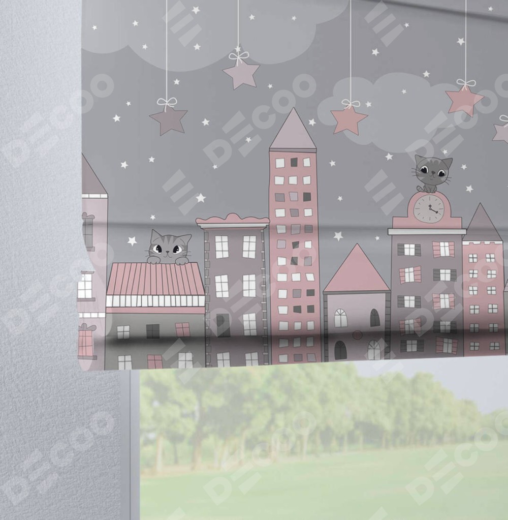 Римская штора «Кортин» на петлях «Вечерний город» отлично подойдёт для интерьера: в детскую.