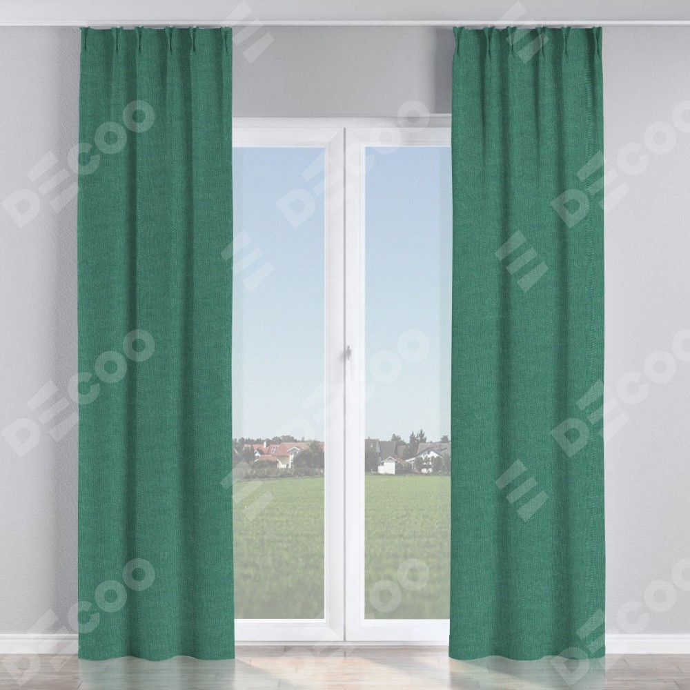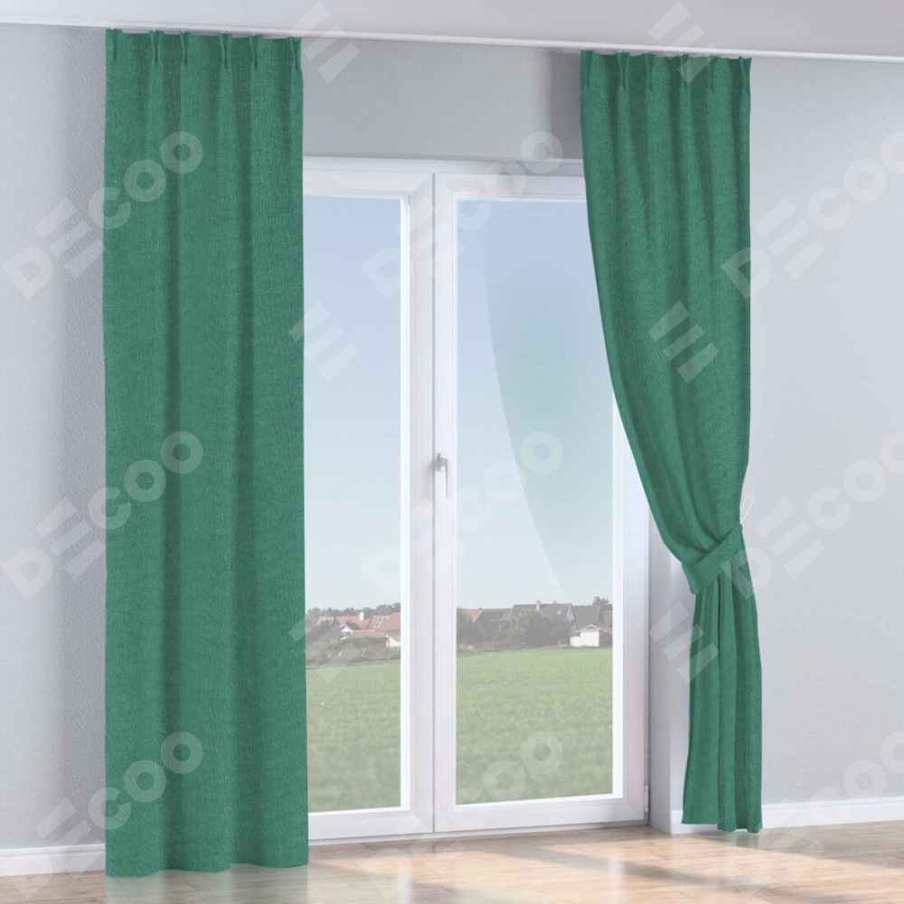Комплект прямых штор, от производителя «Cortin», пошиты из ткани лён димаут светло-бирюзовый, артикул ткани 91005. С изнаночной стороны в верхней части штор пристрачивается шторная лента с декоративными складками «Кустик». Для создания элегантных складок прямые шторы шьются по стандарту с коэффициентом 1:2 (на 100 см. ширины проёма 200 см. ширины ткани).