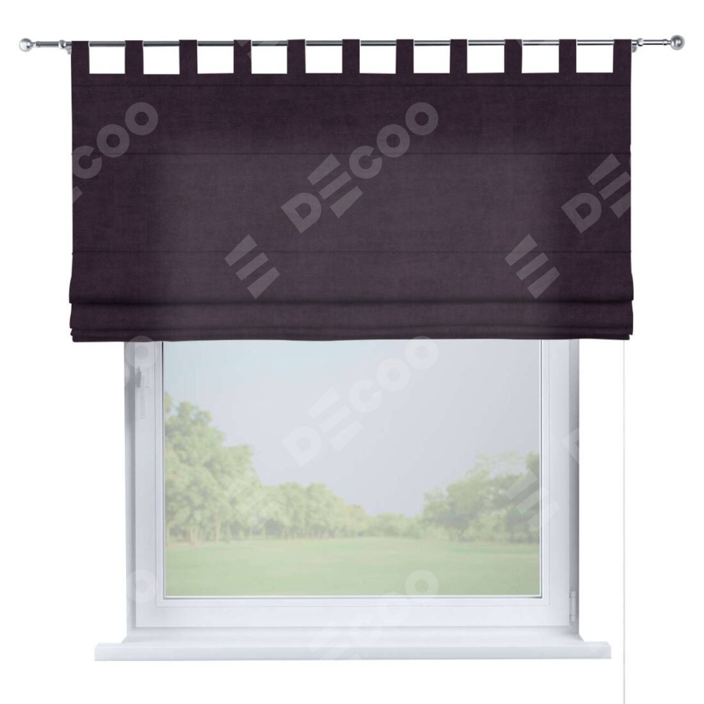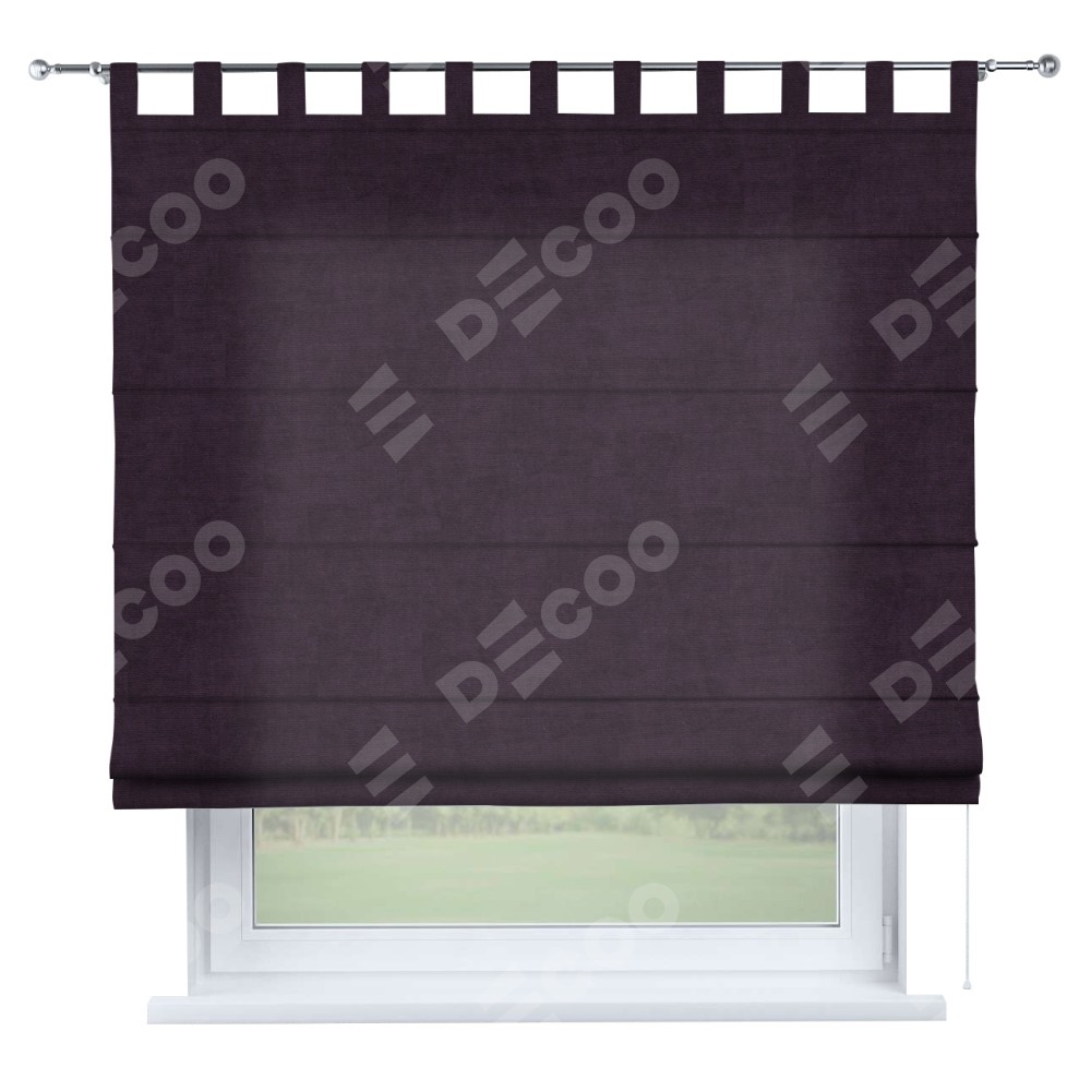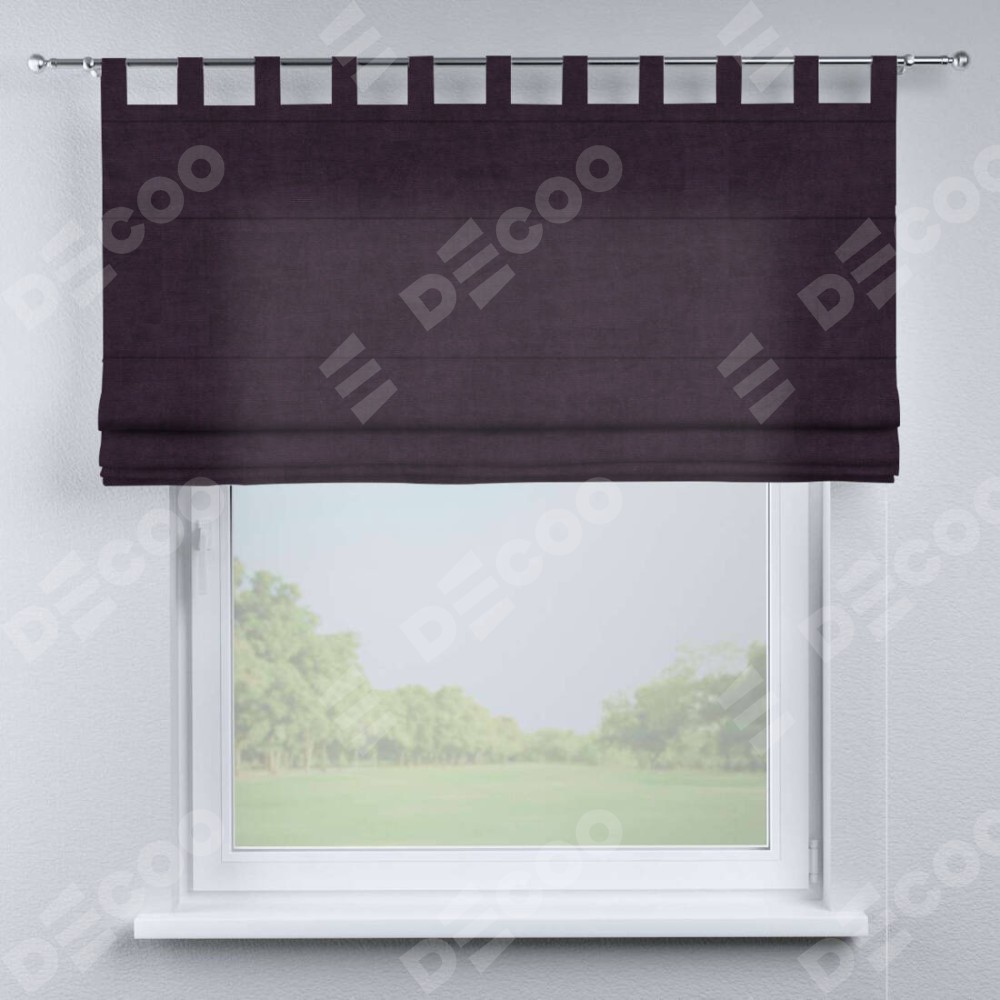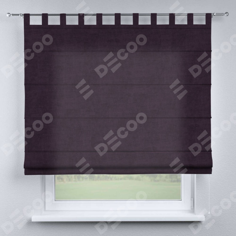 Римская штора «Кортин», вельвет тёмно-фиолетовый, на петлях