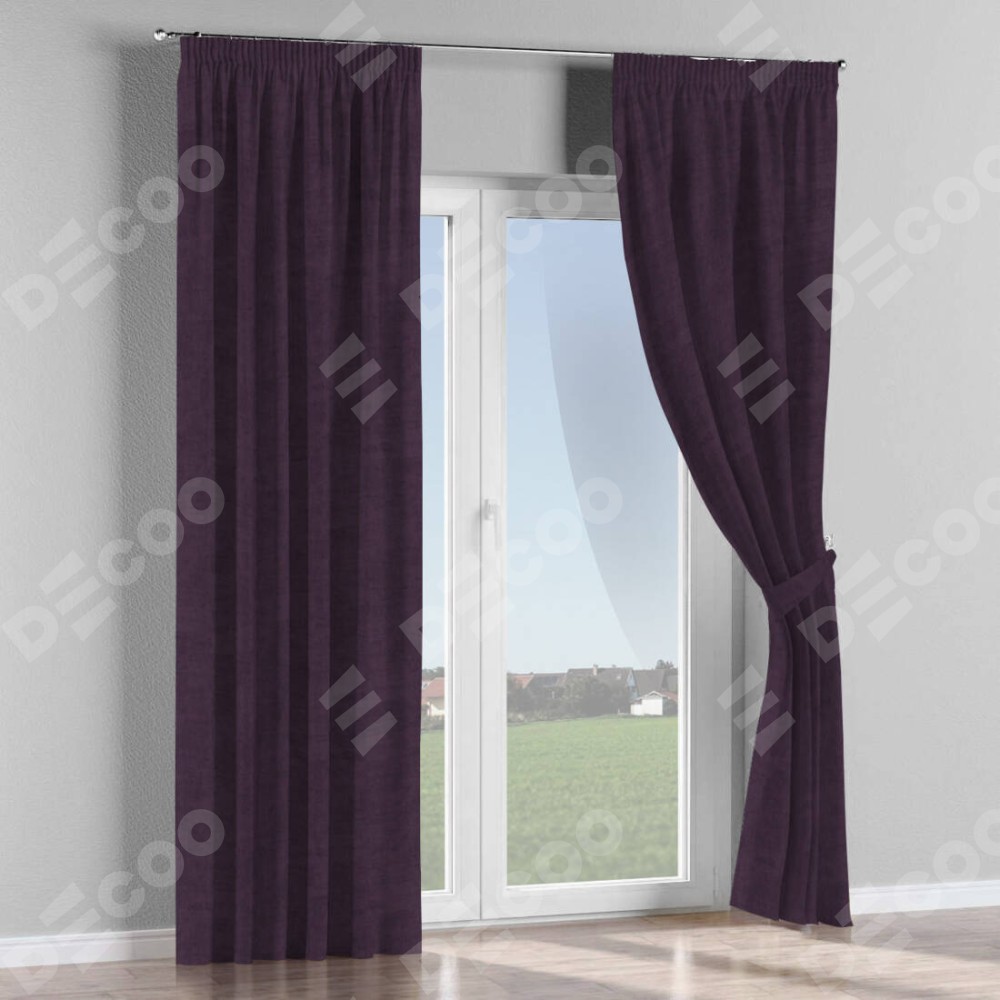 Комплект прямых штор, от производителя «Cortin», пошиты из ткани вельвет тёмно-фиолетовый, артикул ткани 72403. С изнаночной стороны в верхней части штор пристрачивается шторная лента с декоративными складками «Карандаш». Для создания элегантных складок прямые шторы шьются по стандарту с коэффициентом 1:2 (на 100 см. ширины проёма 200 см. ширины ткани).