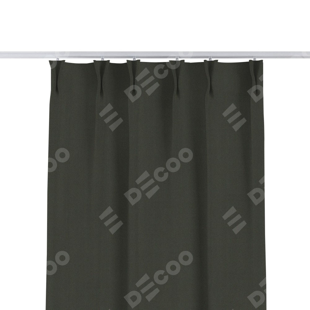 Комплект прямых штор, от производителя «Cortin», пошиты из ткани блэкаут однотонный дымчато-серый, артикул ткани 91571−1. С изнаночной стороны в верхней части штор пристрачивается шторная лента с декоративными складками «Кустик». Для создания элегантных складок прямые шторы шьются по стандарту с коэффициентом 1:2 (на 100 см. ширины проёма 200 см. ширины ткани).