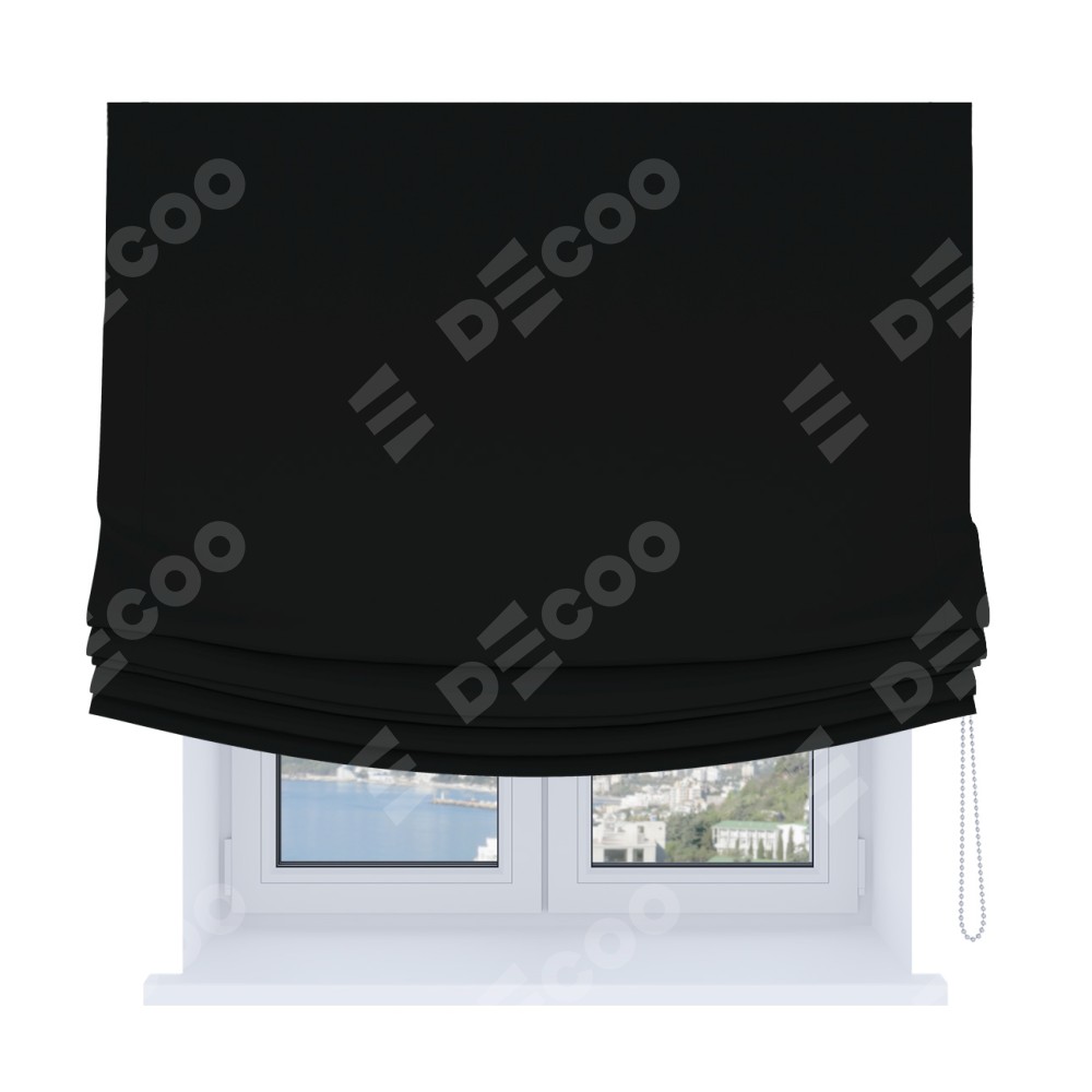 Римская штора «Кортин», блэкаут однотонный черный, Soft с мягкими складками