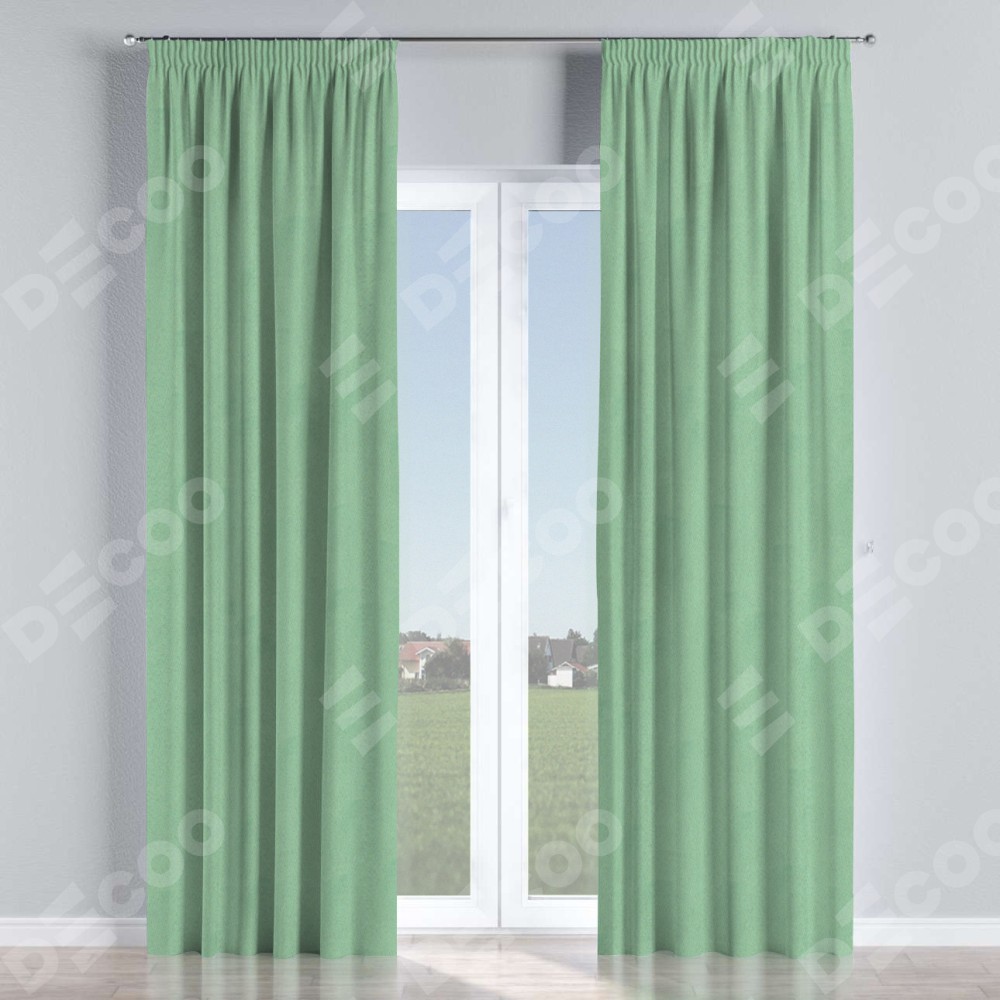 Комплект прямых штор, от производителя «Cortin», пошиты из ткани блэкаут однотонный ментоловый, артикул ткани 91572−1. С изнаночной стороны в верхней части штор пристрачивается шторная лента с декоративными складками «Карандаш». Для создания элегантных складок прямые шторы шьются по стандарту с коэффициентом 1:2 (на 100 см. ширины проёма 200 см. ширины ткани).
