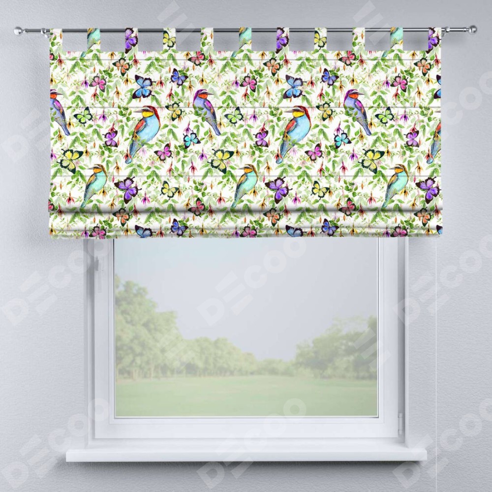 Римская штора «Кортин» на петлях «Тропические птицы» предоставлена в следующих характеристиках: