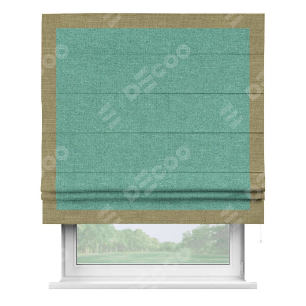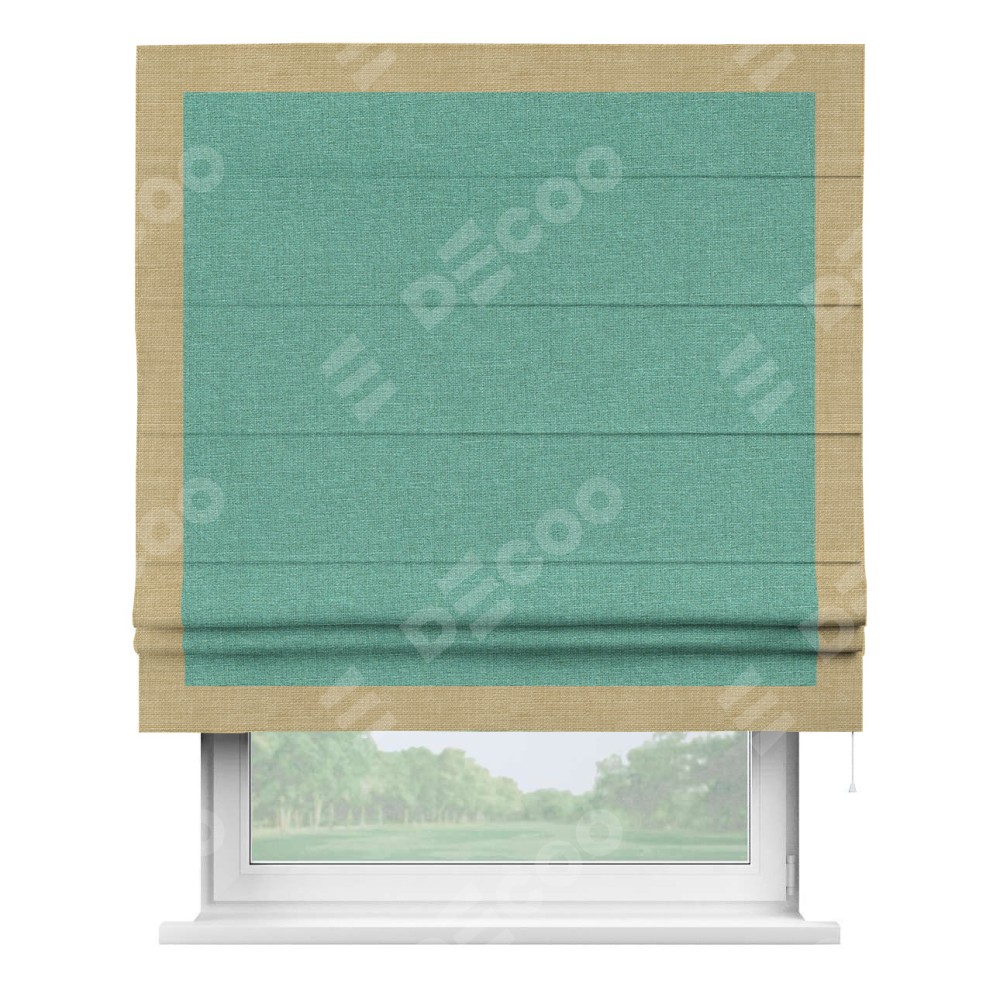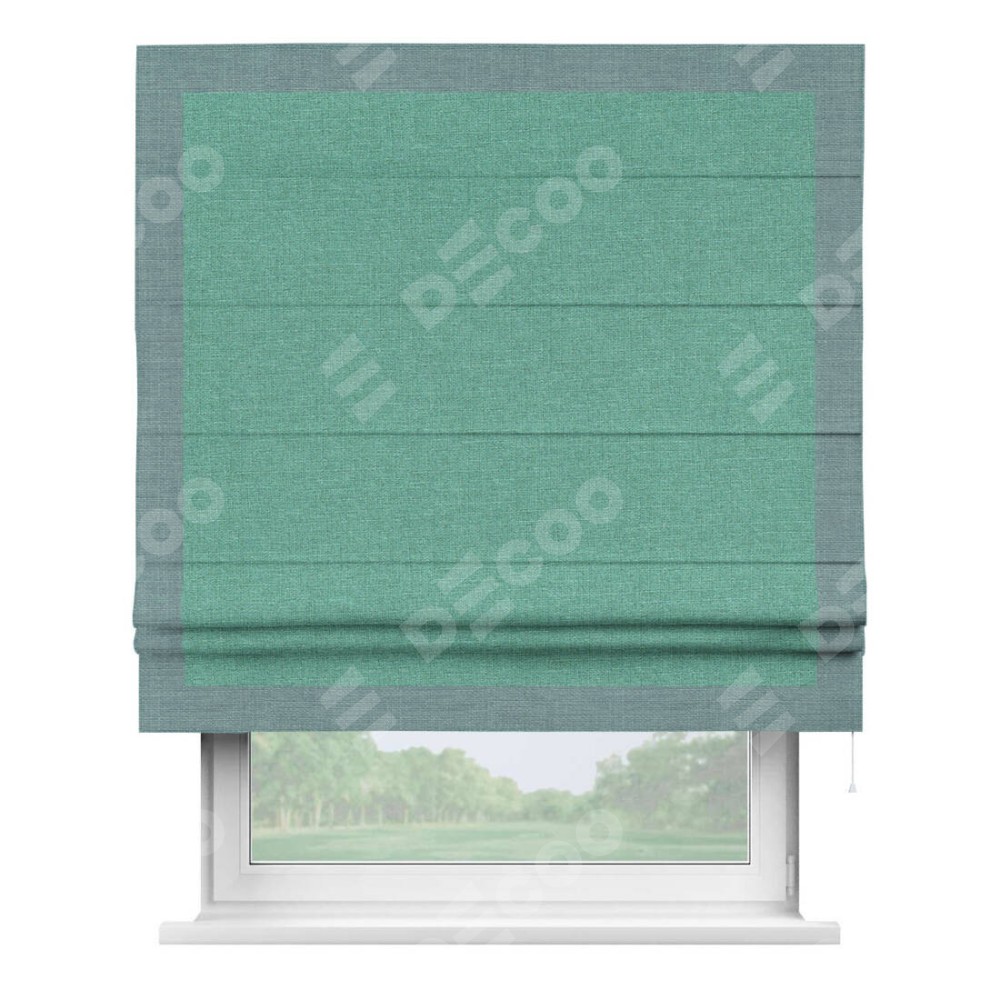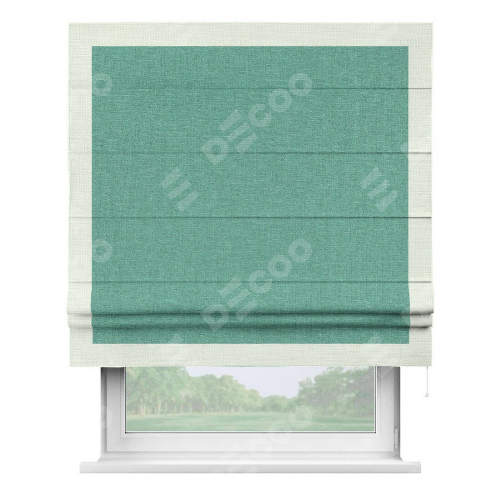 Римская штора «Кортин» с кантом Чесс, для проема, лён светло-бирюзовый