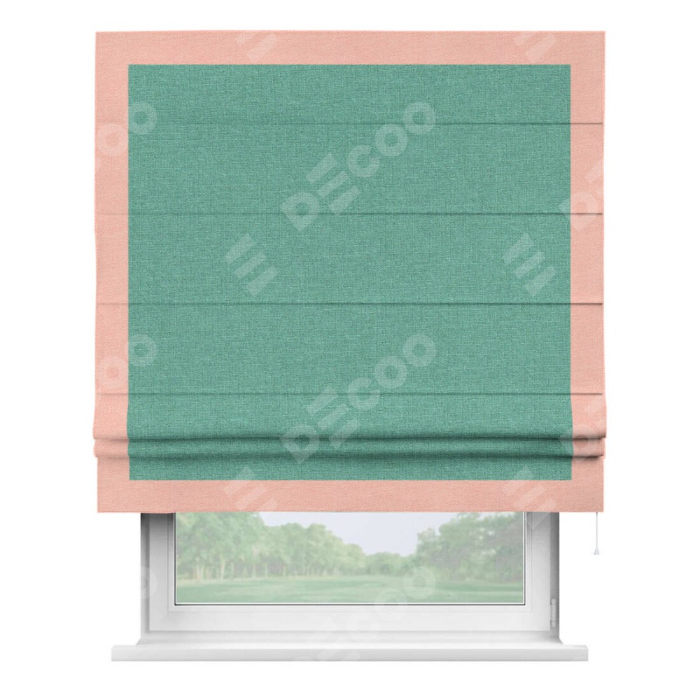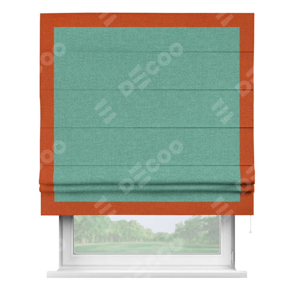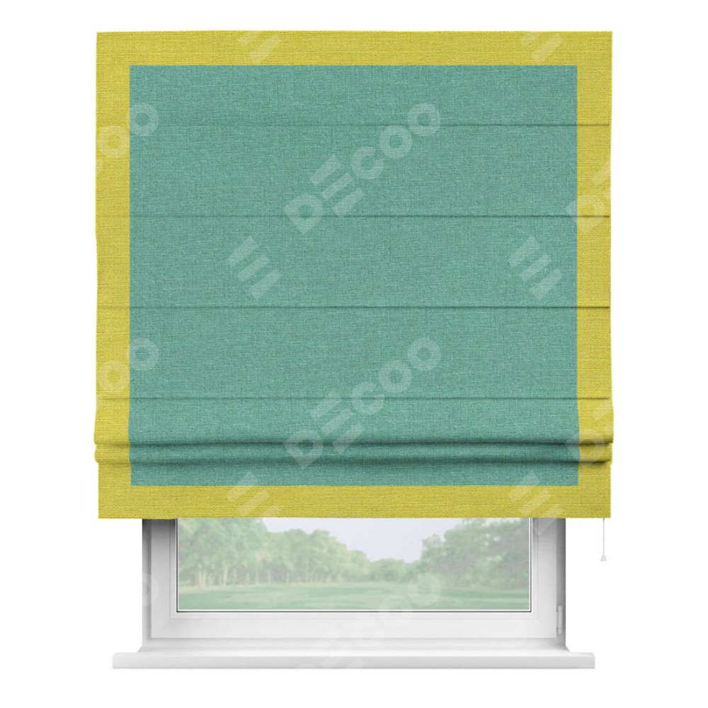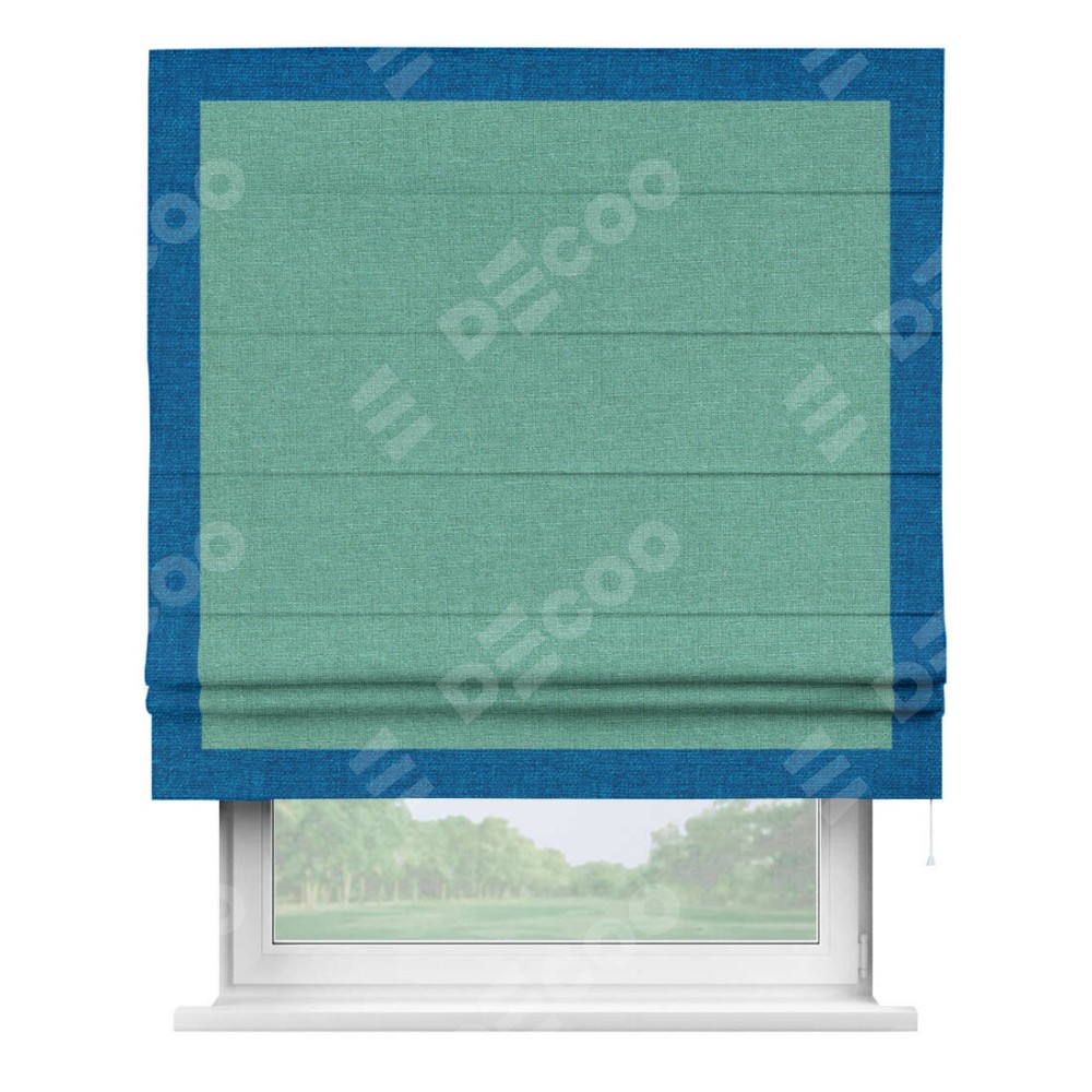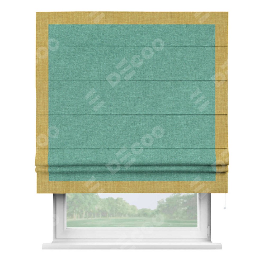 Римская штора «Кортин» с кантом Чесс, для проема, лён светло-бирюзовый