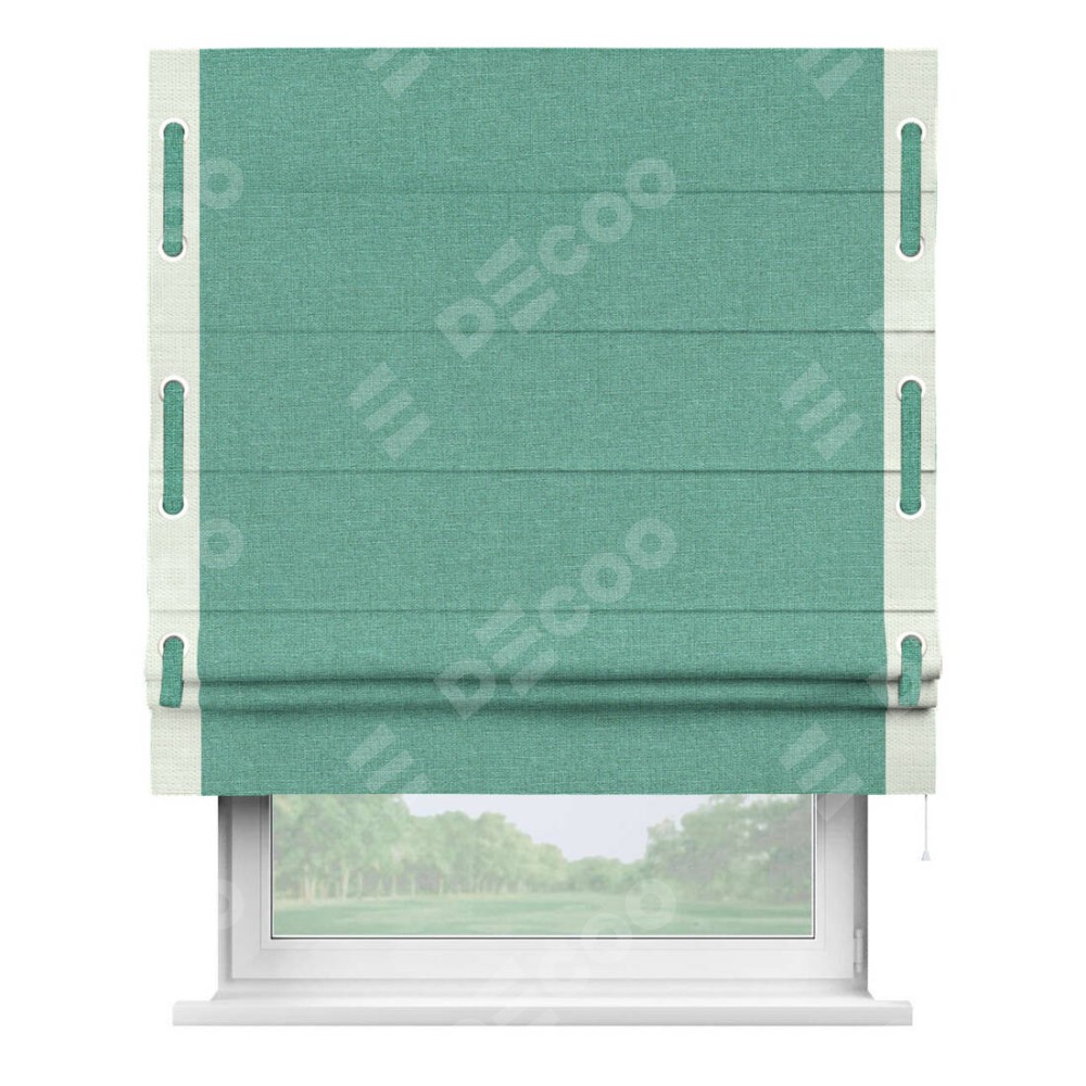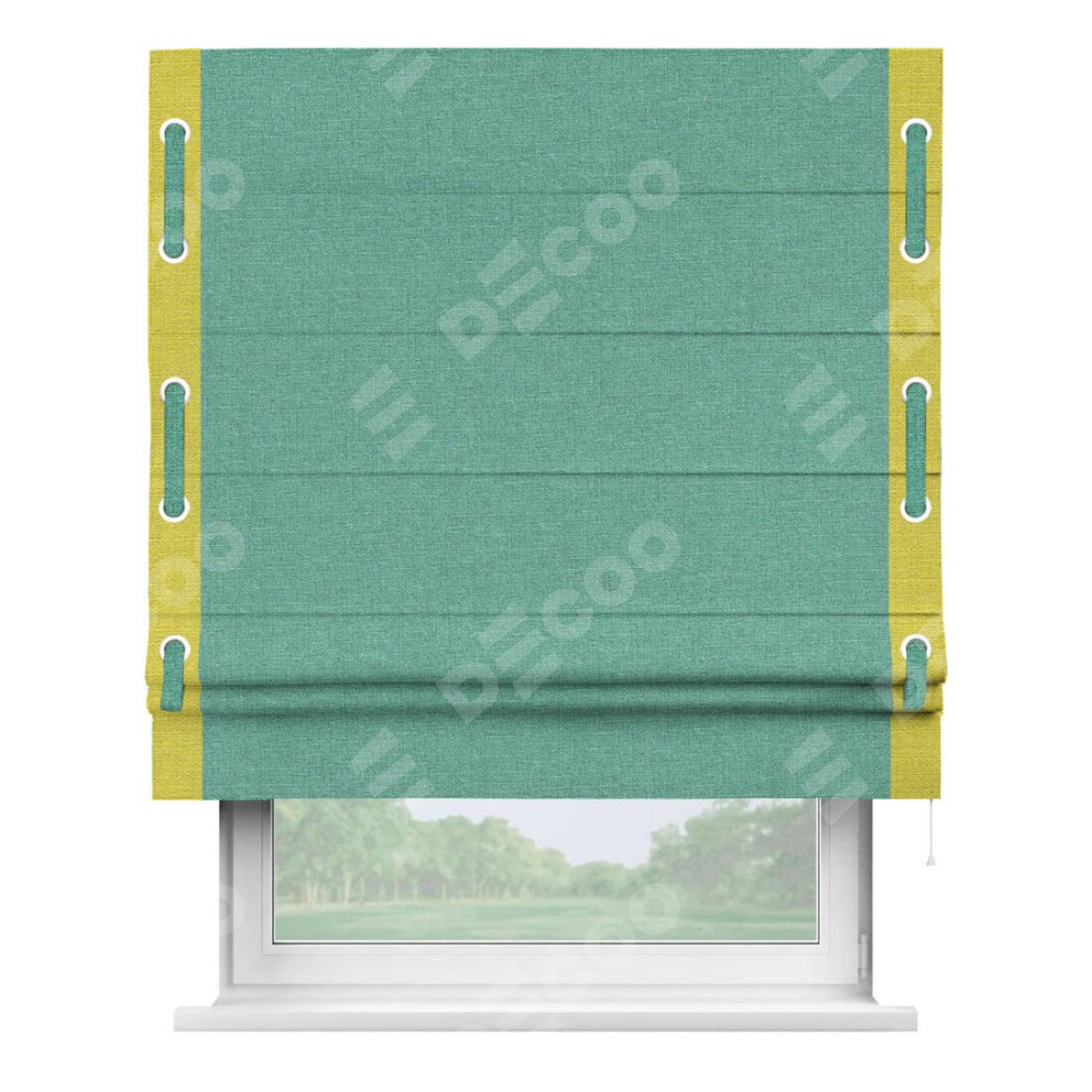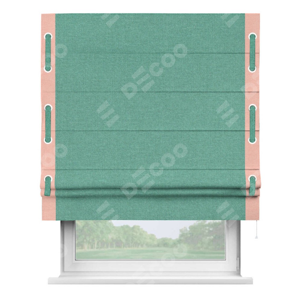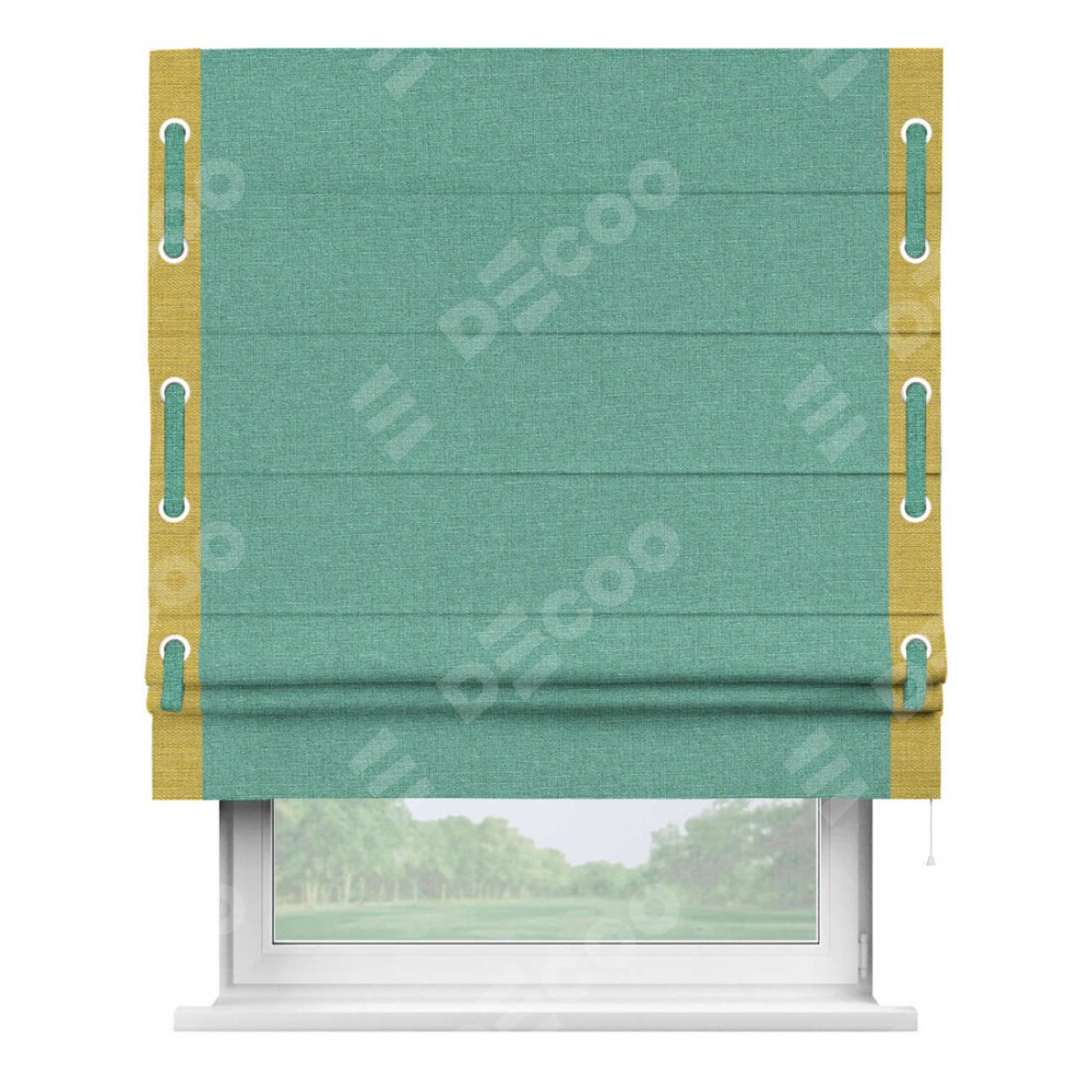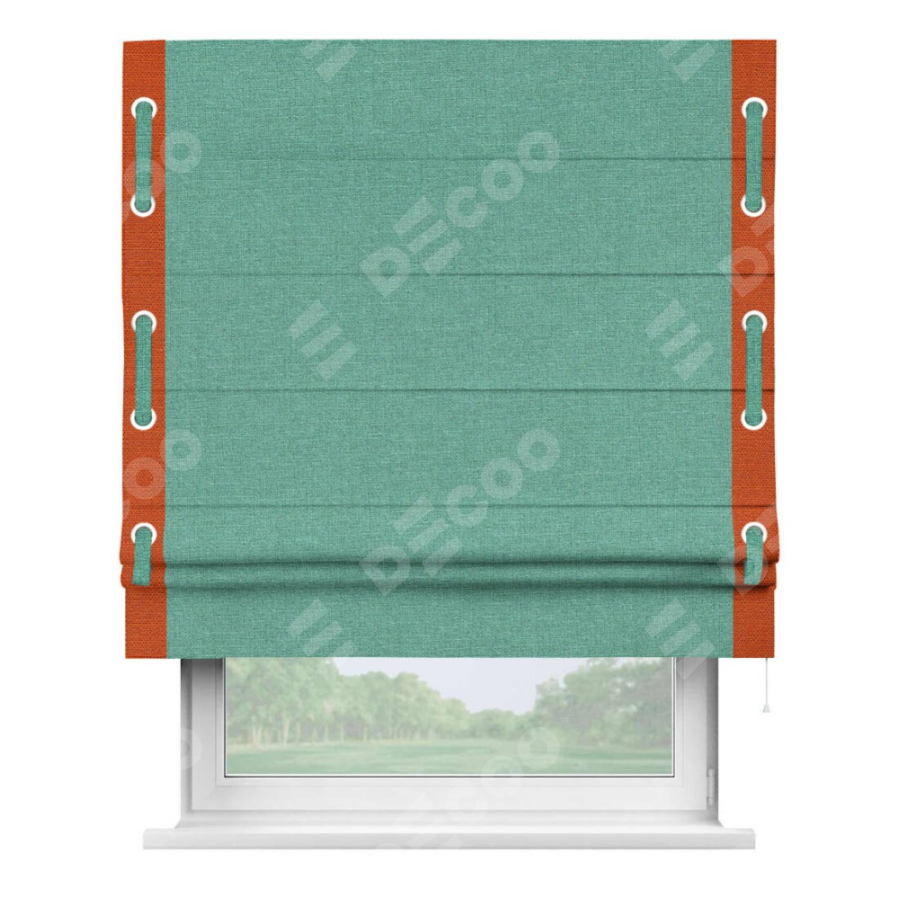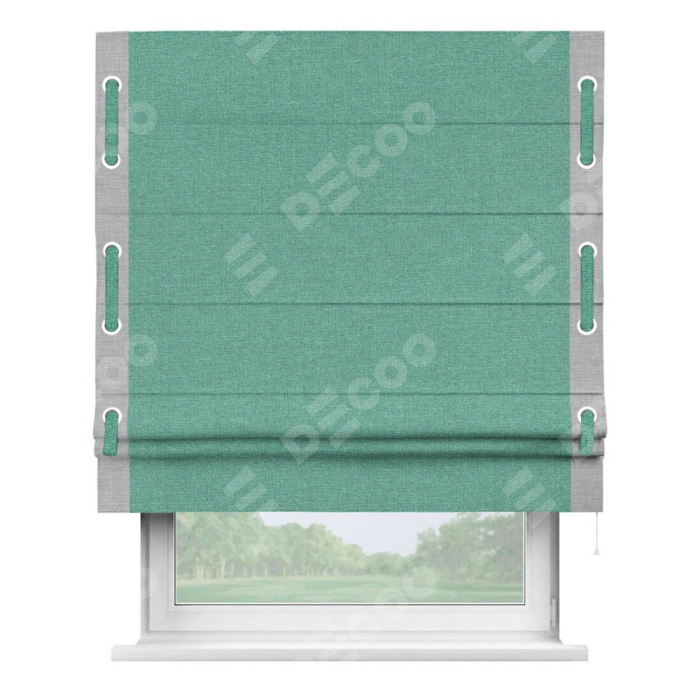 Римская штора «Кортин» с кантом Стрим Дуо (люверсы с пояском), для проема, лён светло-бирюзовый