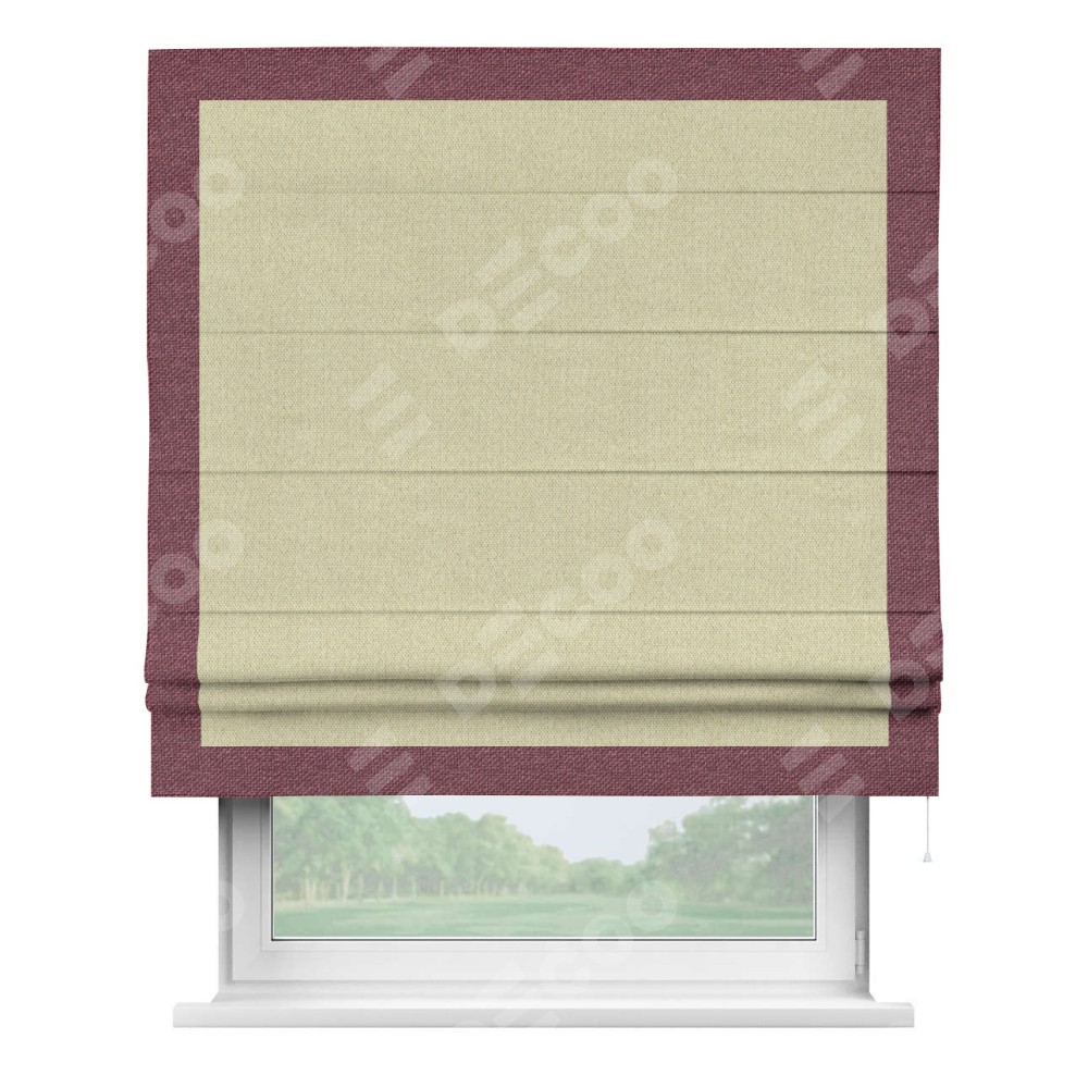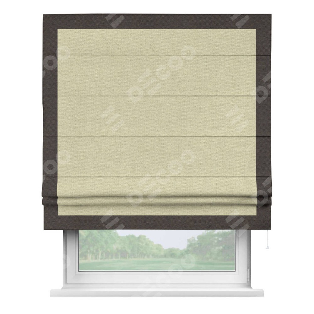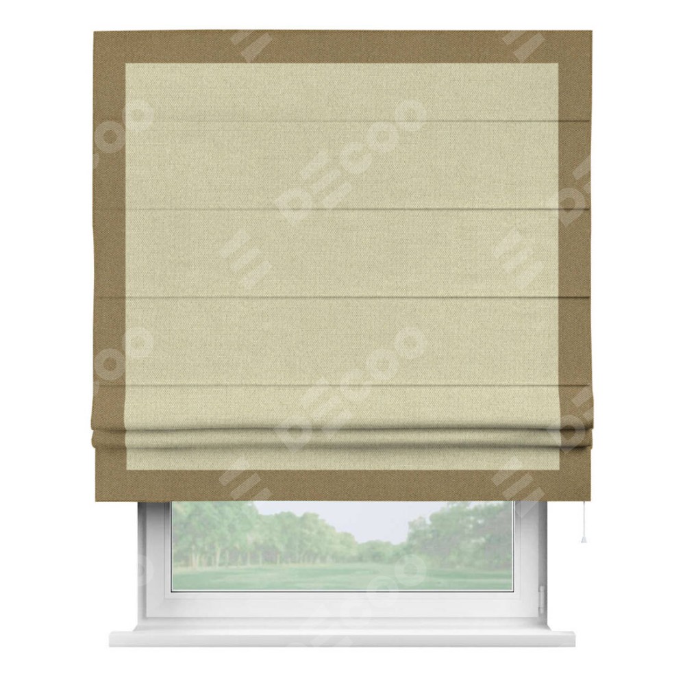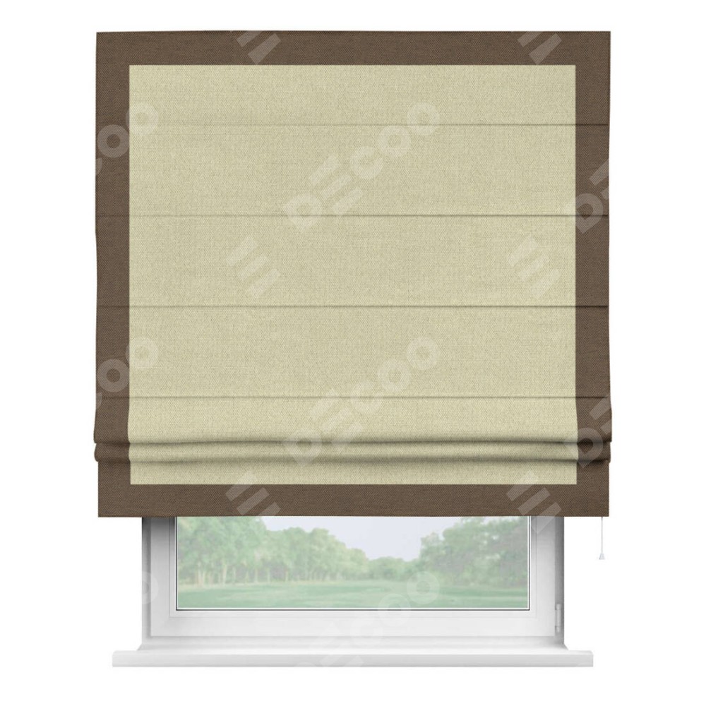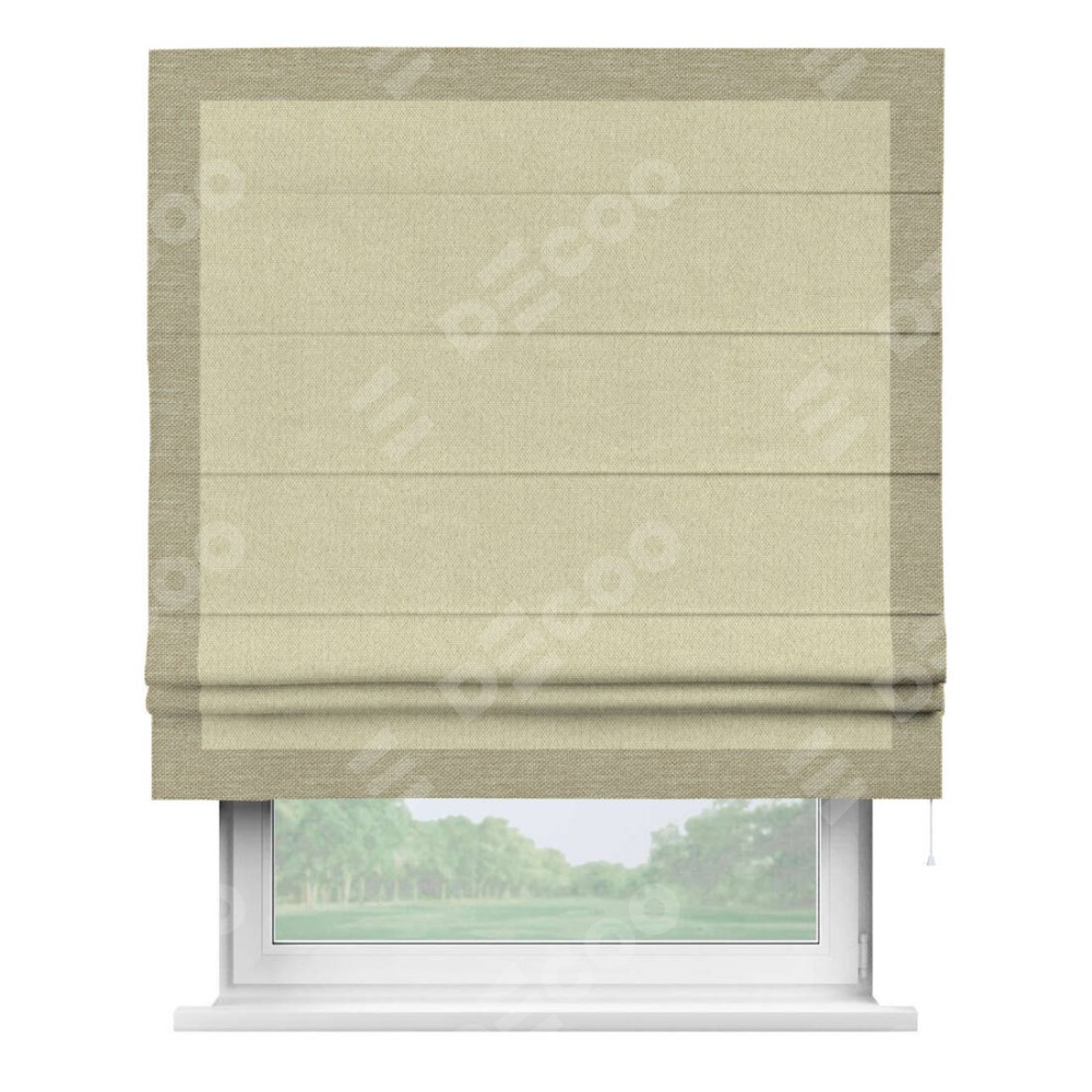 Римская штора «Кортин» с кантом Чесс, для проема, ткань лён димаут, шампань
