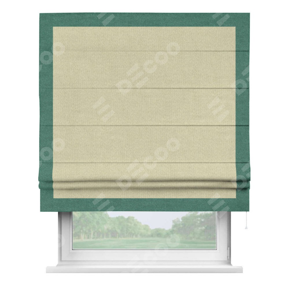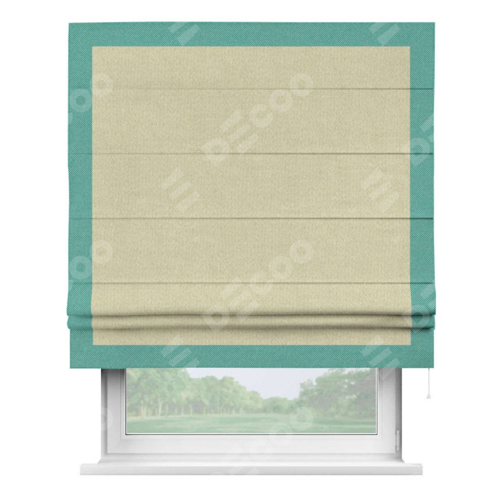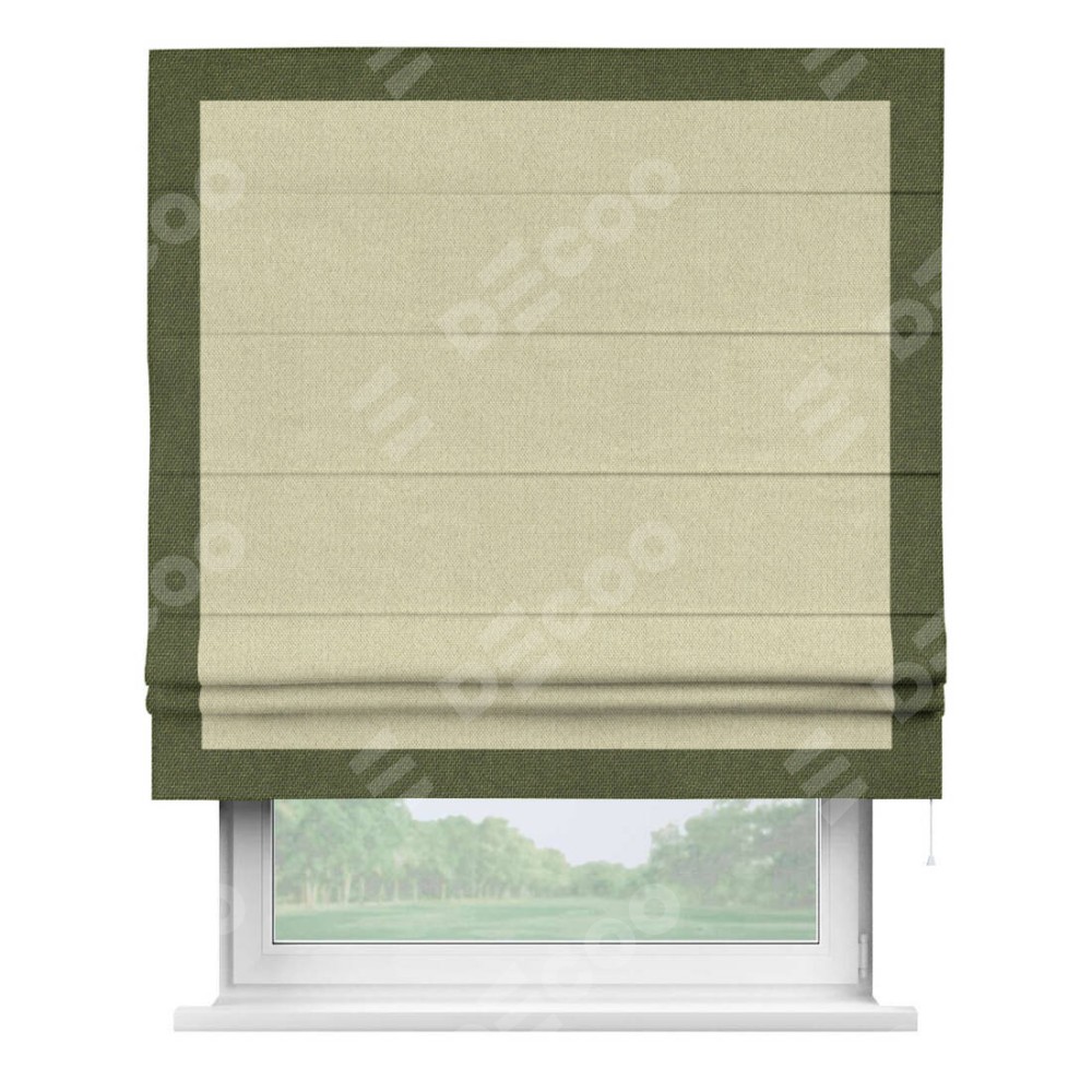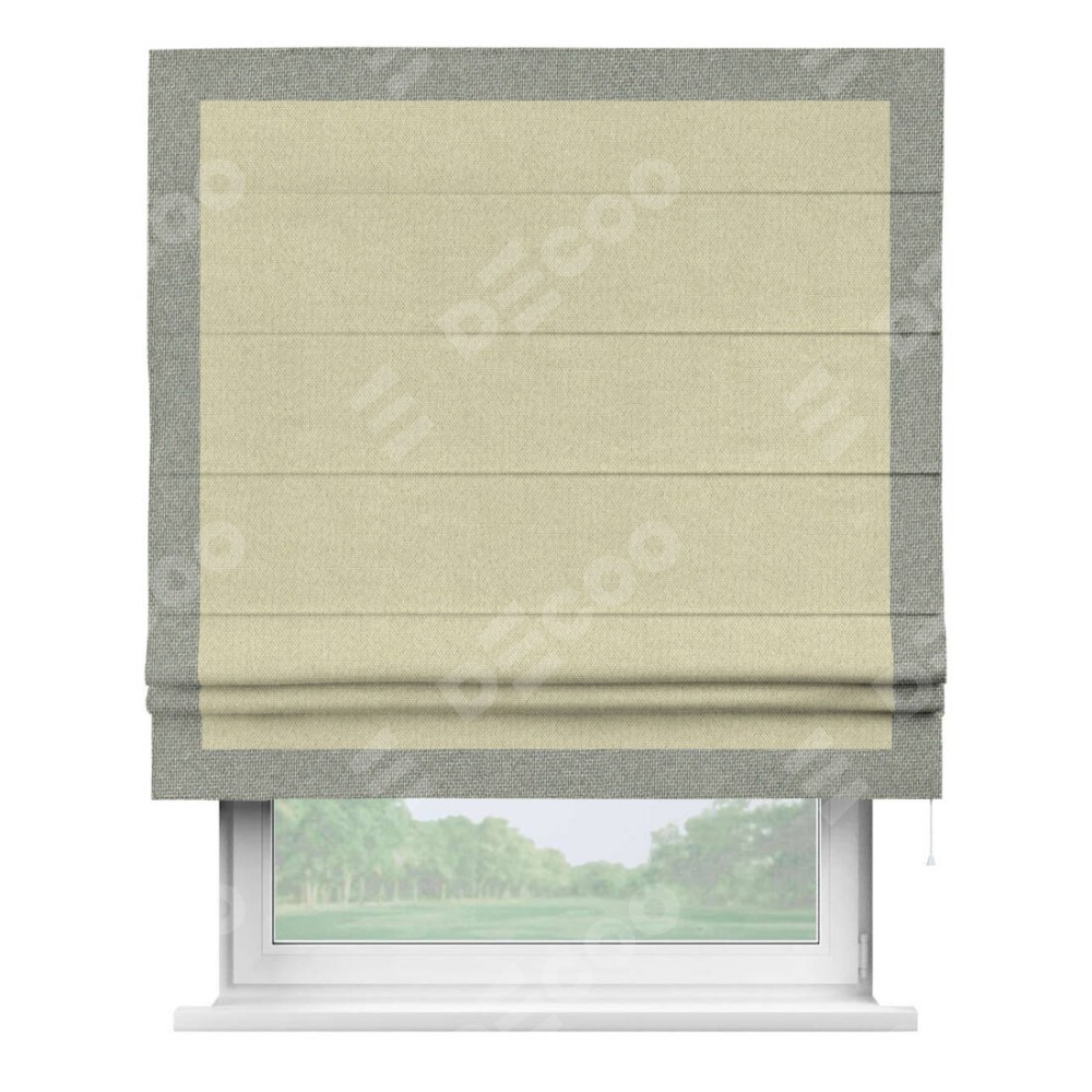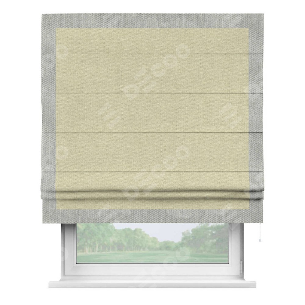 Римская штора «Кортин» с кантом Чесс, для проема, ткань лён димаут, шампань
