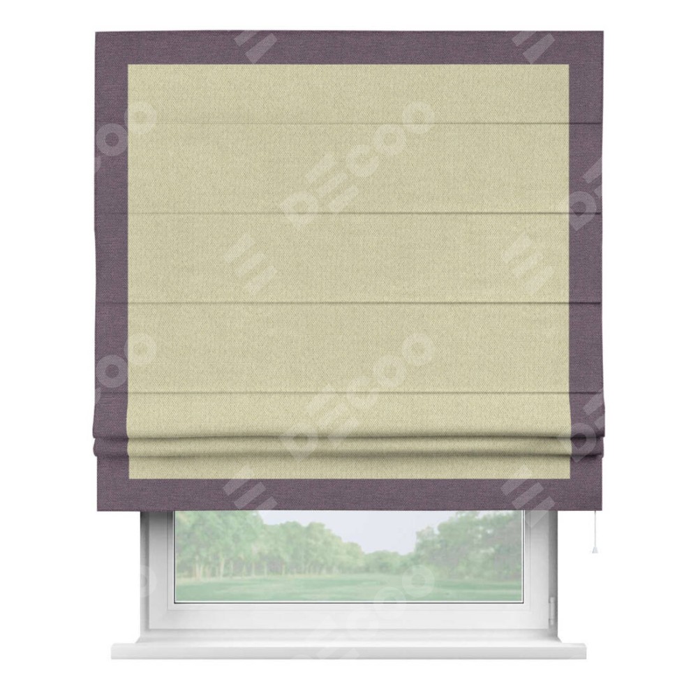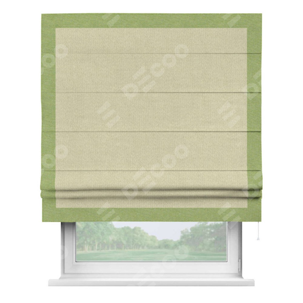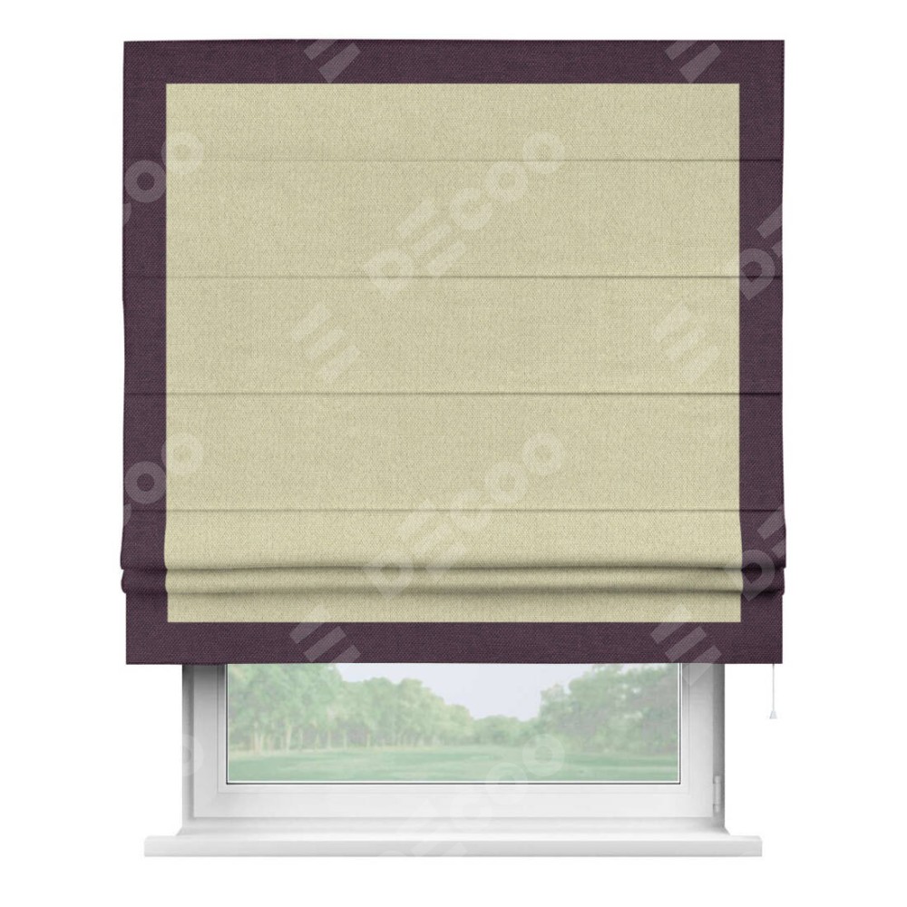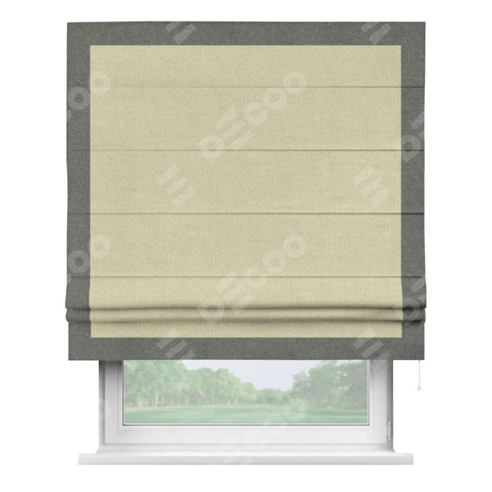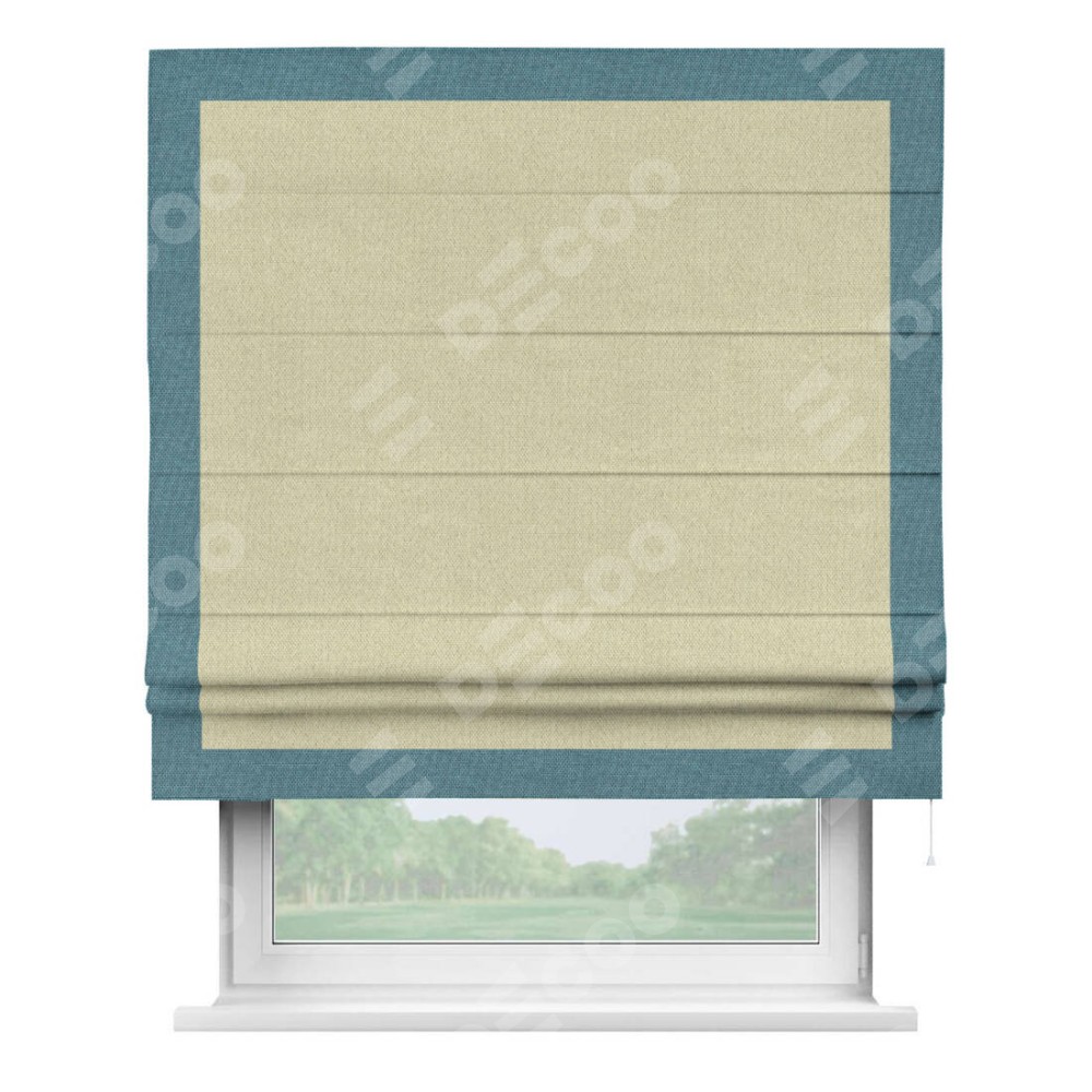 Римская штора «Кортин» с кантом Чесс, для проема, ткань лён димаут, шампань