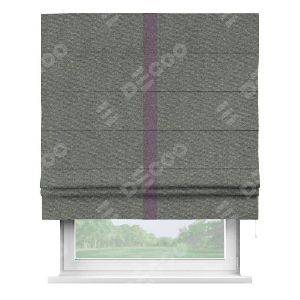 Римская штора «Кортин» с кантом Хайвэй, для проема, ткань лён димаут, тёмно-серый