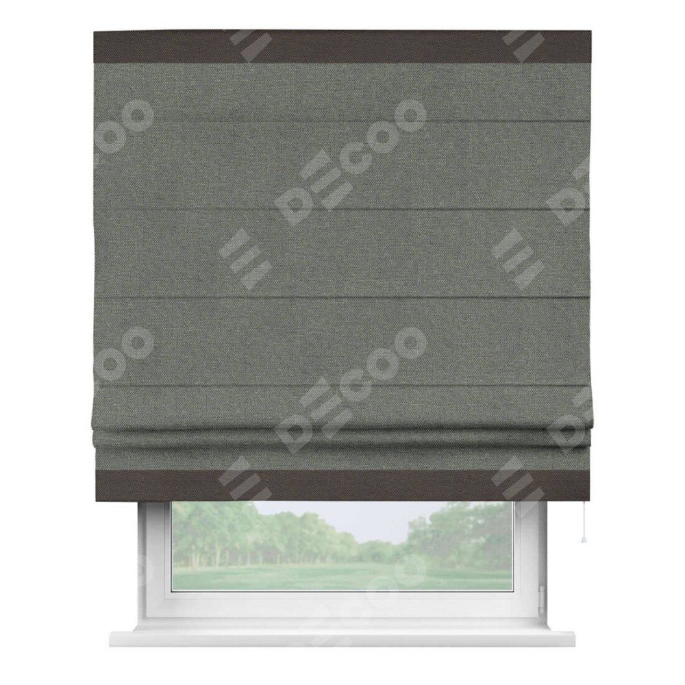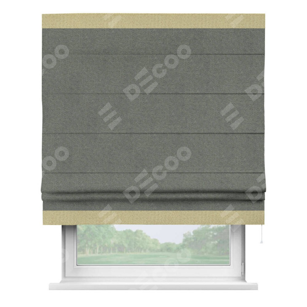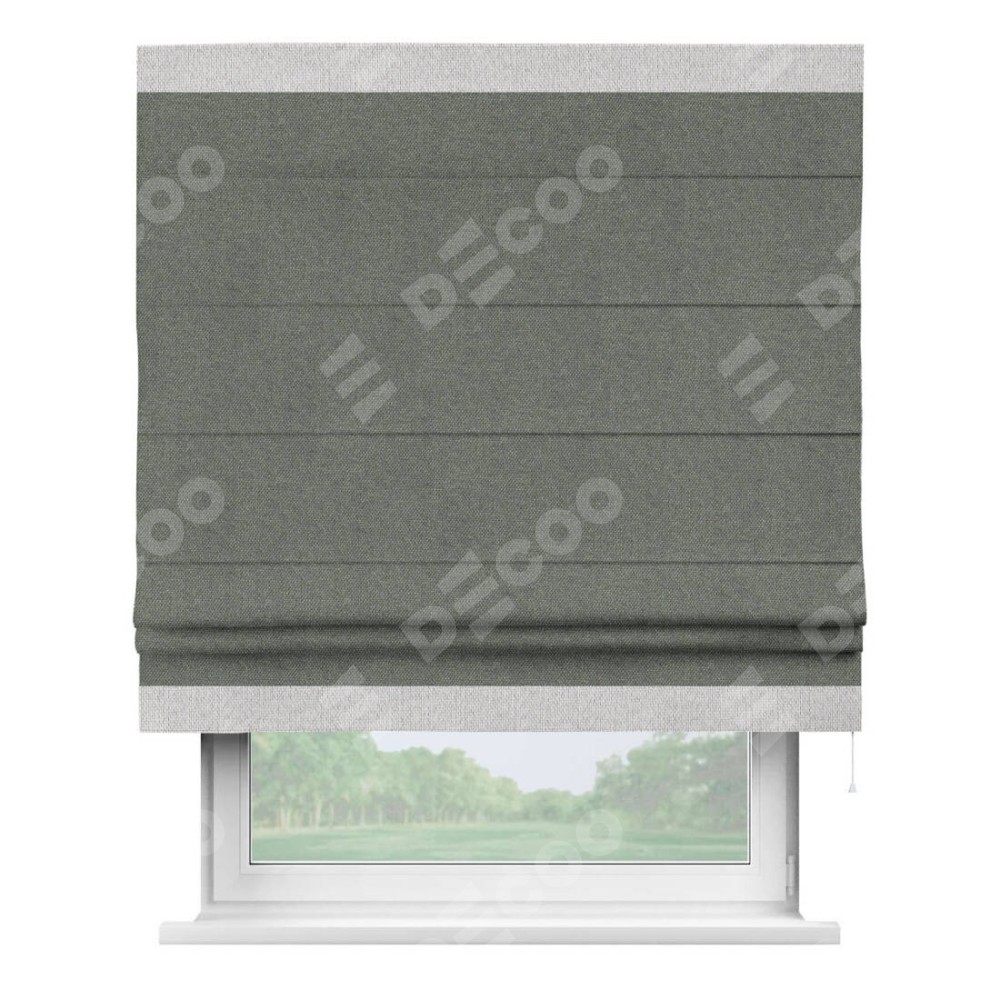 Римская штора «Кортин» с кантом Горизонт, для проема, ткань лён димаут, тёмно-серый