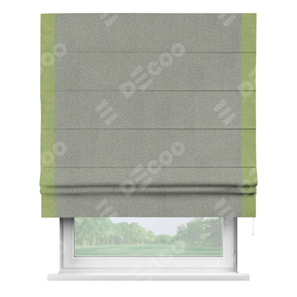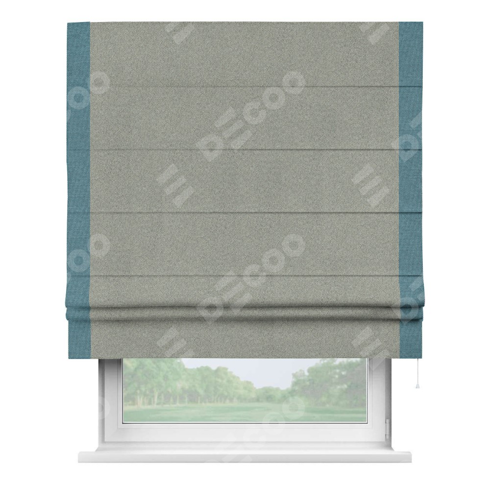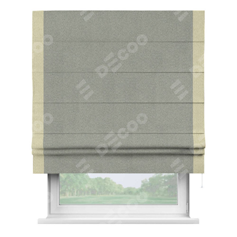 Римская штора «Кортин» для проема, лён димаут серый с кантом Стрим Дуо