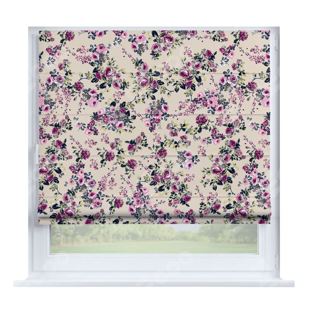 Римская штора «Кортин» на створку «Россыпь розовых цветов» отлично подойдёт для интерьера: в гостиную, в офис и на балкон.