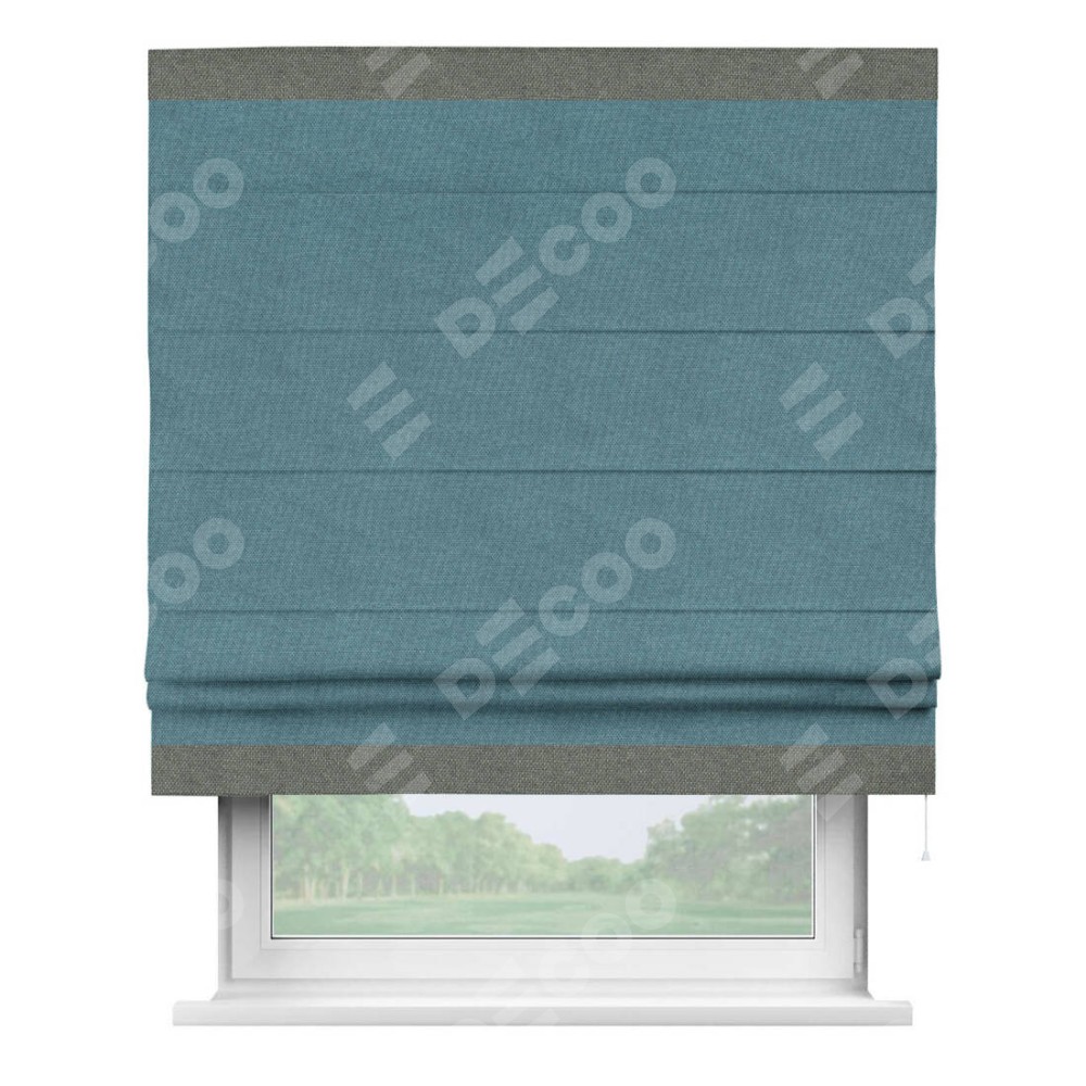 Римская штора «Кортин» для проема, лён димаут светло-синий с кантом Горизонт