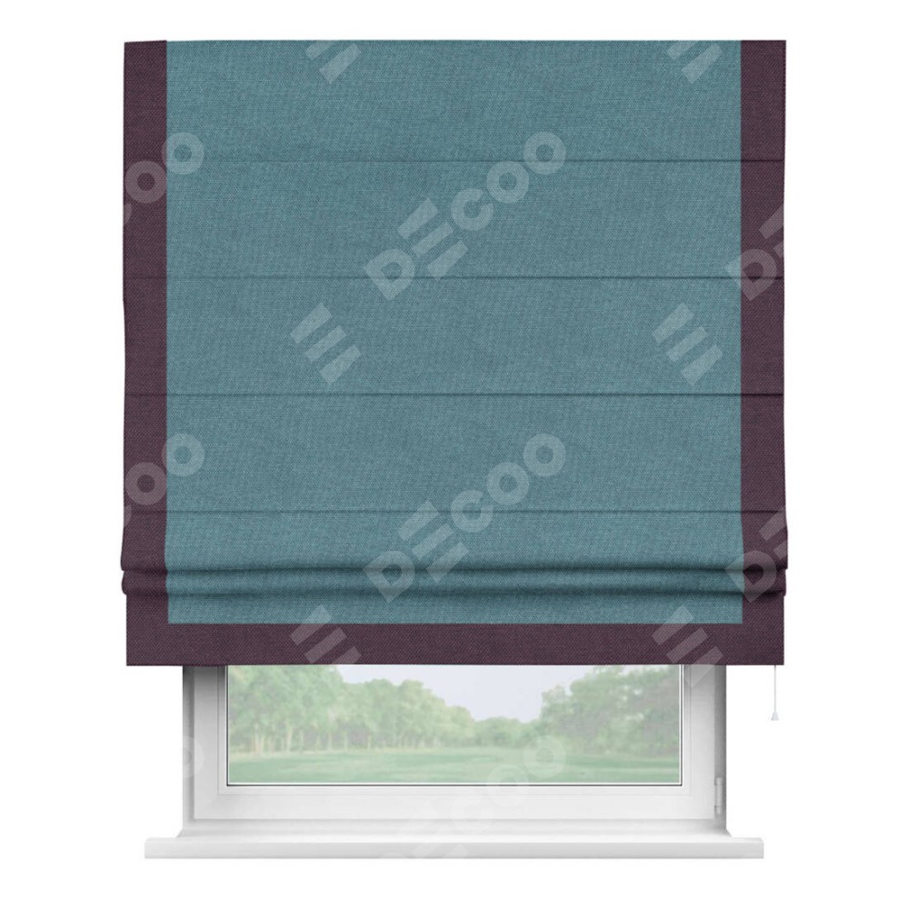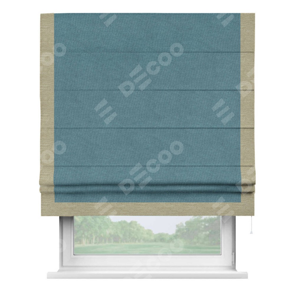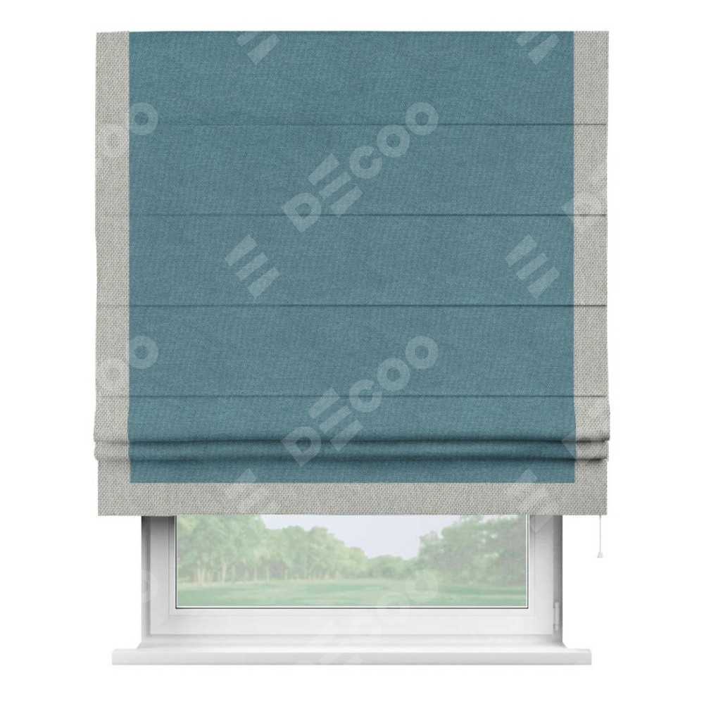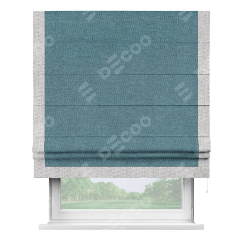 Римская штора «Кортин» для проема, лён димаут светло-синий с кантом Виктория