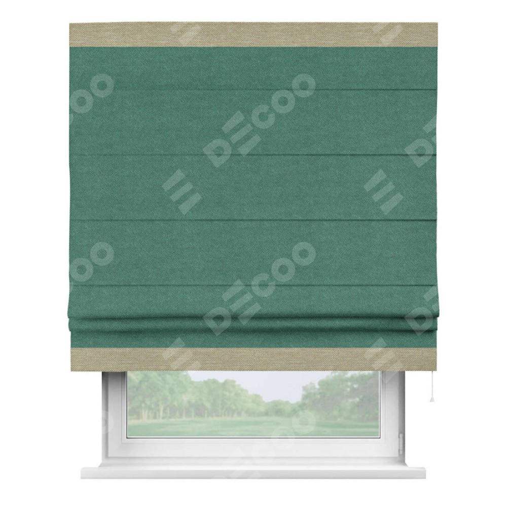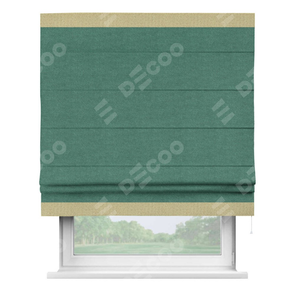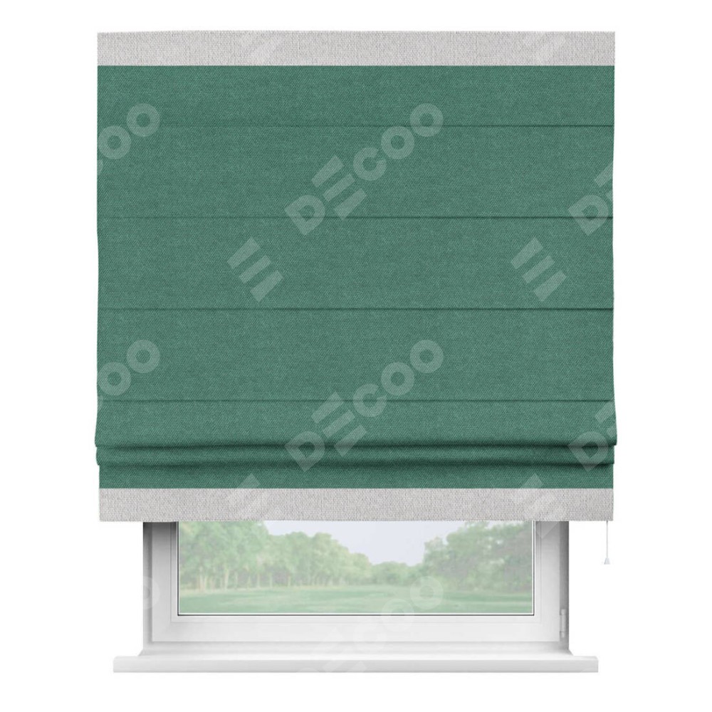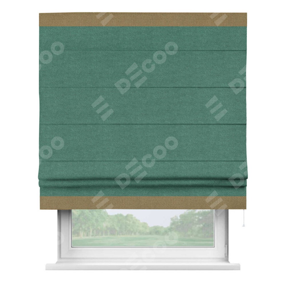 Римская штора «Кортин» для проема, лён димаут светло-бирюзовый с кантом Горизонт