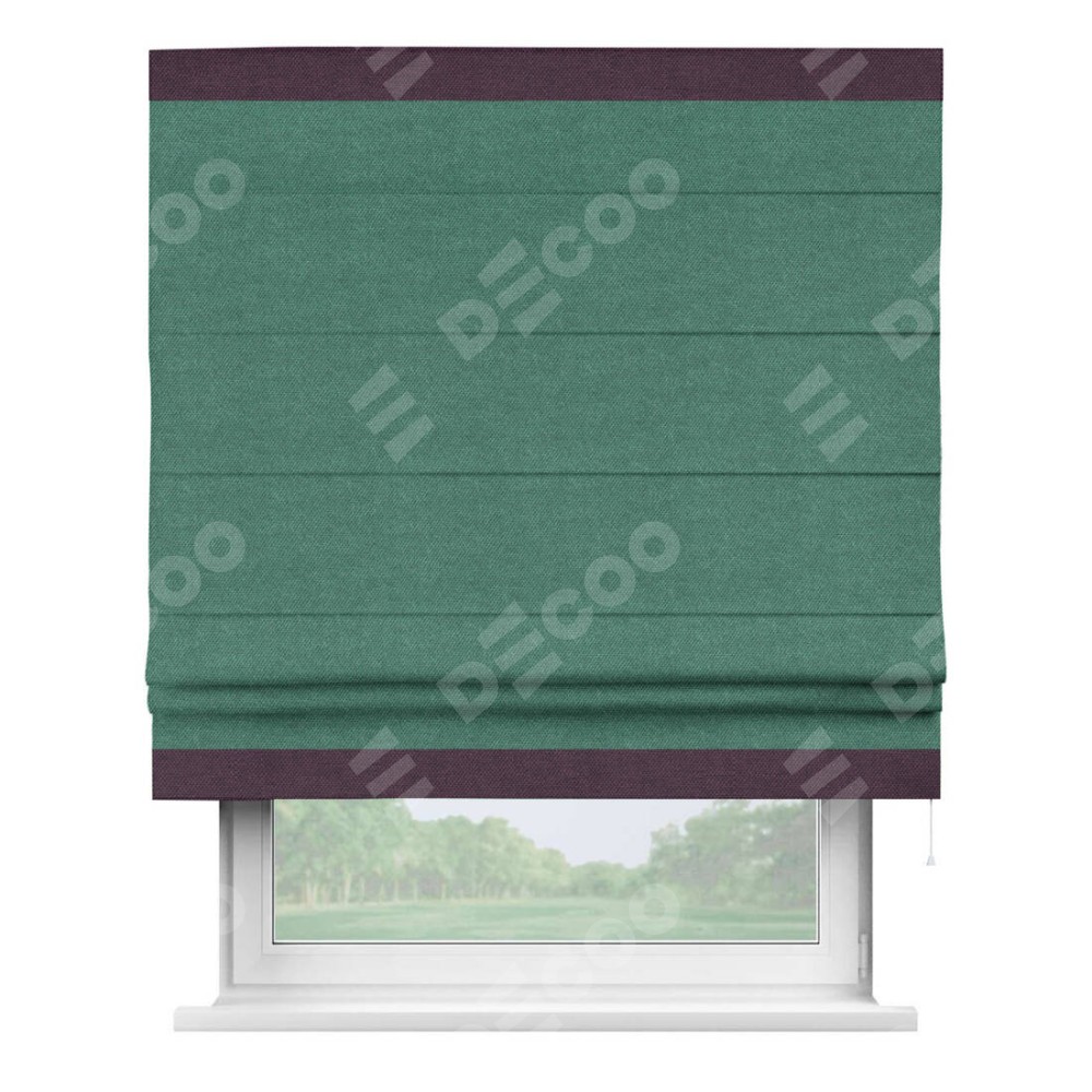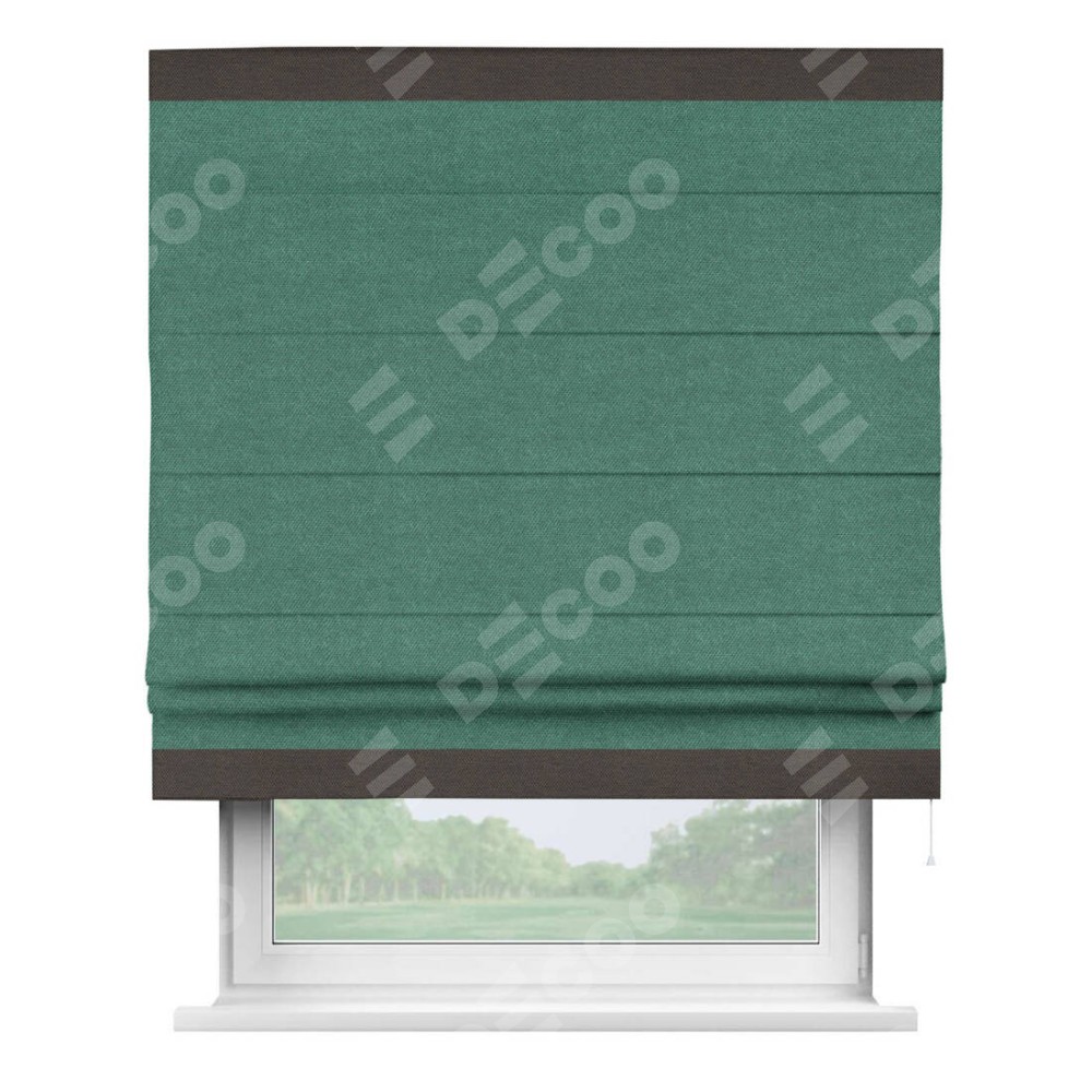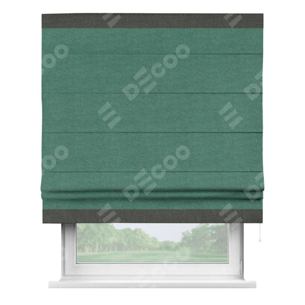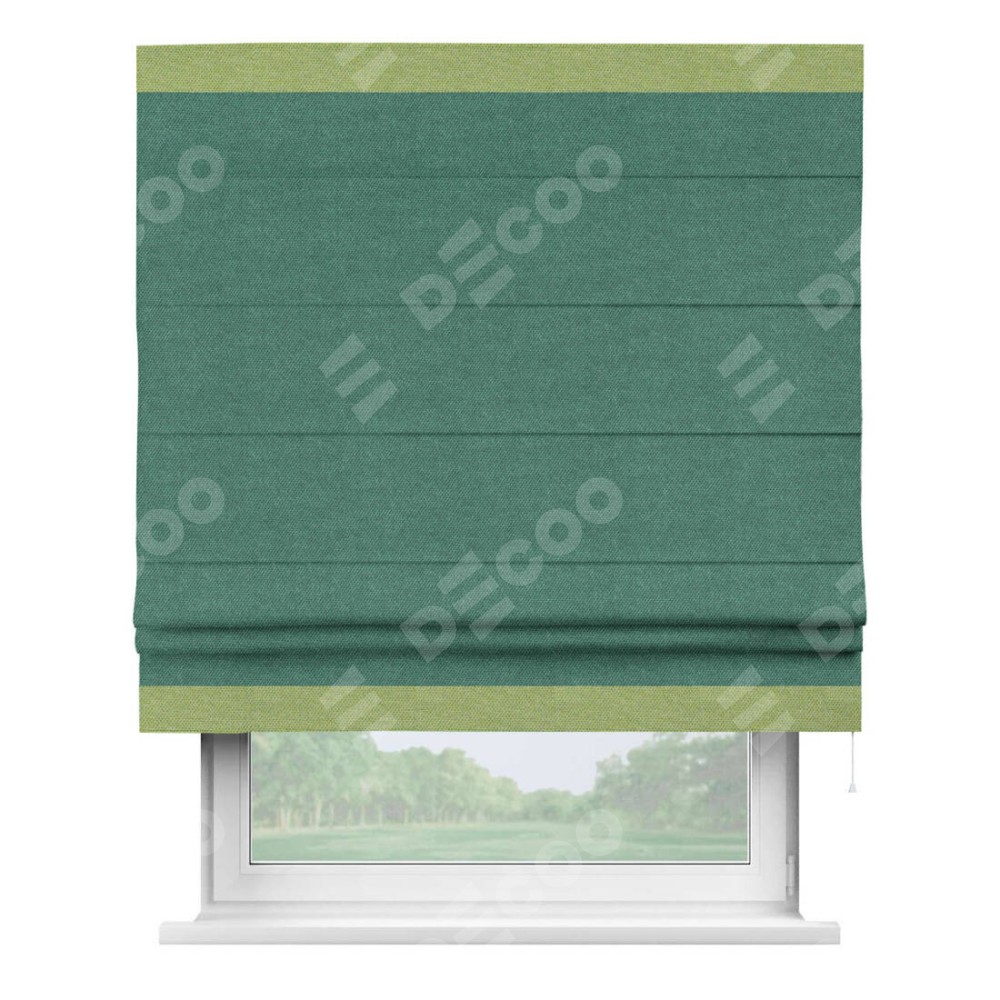 Римская штора «Кортин» для проема, лён димаут светло-бирюзовый с кантом Горизонт