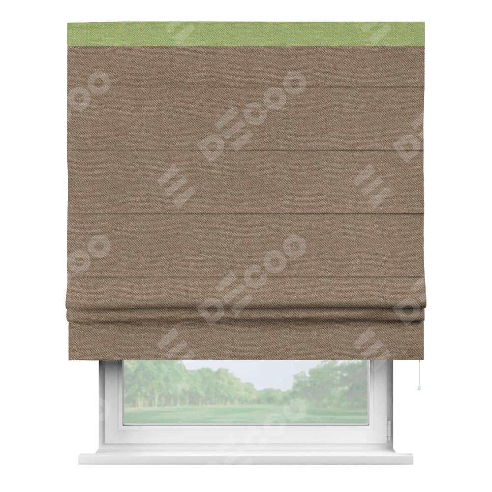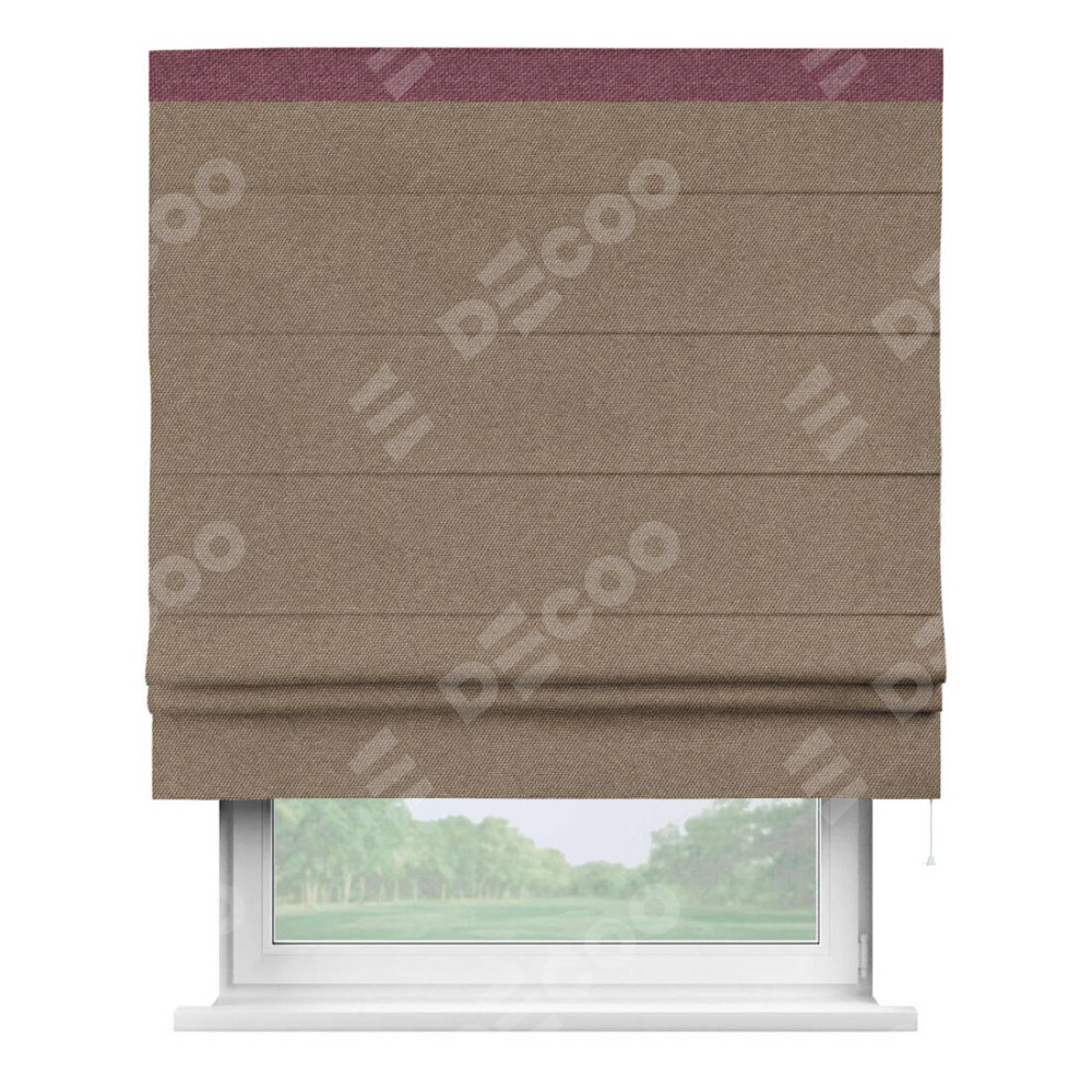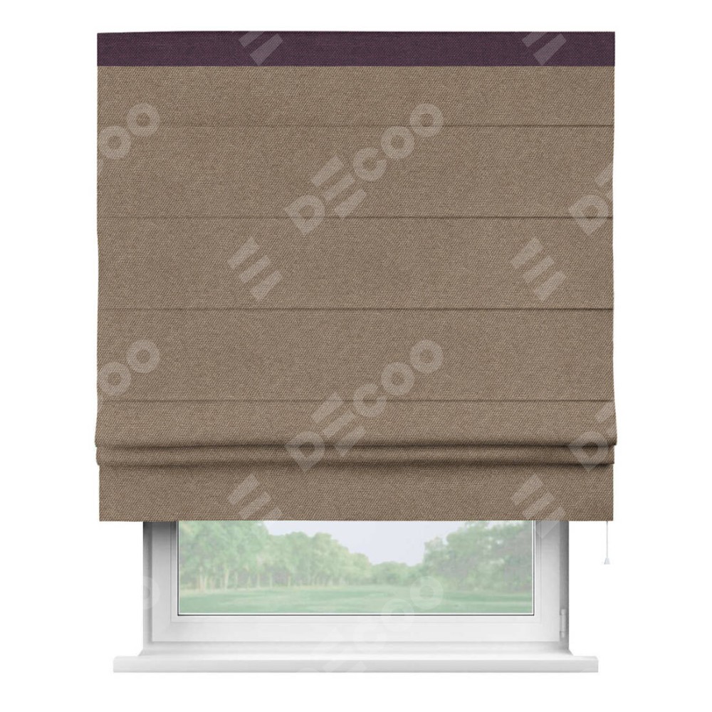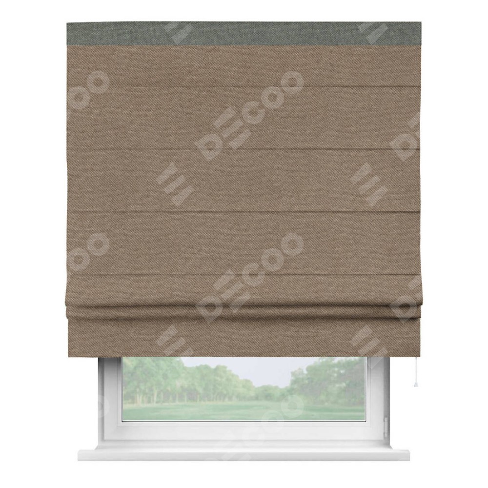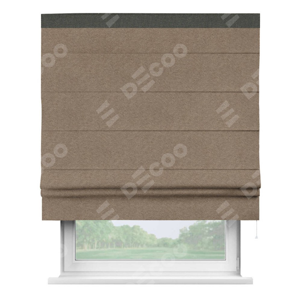 Римская штора «Кортин» для проема, лён димаут коричневый с кантом Кинг