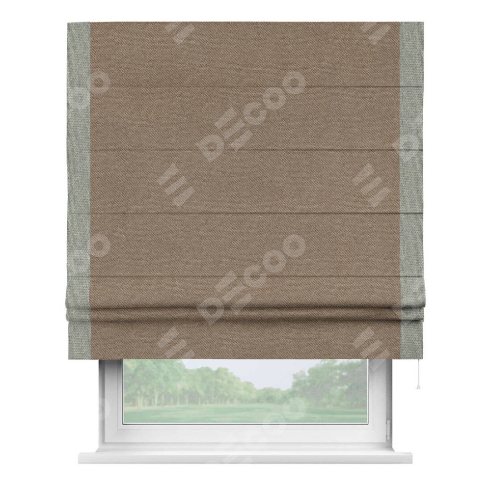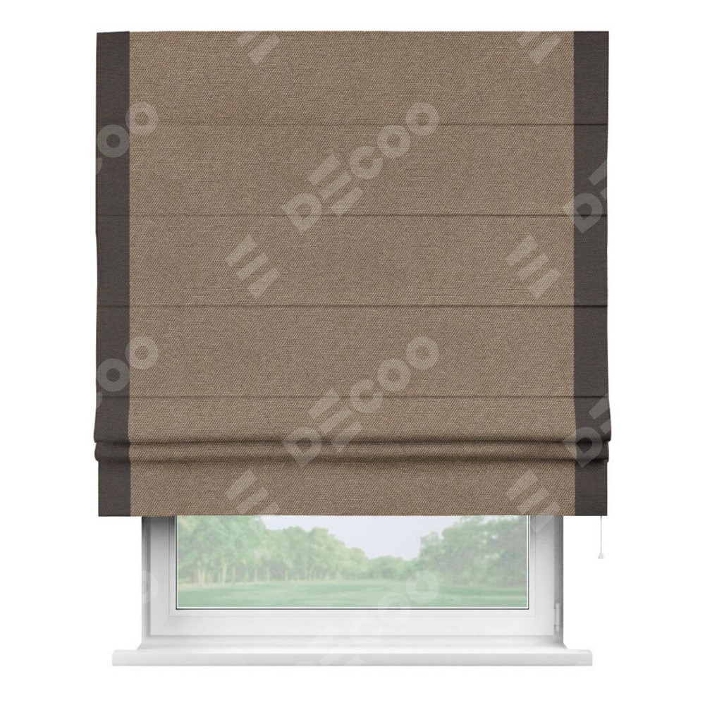 Римская штора «Кортин» для проема, лён димаут коричневый с кантом Стрим Дуо