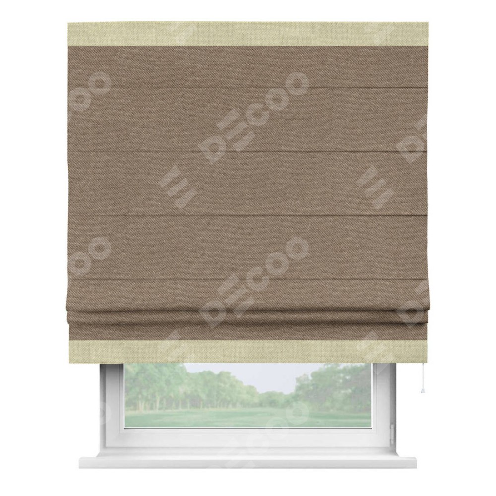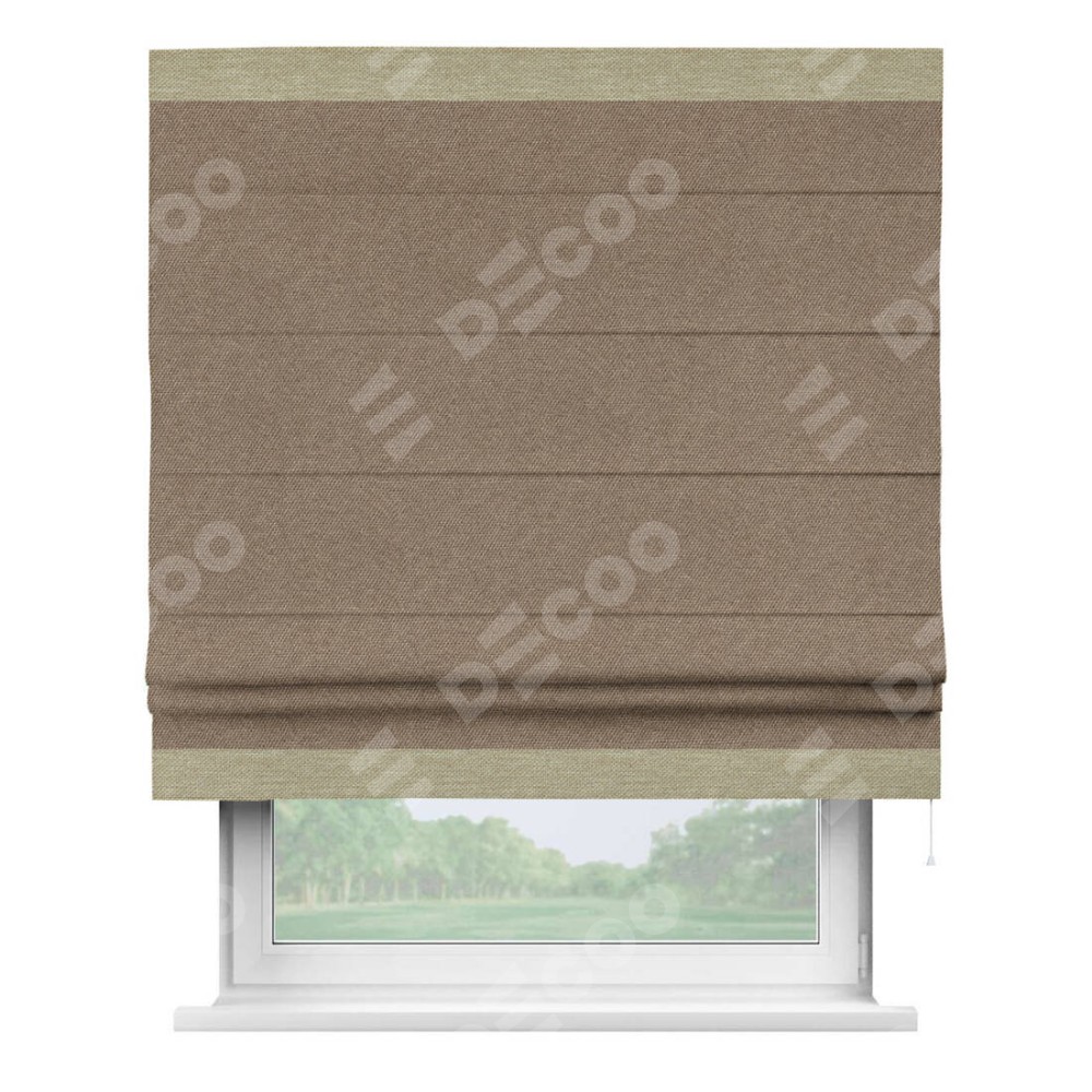 Римская штора «Кортин» для проема, лён димаут коричневый с кантом Горизонт