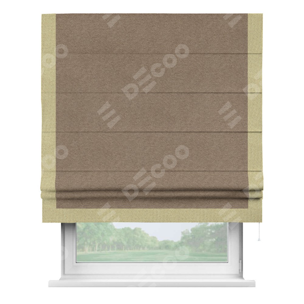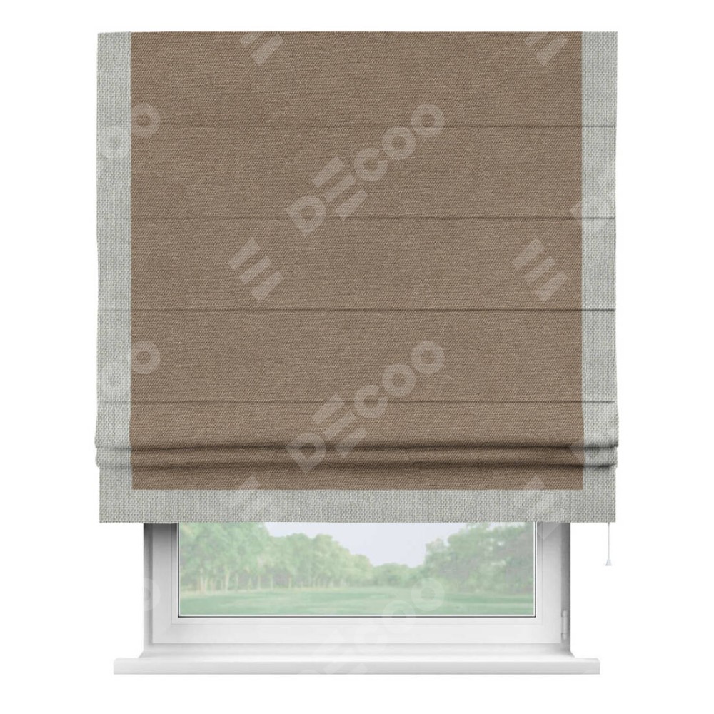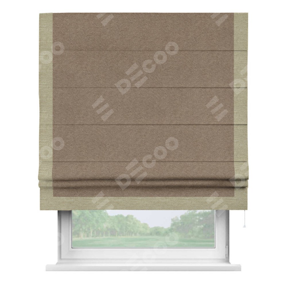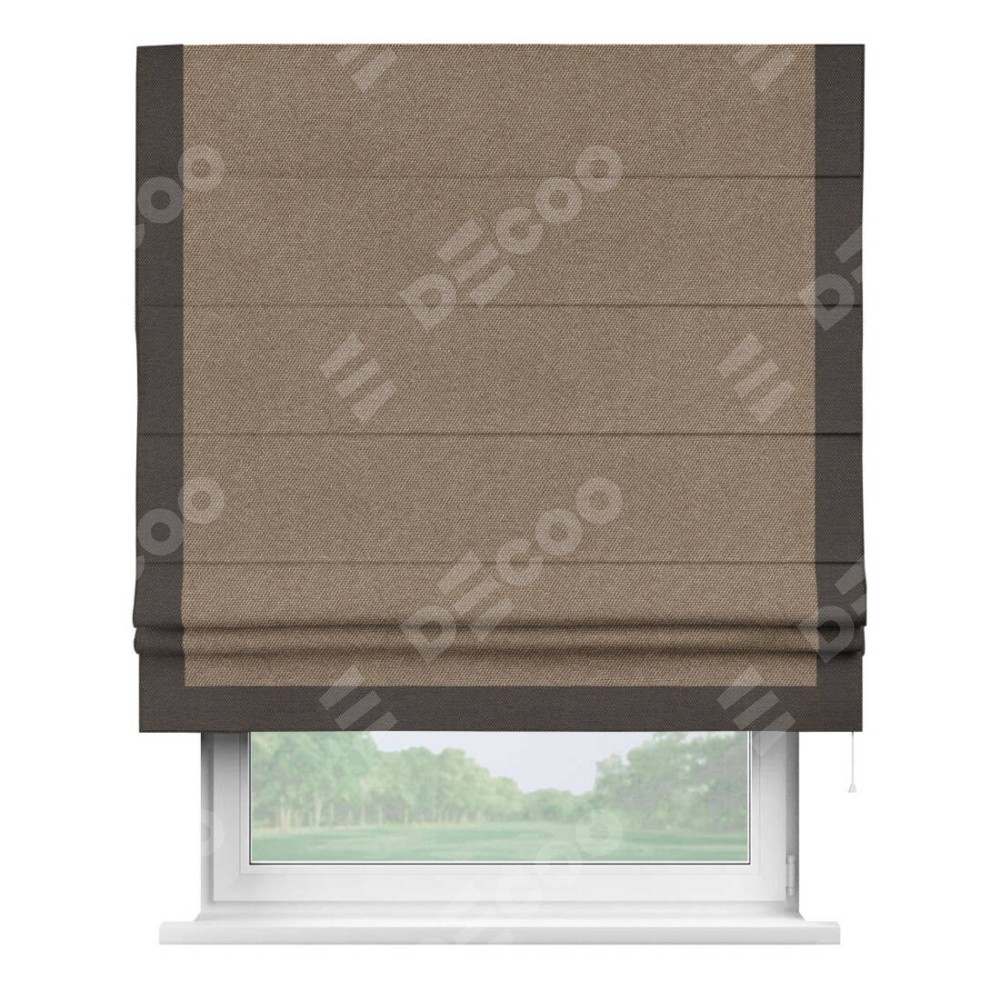 Римская штора «Кортин» для проема, лён димаут коричневый с кантом Виктория