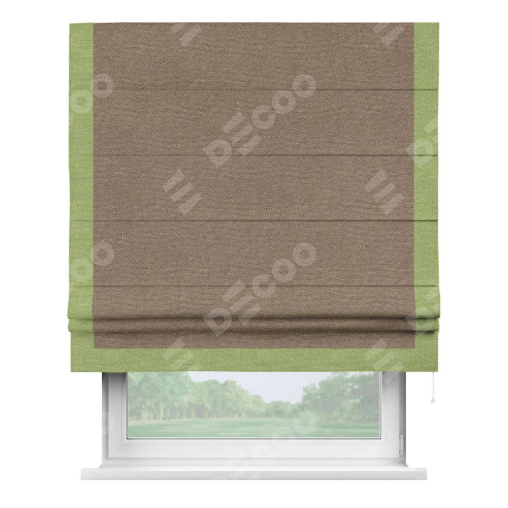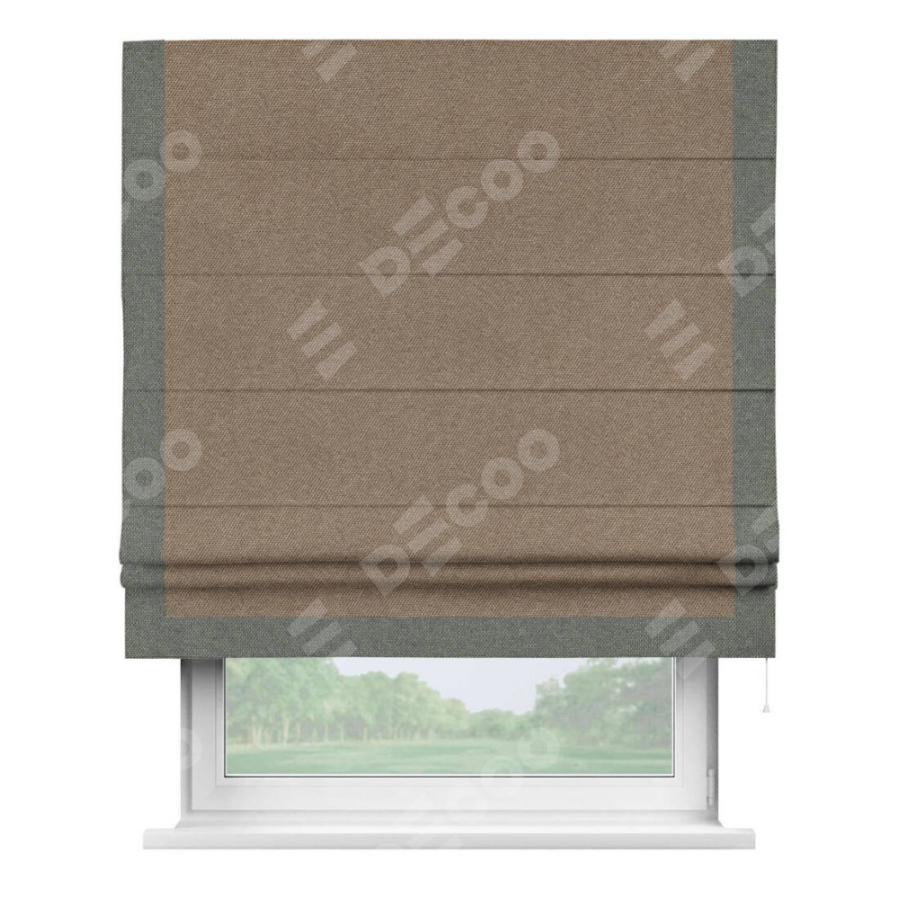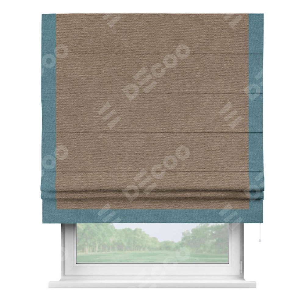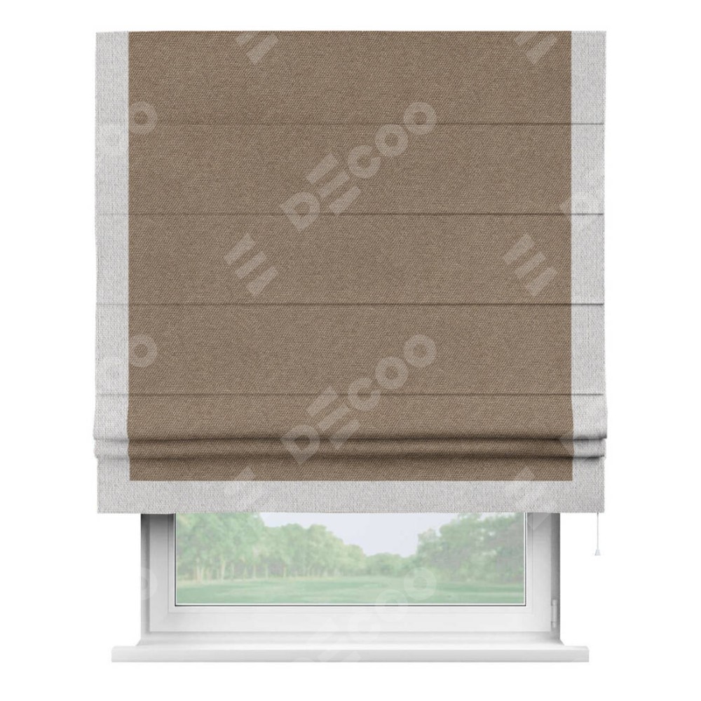 Римская штора «Кортин» для проема, лён димаут коричневый с кантом Виктория
