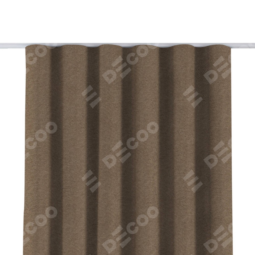 Комплект прямых штор, от производителя «Cortin», пошиты из ткани лён димаут коричневый, артикул ткани 90996. С изнаночной стороны в верхней части штор пристрачивается шторная лента с декоративными складками «Волна». Для создания элегантных складок прямые шторы шьются по стандарту с коэффициентом 1:2 (на 100 см. ширины проёма 200 см. ширины ткани).