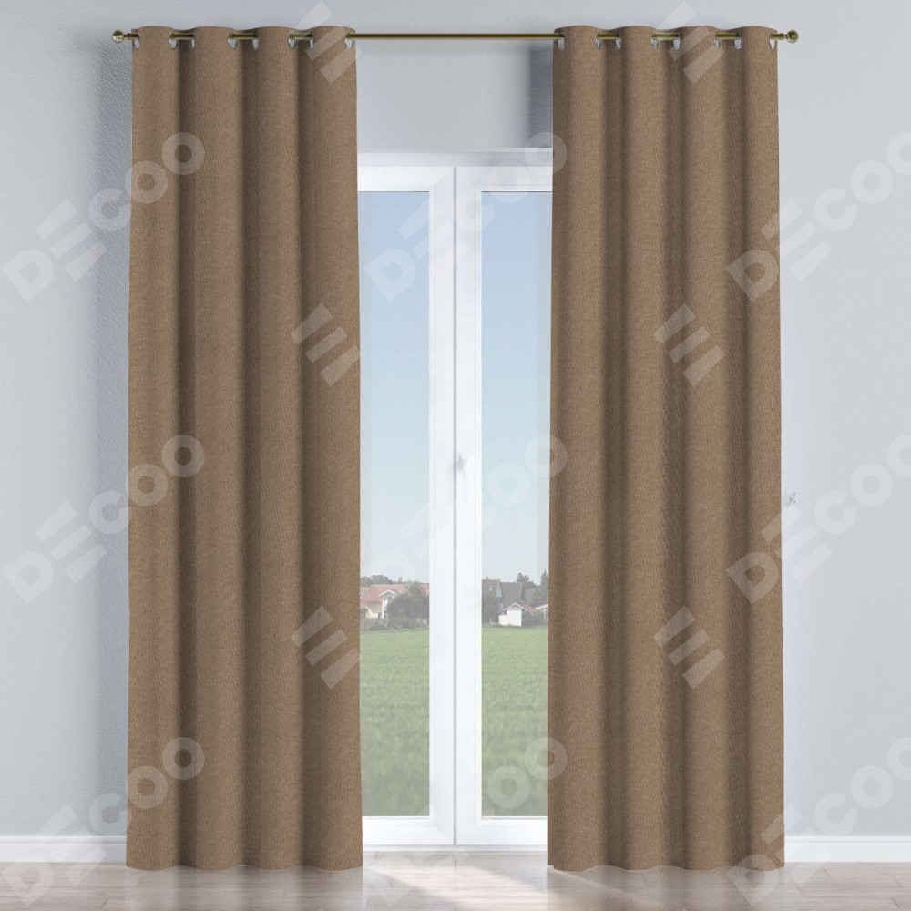 Комплект прямых штор, от производителя «Cortin», пошиты из ткани лён димаут коричневый, артикул ткани 90996. Данная модель пошита на люверсах, комплектуется на выбор круглым карнизом и подходит для монтажа на стену или потолок. Прямые шторы на люверсах шьются по стандарту с коэффициентом 1/2 (на 100 см. ширины проёма 200 см. ширины ткани), отличительным преимуществом данной модели является простой способ монтажа. Достаточно повесить ее на трубу и штора готова!