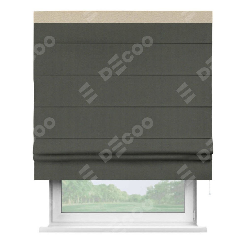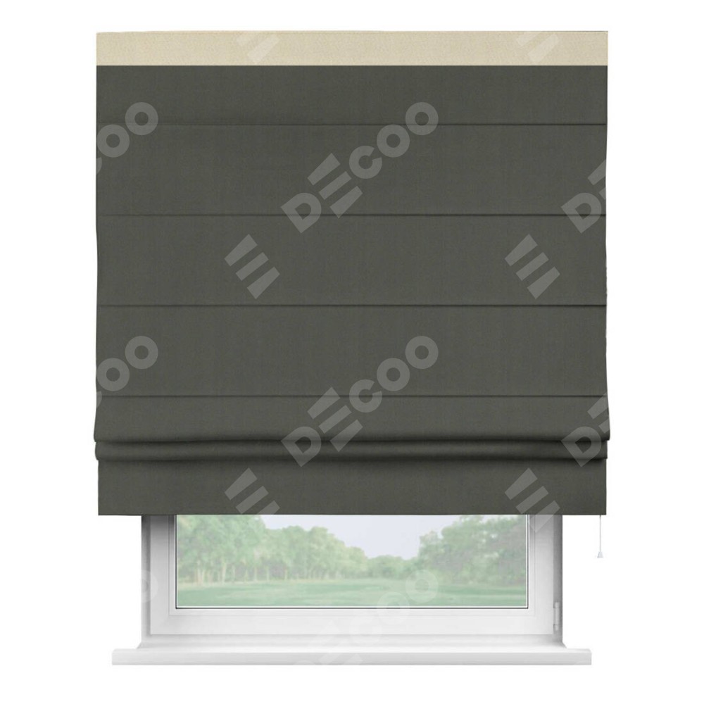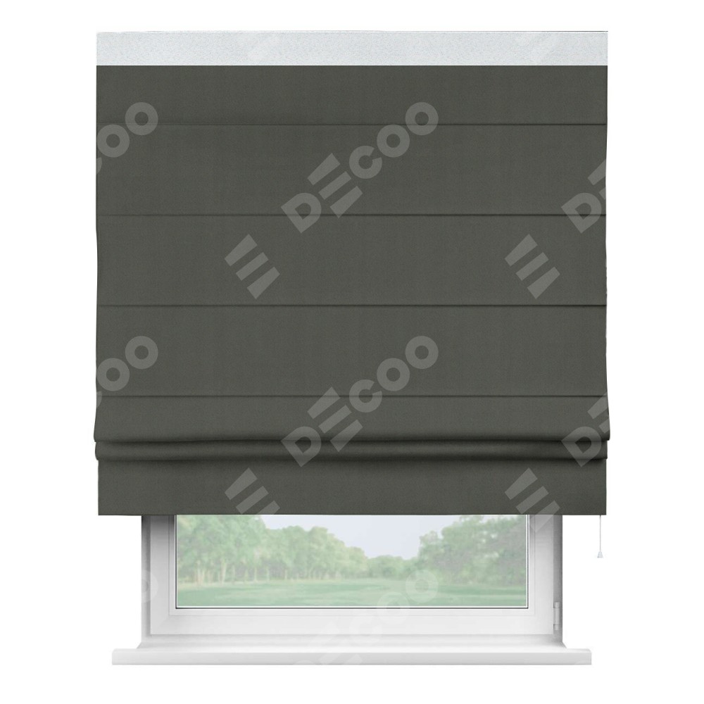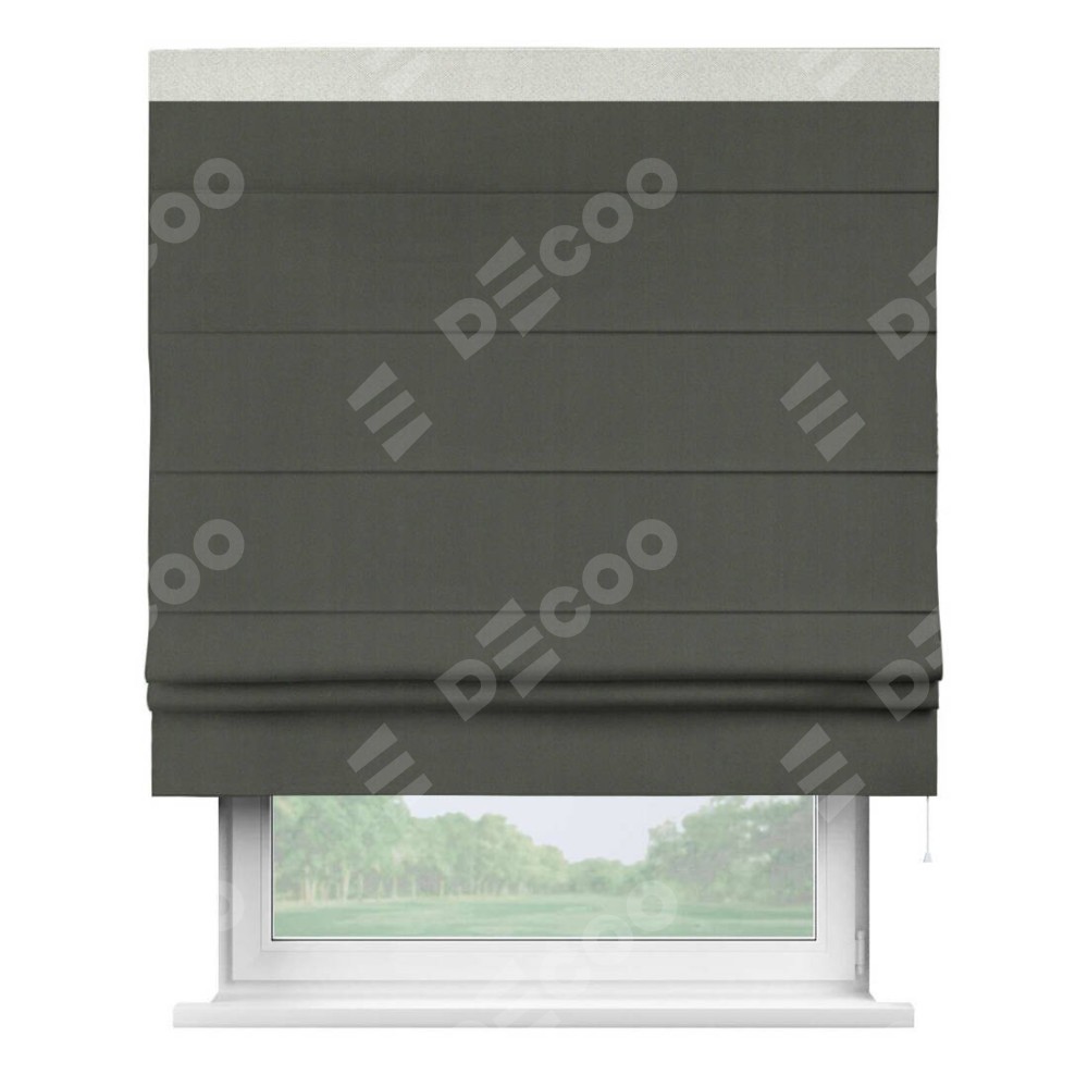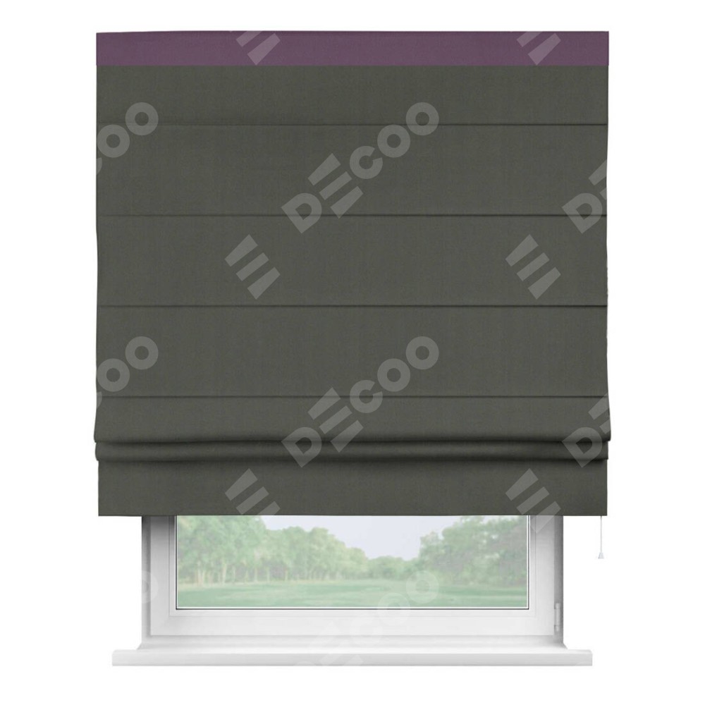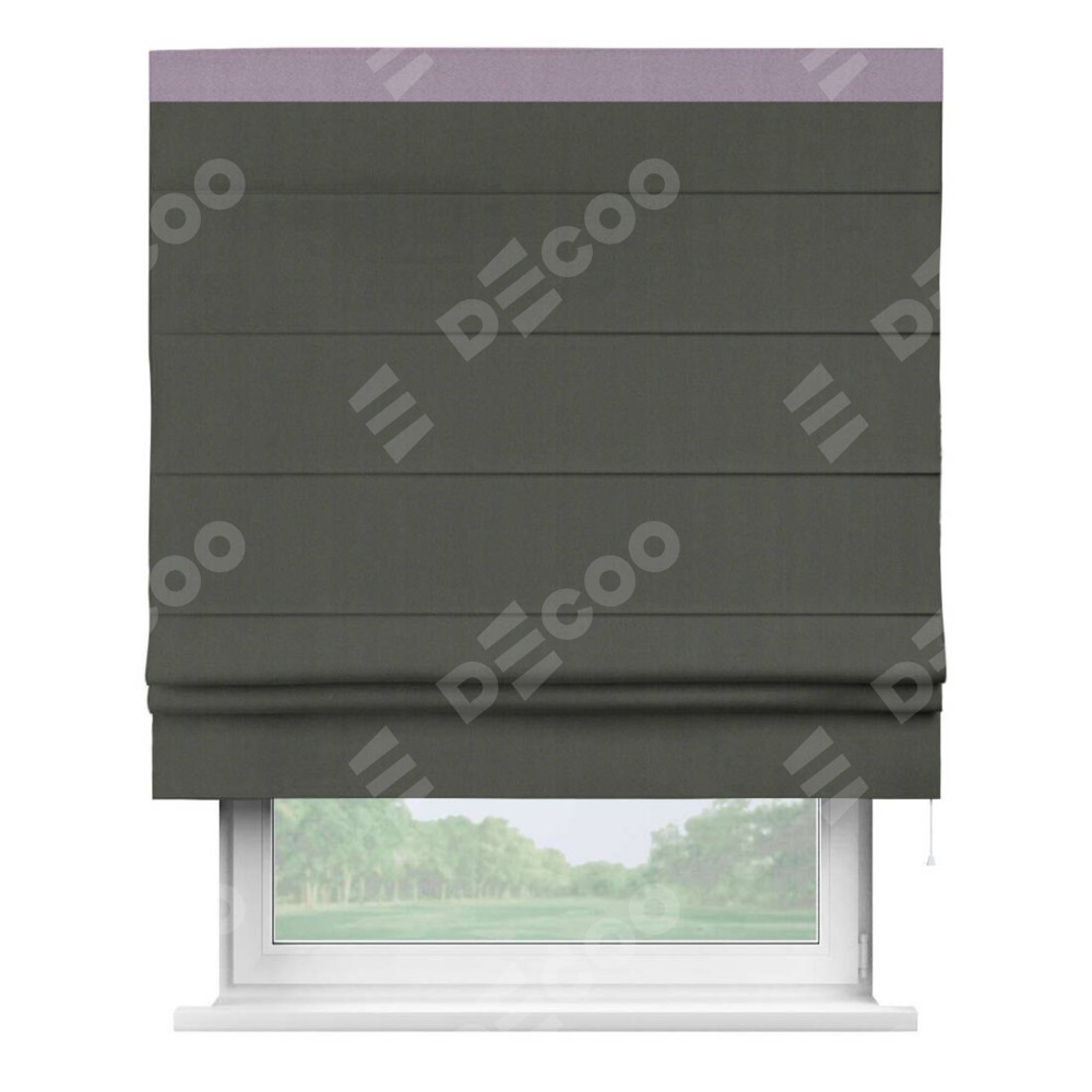 Римская штора «Кортин» для проема, блэкаут однотонный дымчато-серый с кантом Кинг