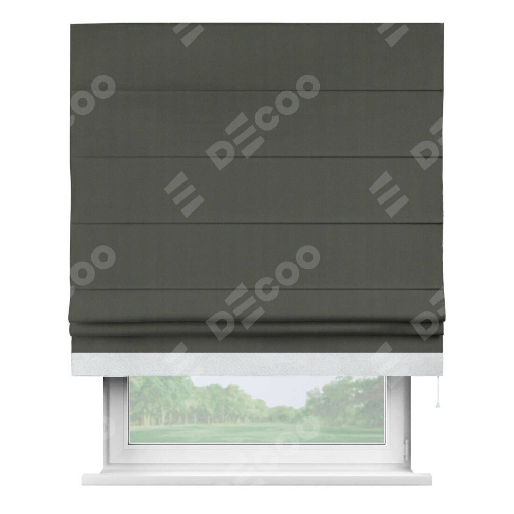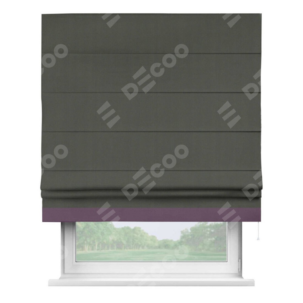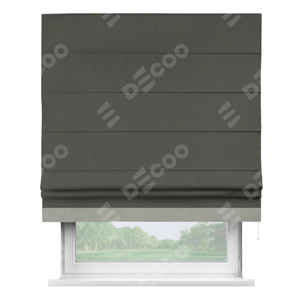 Римская штора «Кортин» для проема, блэкаут однотонный дымчато-серый с кантом Джестер