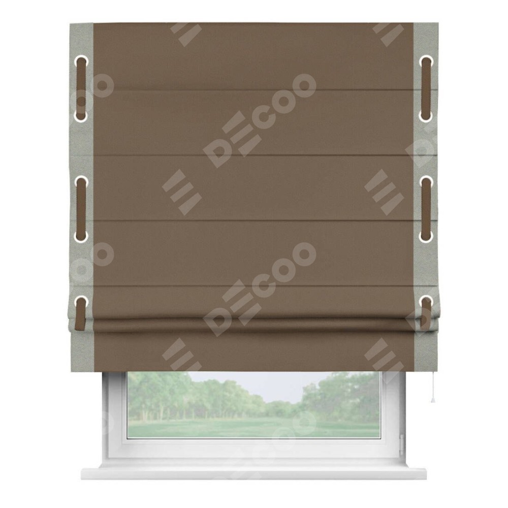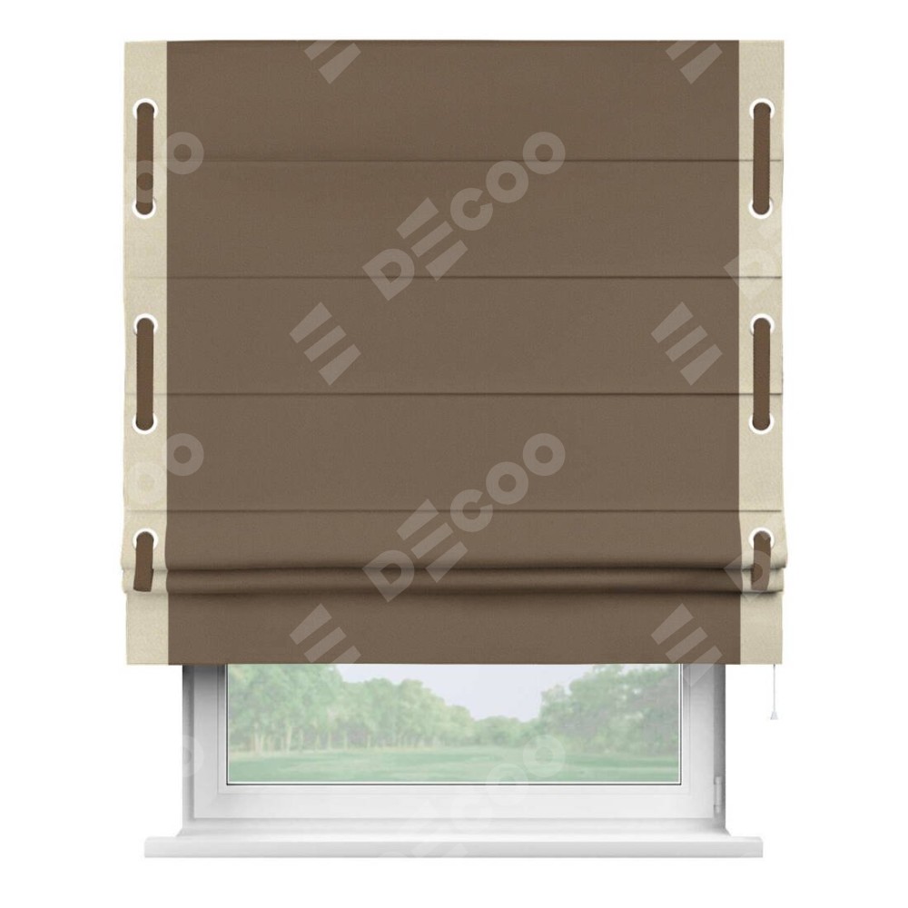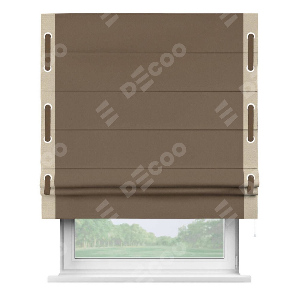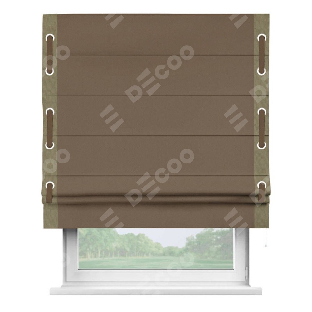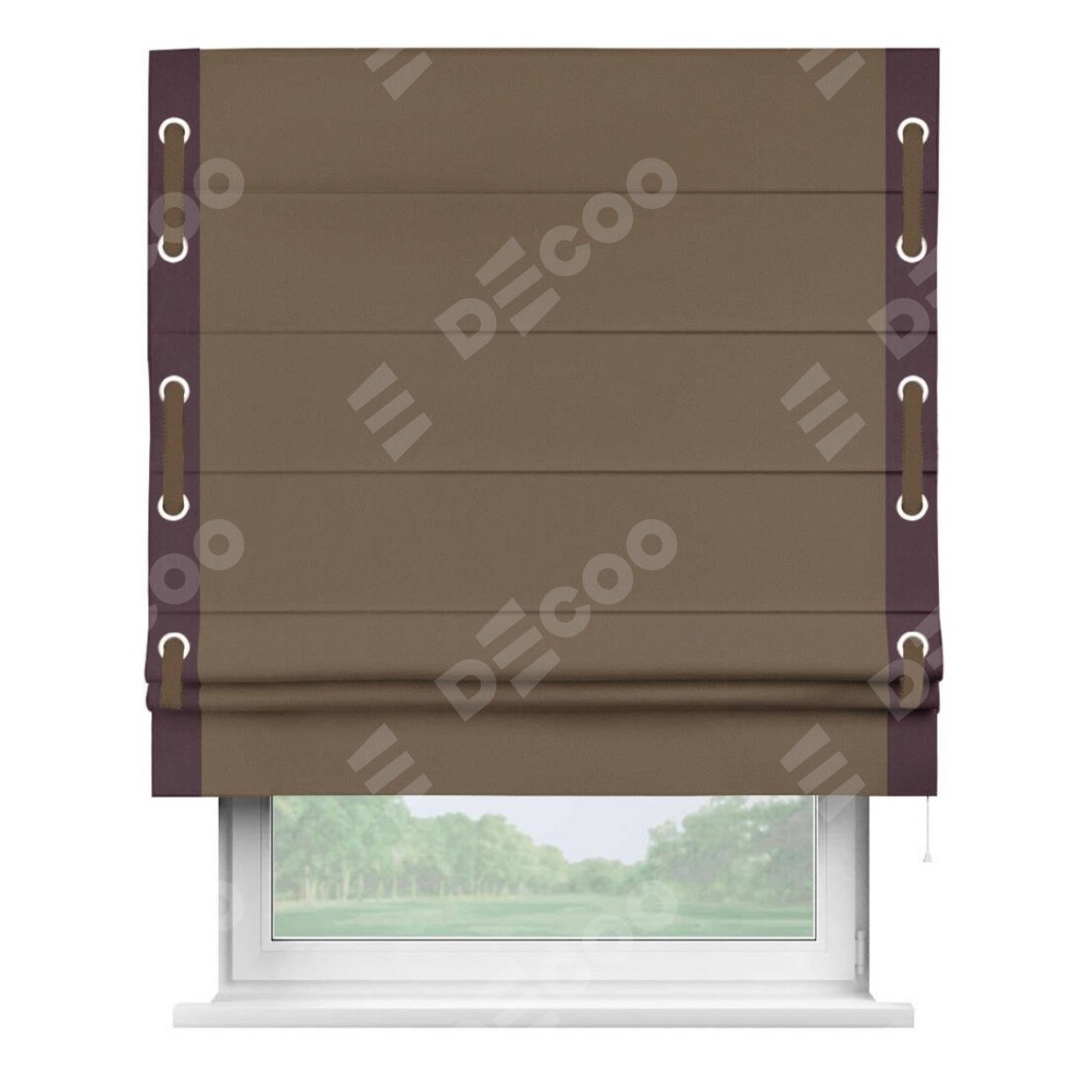 Римская штора «Кортин» для проема, блэкаут однотонный коричневый с кантом Стрим Дуо (люверсы с пояском)
