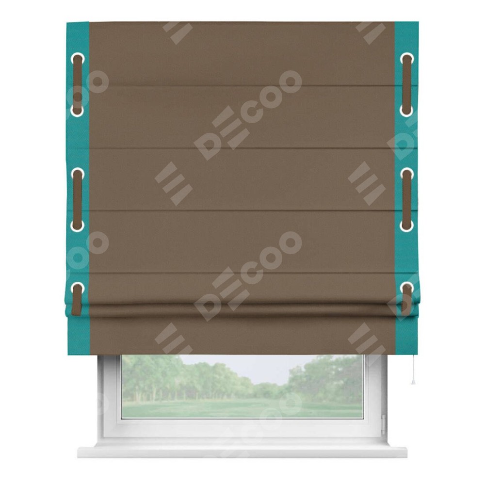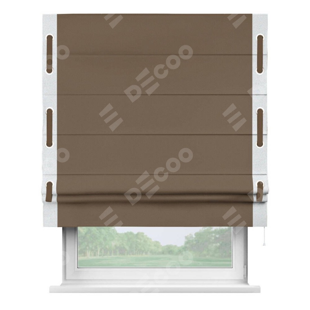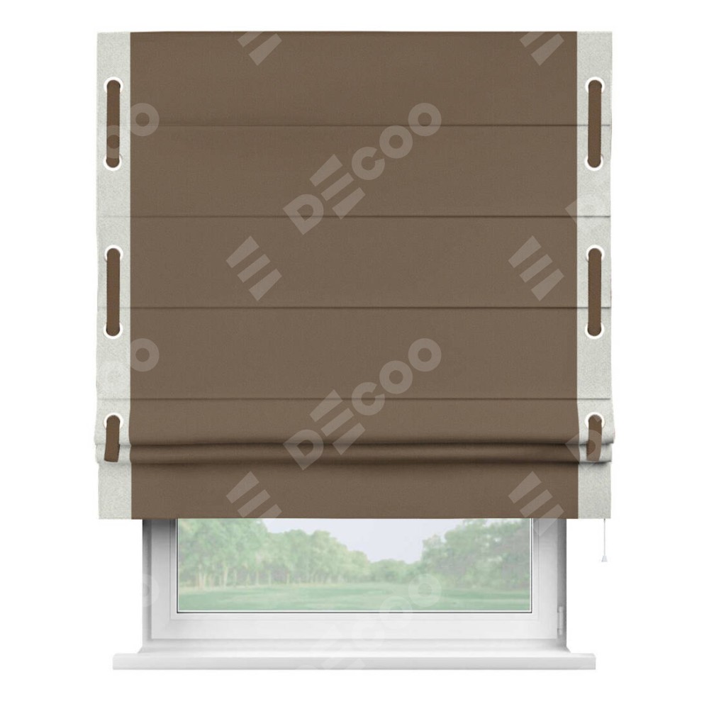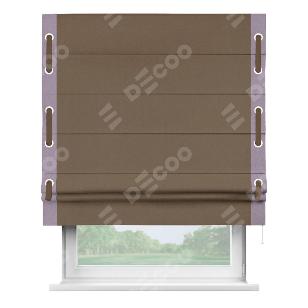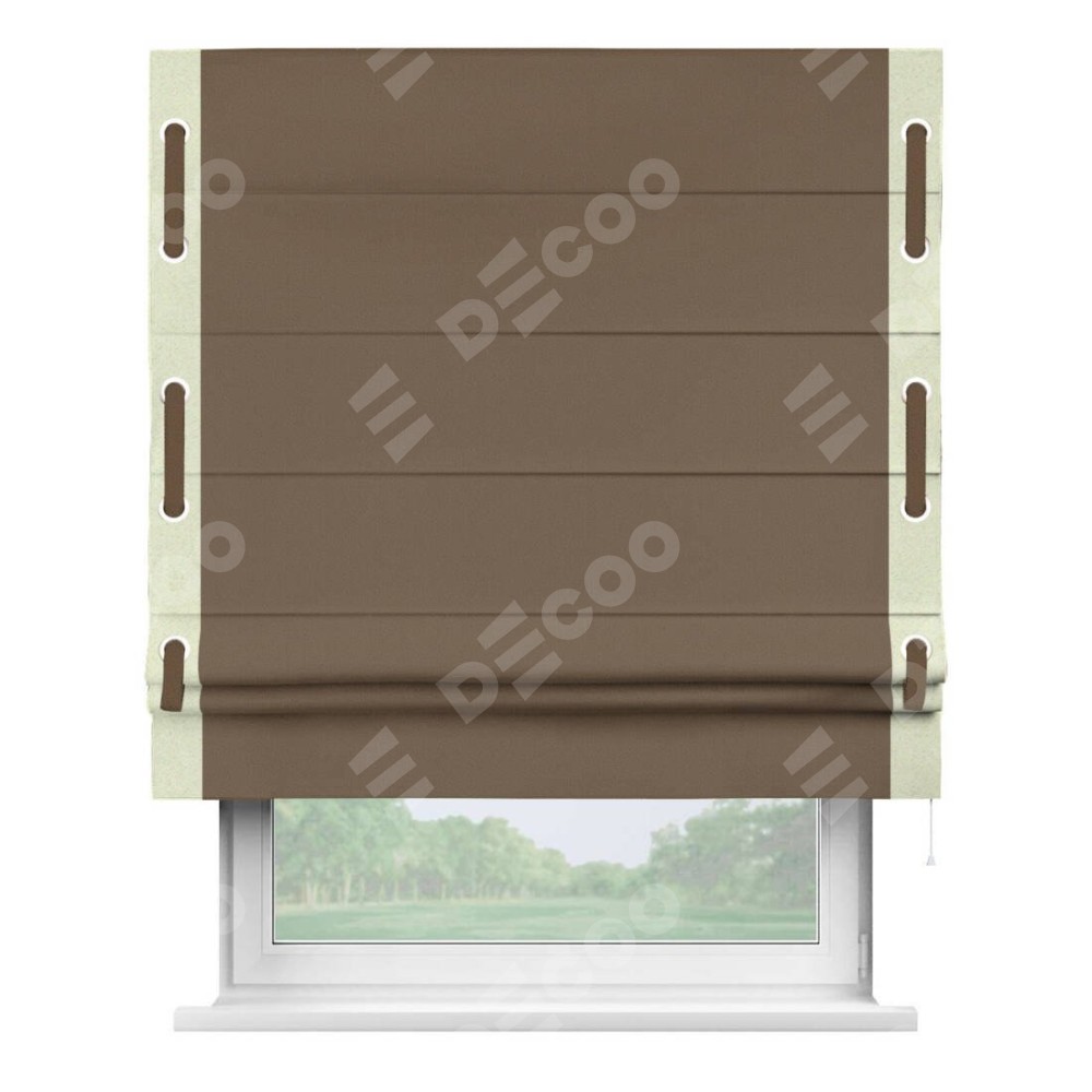 Римская штора «Кортин» для проема, блэкаут однотонный коричневый с кантом Стрим Дуо (люверсы с пояском)