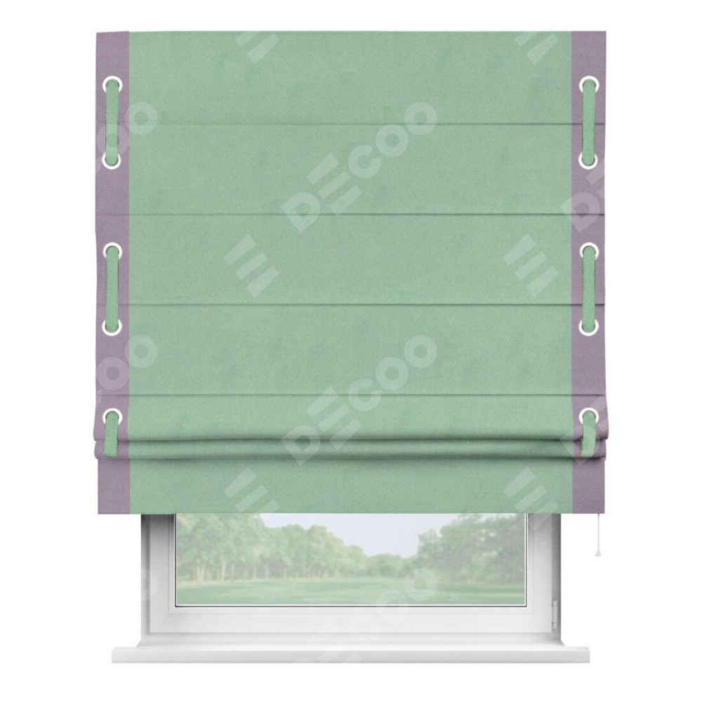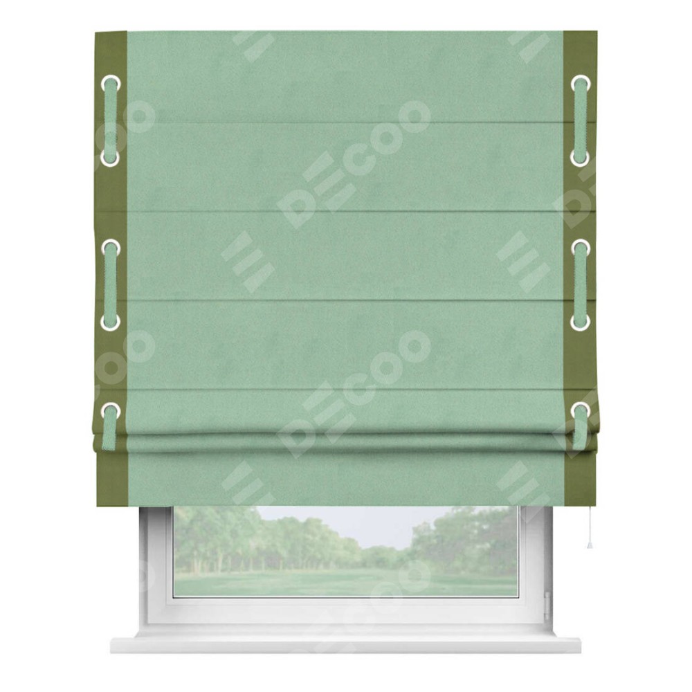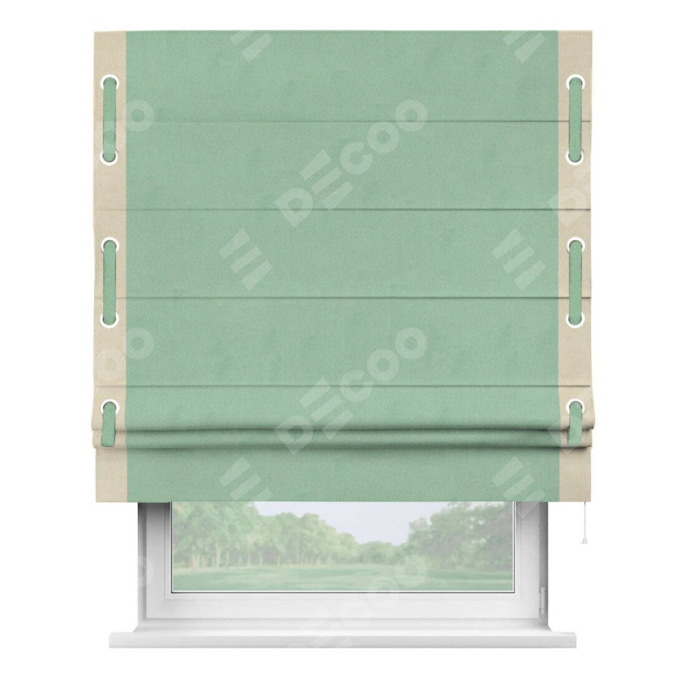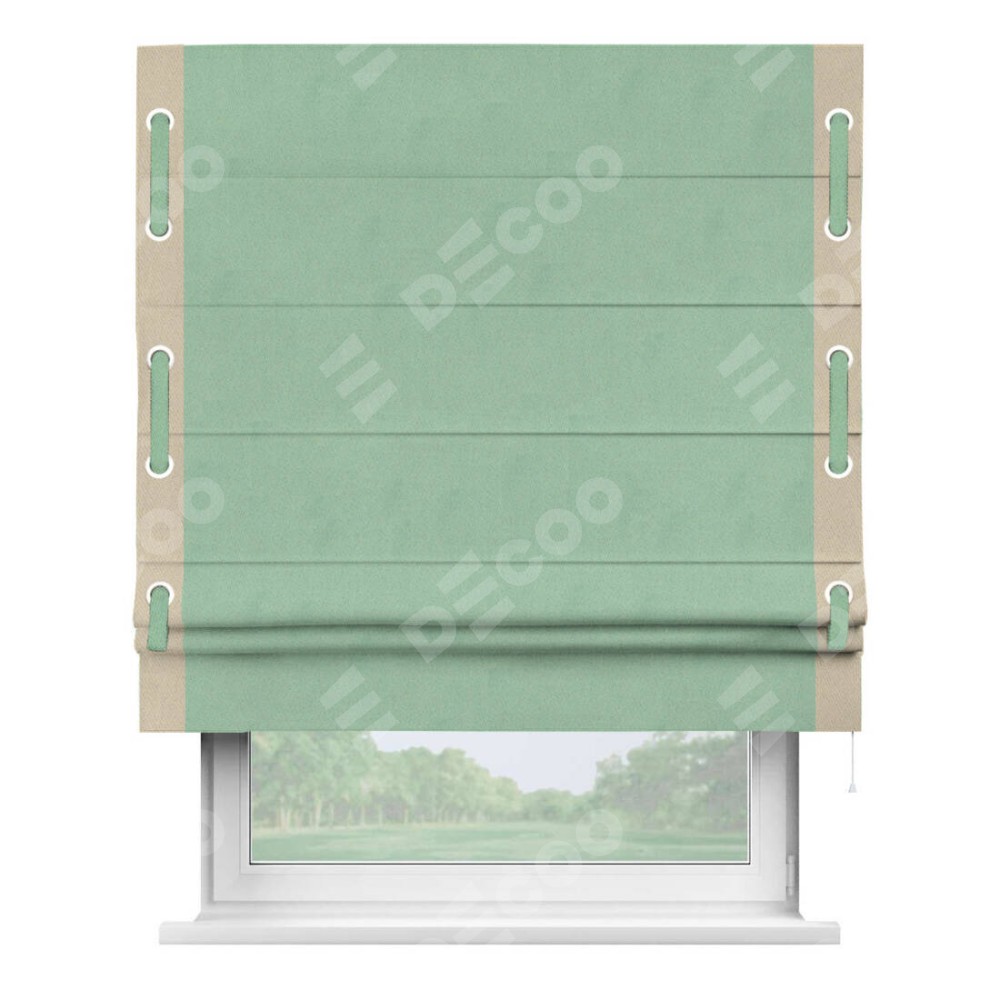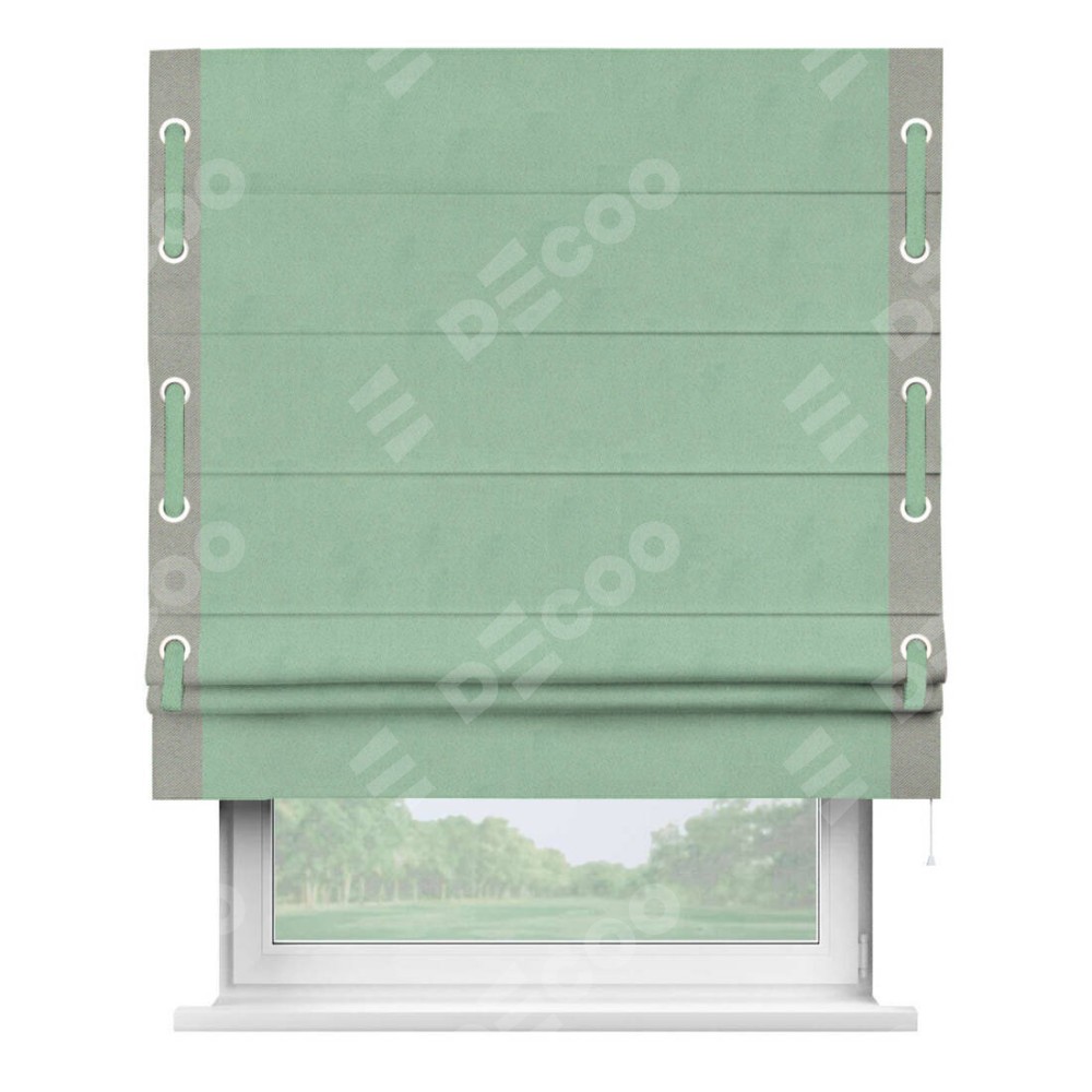 Римская штора «Кортин» для проема, блэкаут однотонный ментоловый с кантом Стрим Дуо (люверсы с пояском)