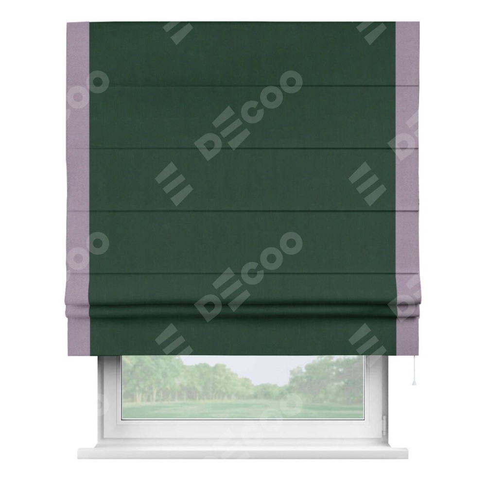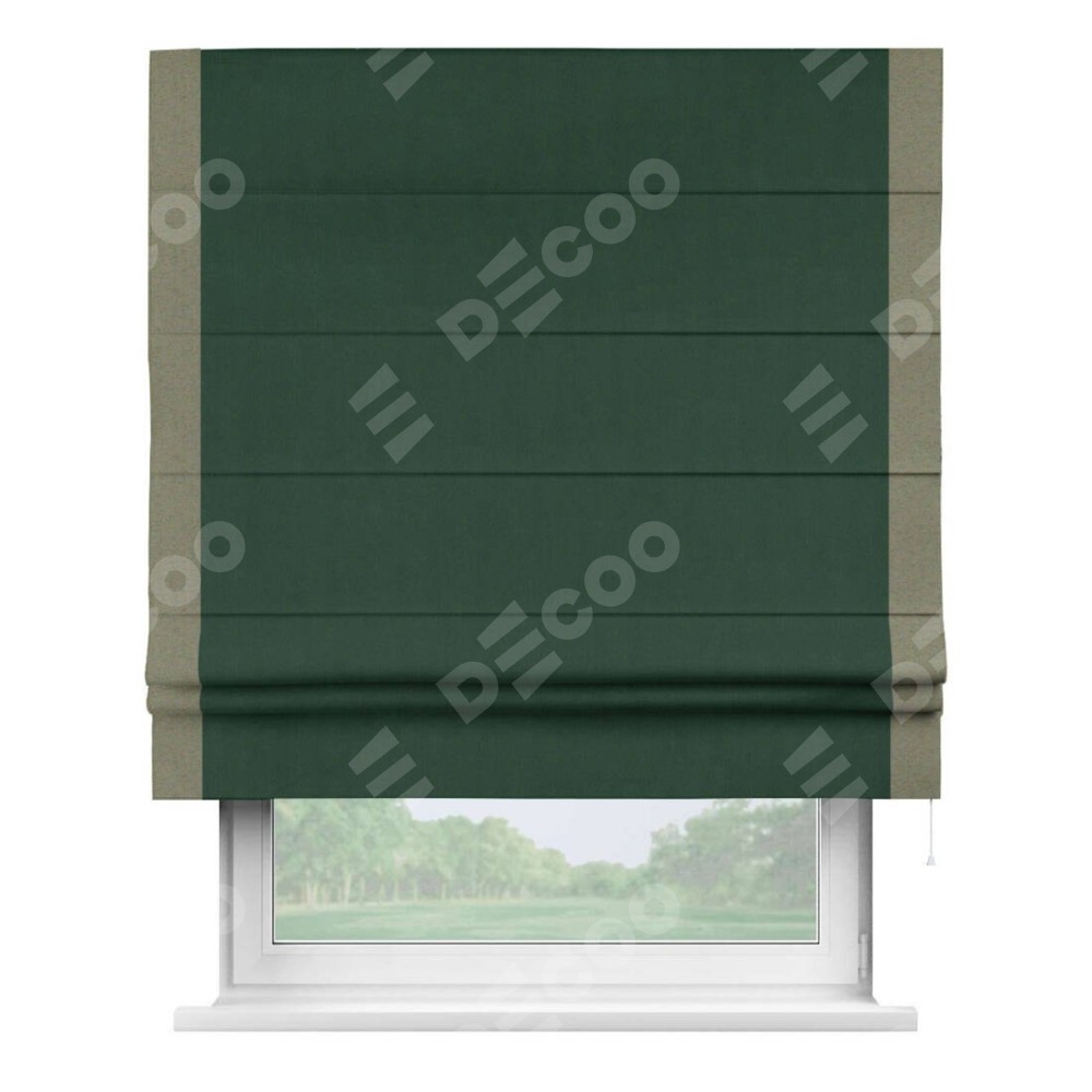 Римская штора «Кортин» для проема, блэкаут однотонный зелёный с кантом Стрим Дуо