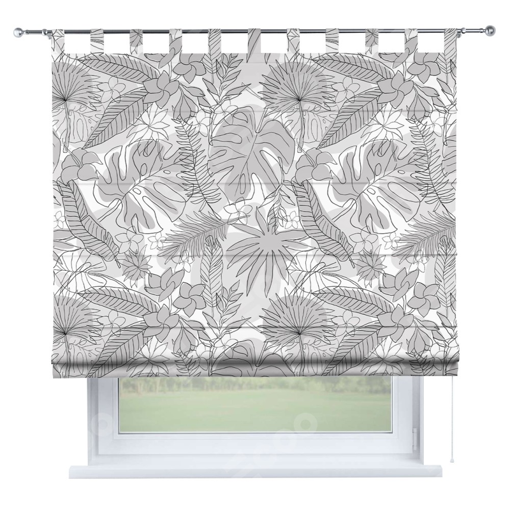 Римская штора производителя «Cortin», используется для проёма, пошита из ткани блэкаут с нанесением сублимационной печати «Тропический лес». Данная модель пошита на петлях, комплектуется на выбор круглым карнизом и подходит для монтажа на стену. Римская штора на петлях имеет простую систему регулировки высоты, отличительным преимуществом данной модели является простой способ монтажа. Достаточно повесить ее на трубу и штора готова!