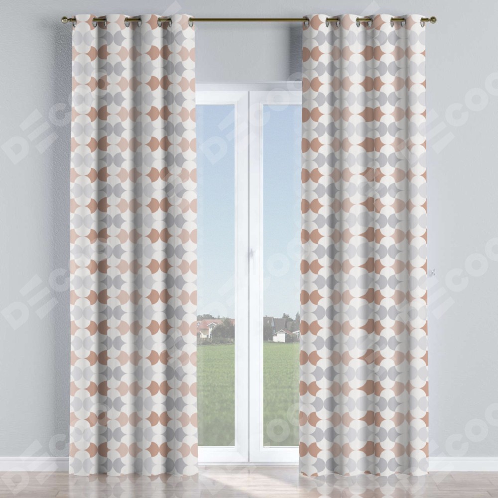 Комплект прямых штор, от производителя «Cortin», пошиты из ткани блэкаут с нанесением сублимационной печати «Модерн светлый». Данная модель пошита на люверсах, комплектуется на выбор круглым карнизом и подходит для монтажа на стену или потолок. Прямые шторы на люверсах шьются по стандарту с коэффициентом 1/2 (на 100 см. ширины проёма 200 см. ширины ткани), отличительным преимуществом данной модели является простой способ монтажа. Достаточно повесить ее на трубу и штора готова!